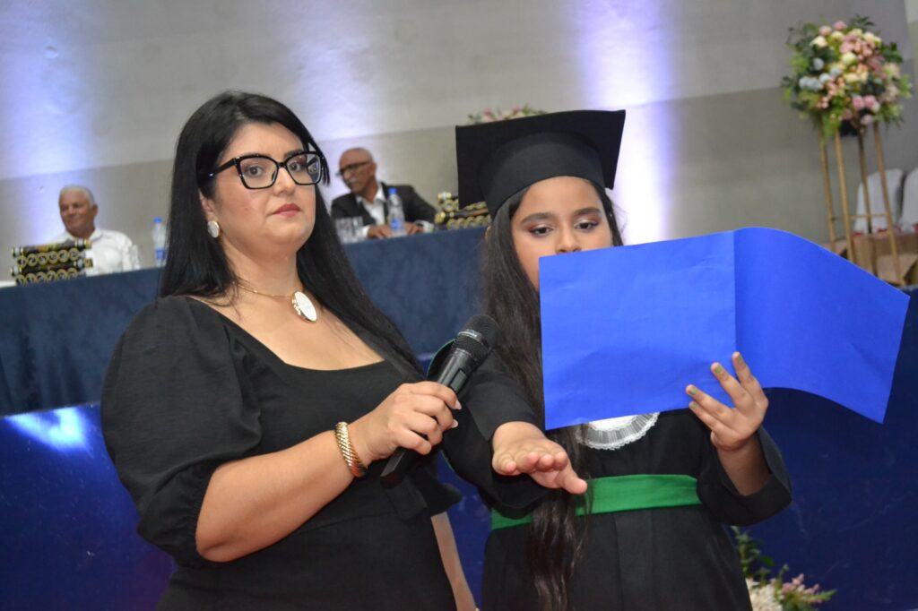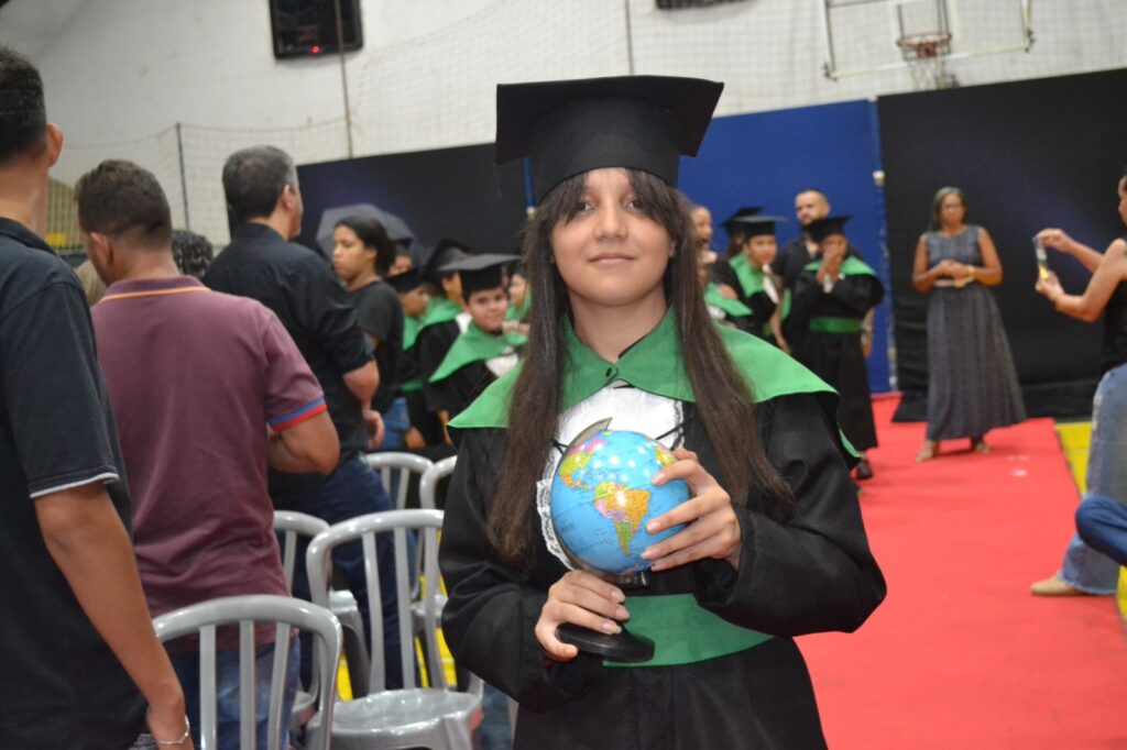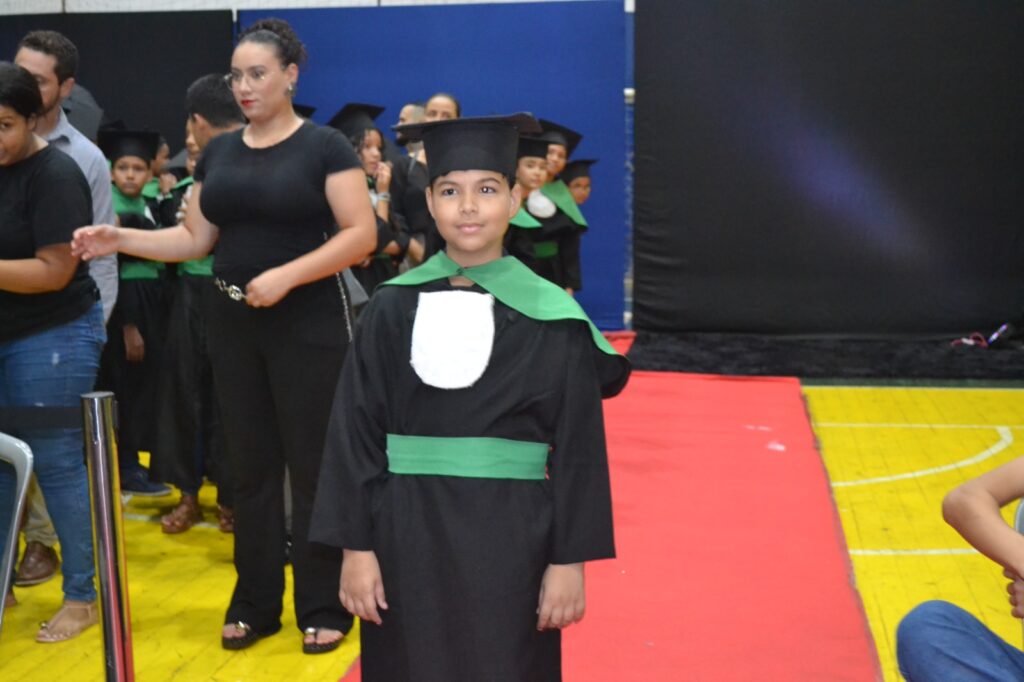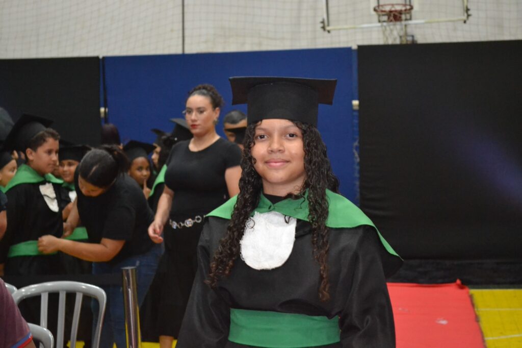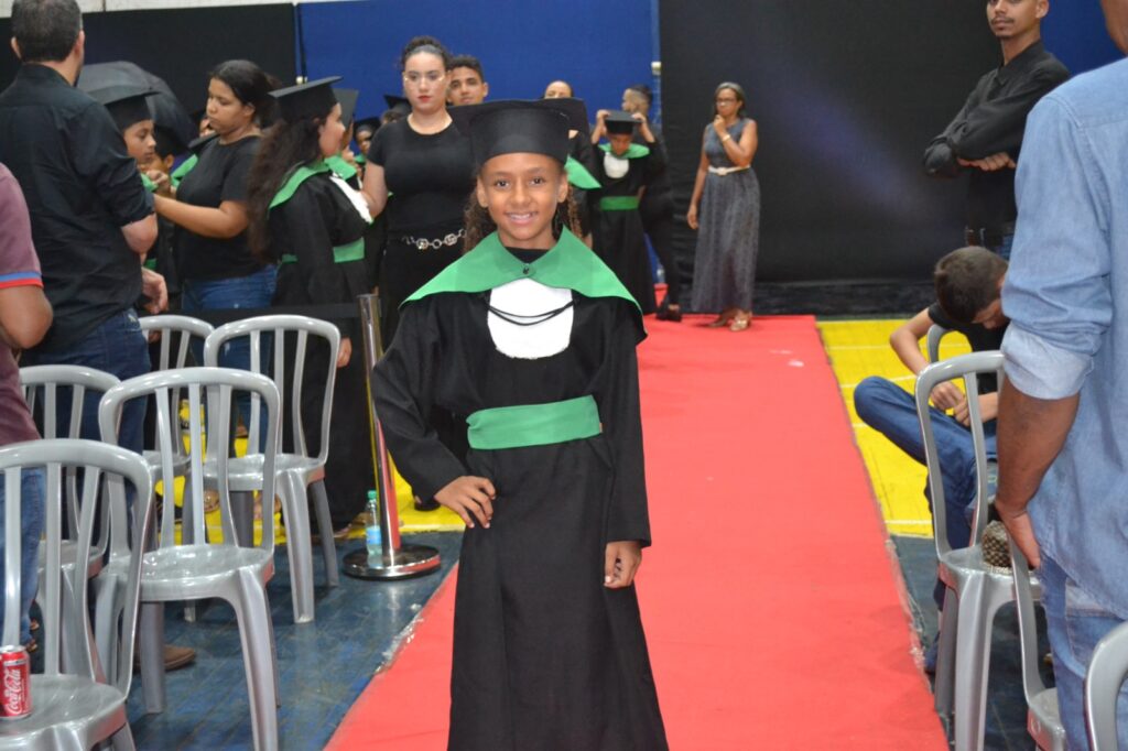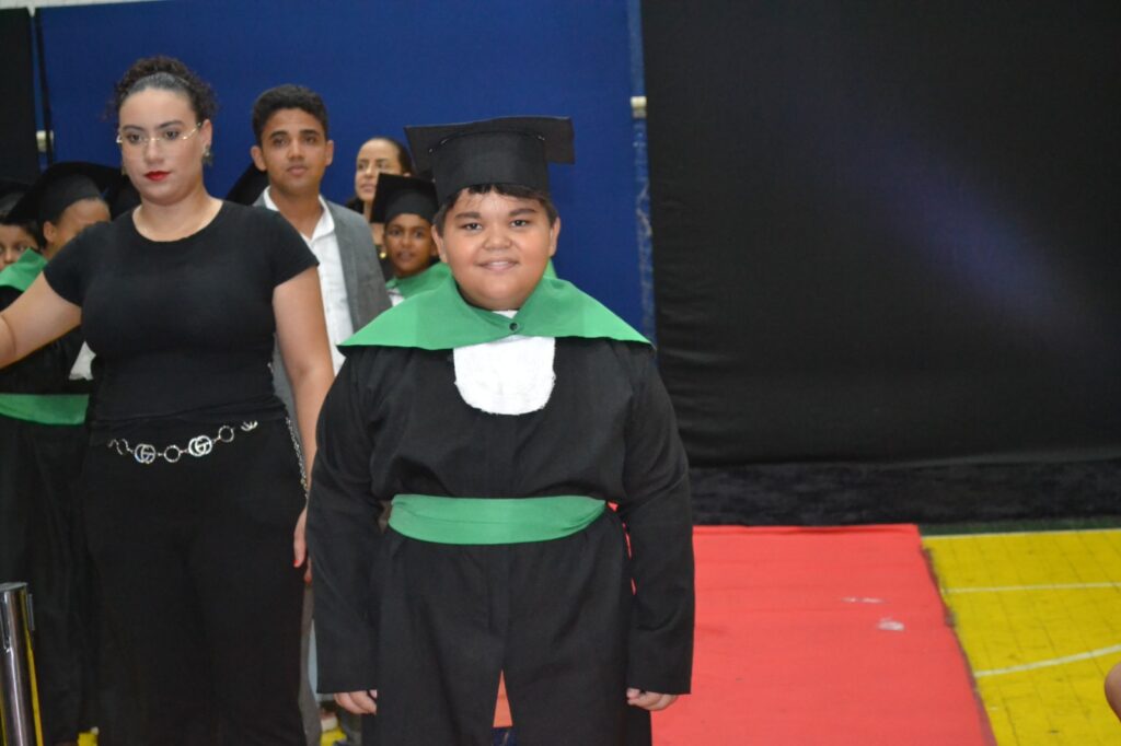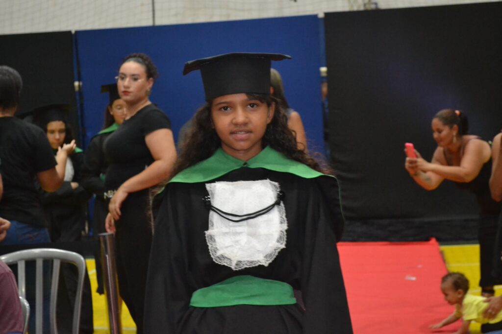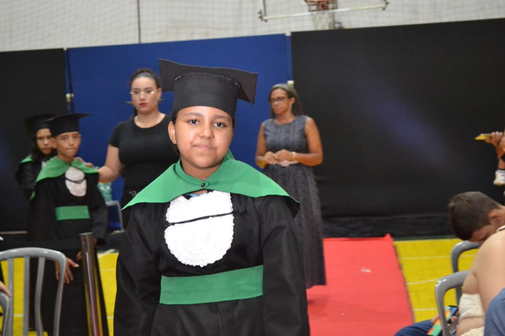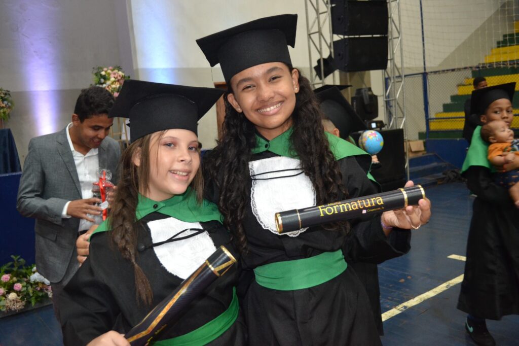 Realizada no Ginásio de Esportes Sinhô Parreira, a cerimônia reuniu estudantes, famílias, professores e toda a comunidade escolar em um momento de grande emoção e celebração. As crianças receberam seus certificados em meio a homenagens e reconhecimento pelo esforço e dedicação demonstrados ao longo do ano letivo.
