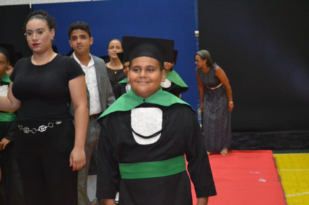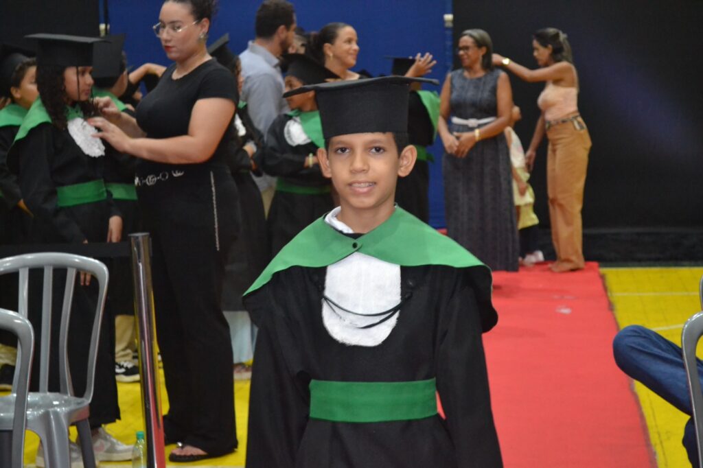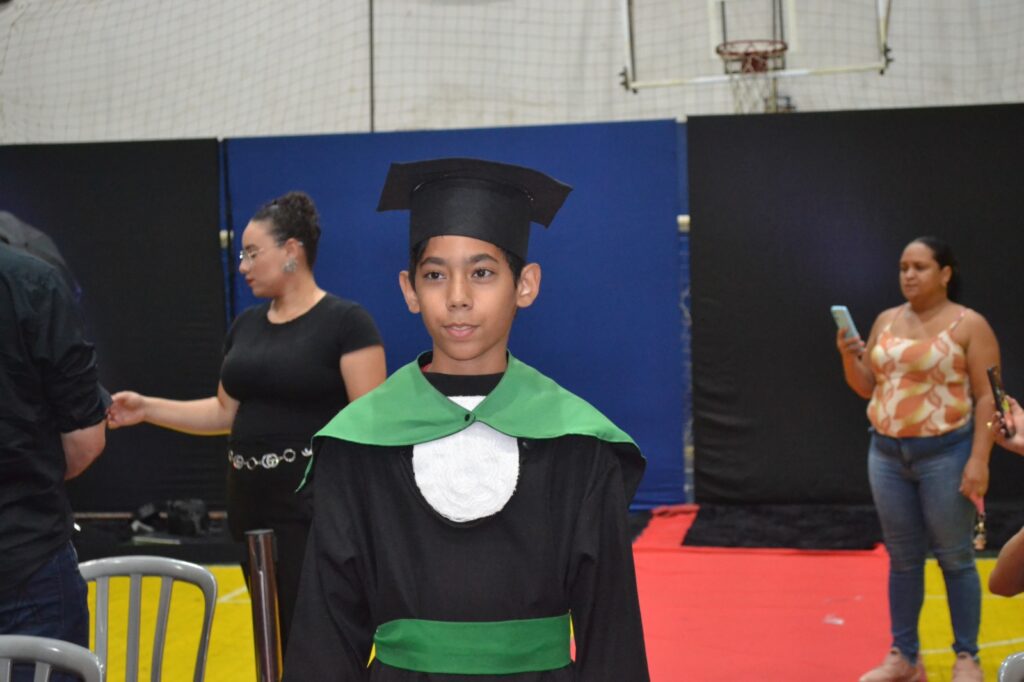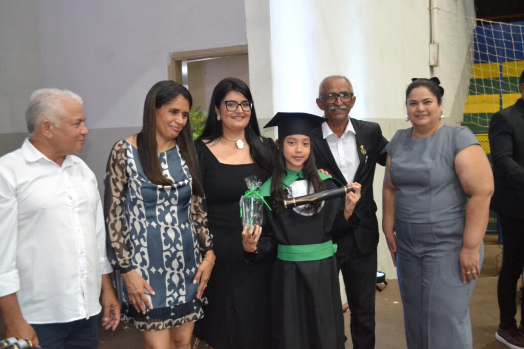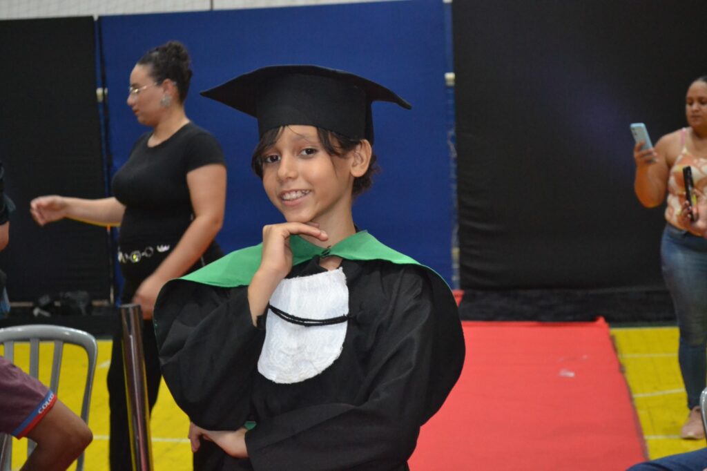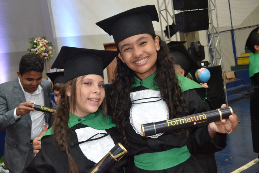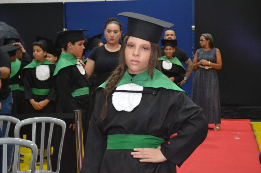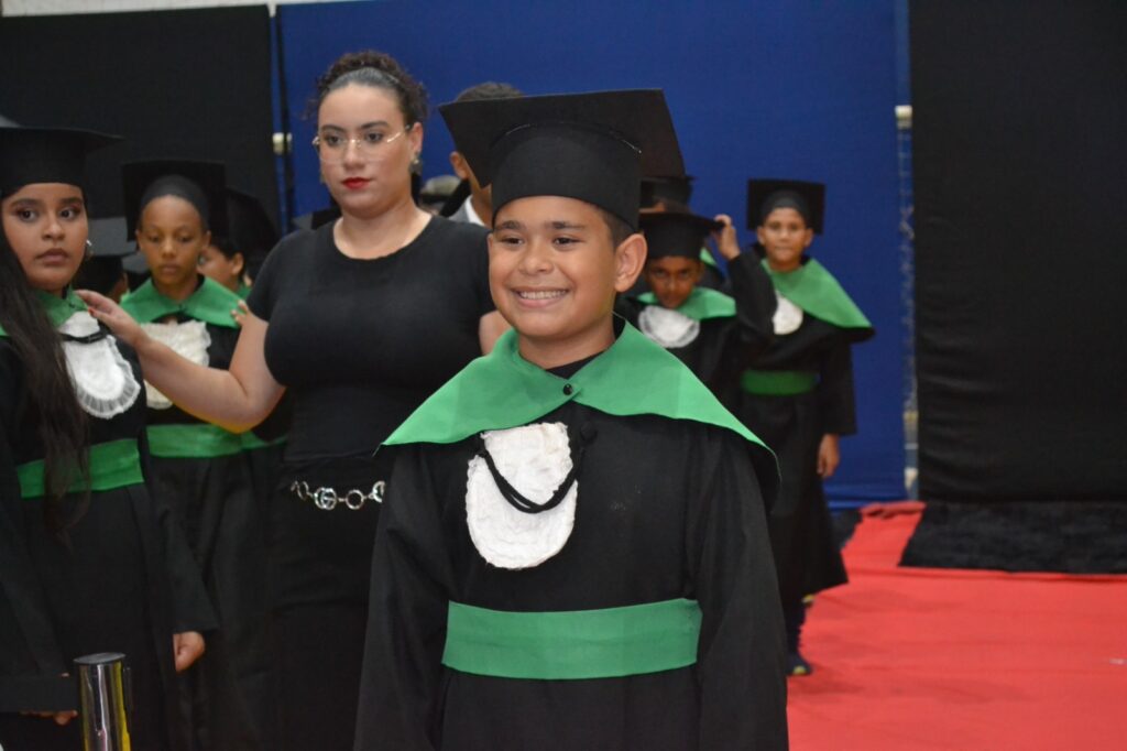 Realizada no Ginásio de Esportes Sinhô Parreira, a cerimônia reuniu estudantes, famílias, professores e toda a comunidade escolar em um momento de grande emoção e celebração. As crianças receberam seus certificados em meio a homenagens e reconhecimento pelo esforço e dedicação demonstrados ao longo do ano letivo.