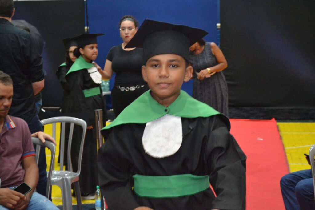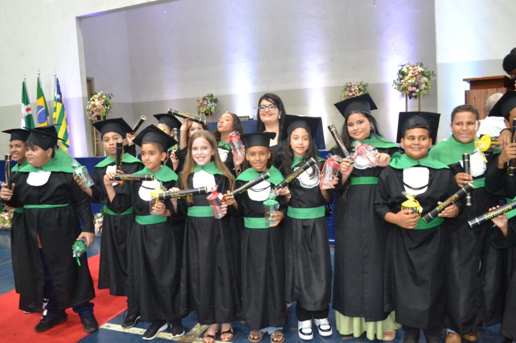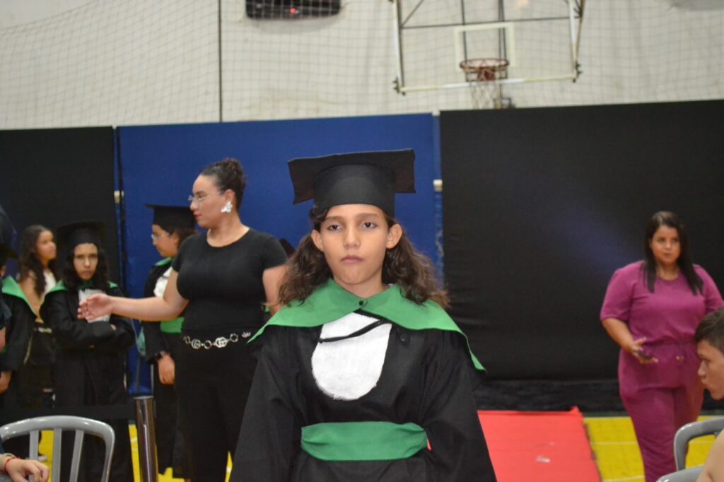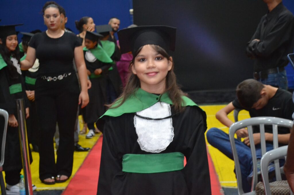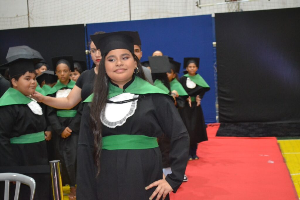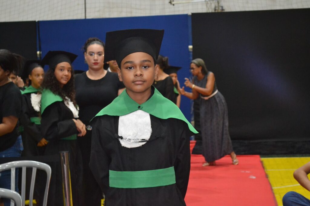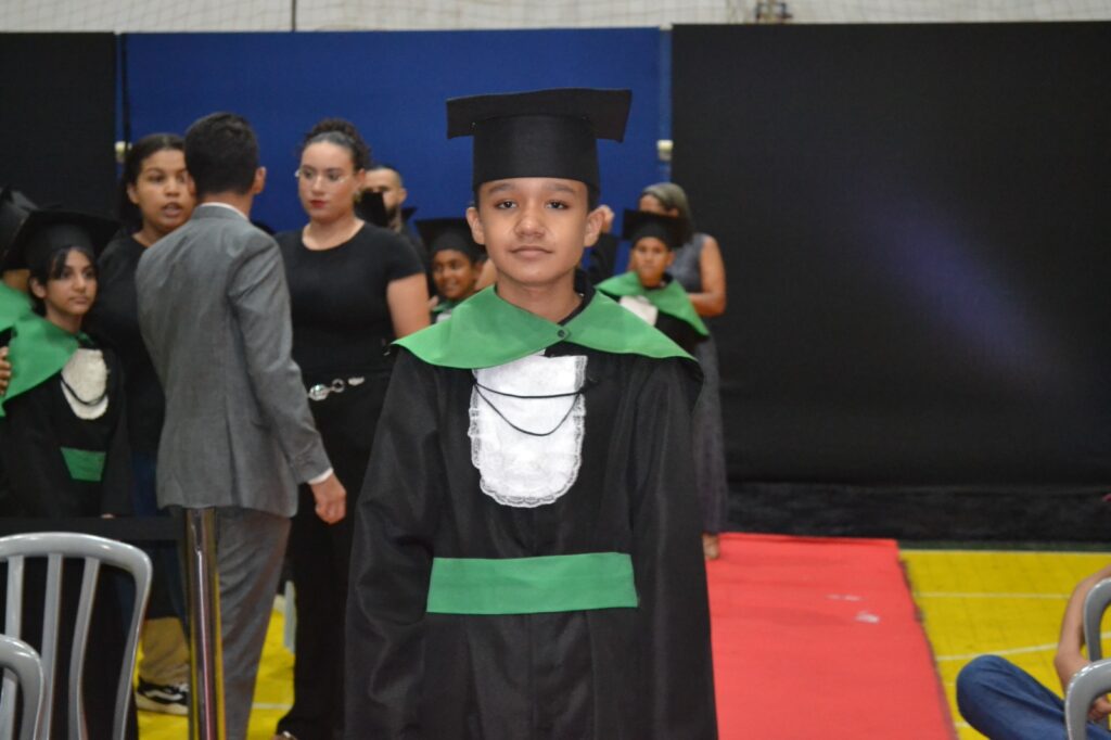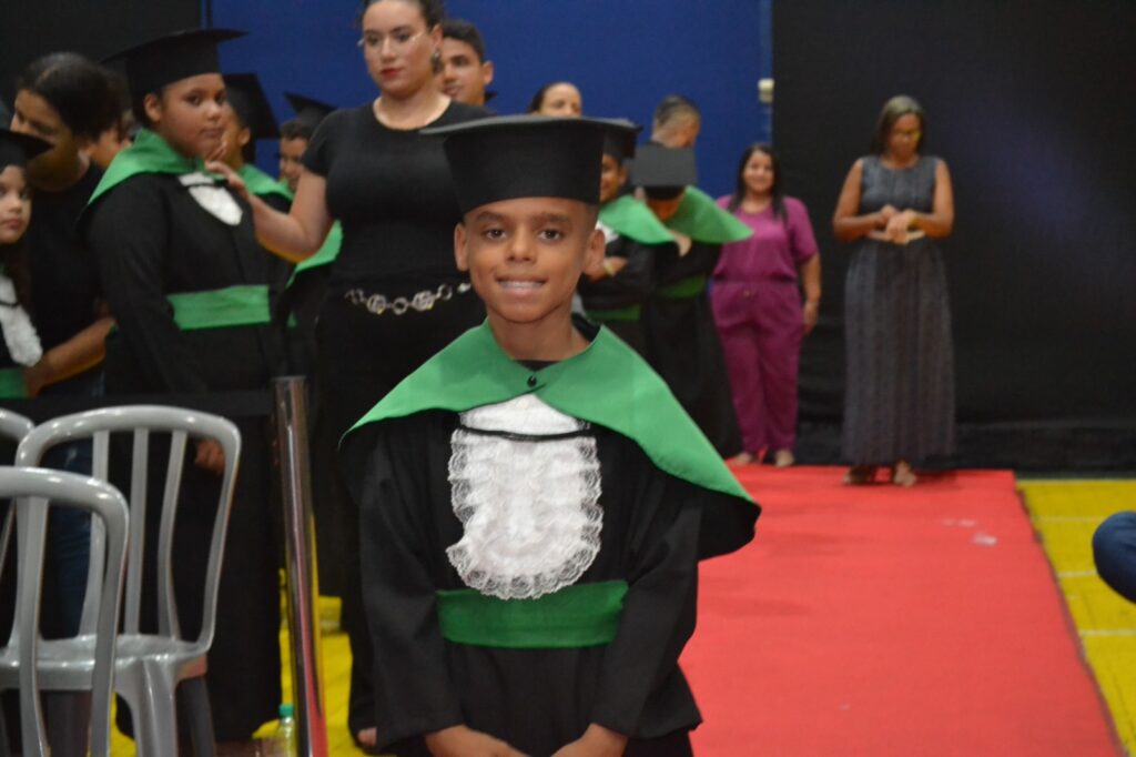 Realizada no Ginásio de Esportes Sinhô Parreira, a cerimônia reuniu estudantes, famílias, professores e toda a comunidade escolar em um momento de grande emoção e celebração. As crianças receberam seus certificados em meio a homenagens e reconhecimento pelo esforço e dedicação demonstrados ao longo do ano letivo.