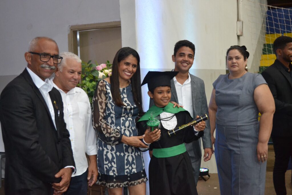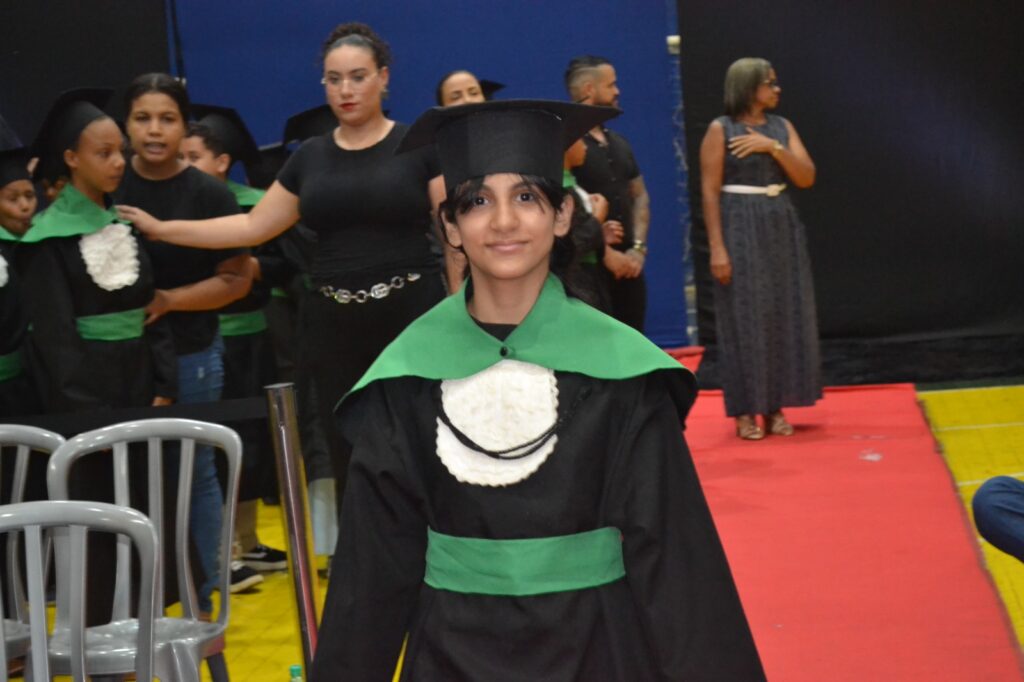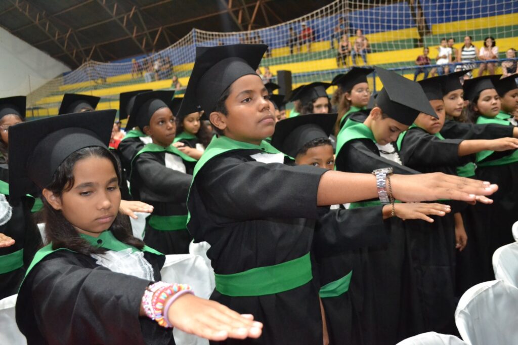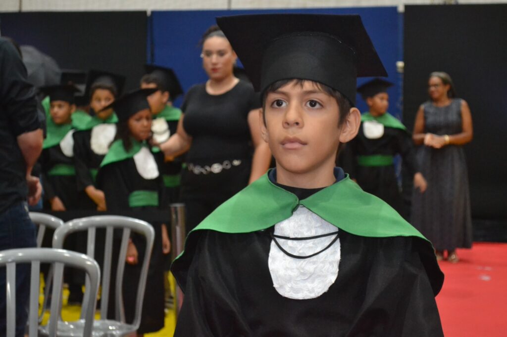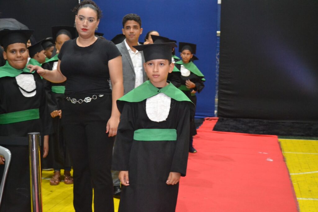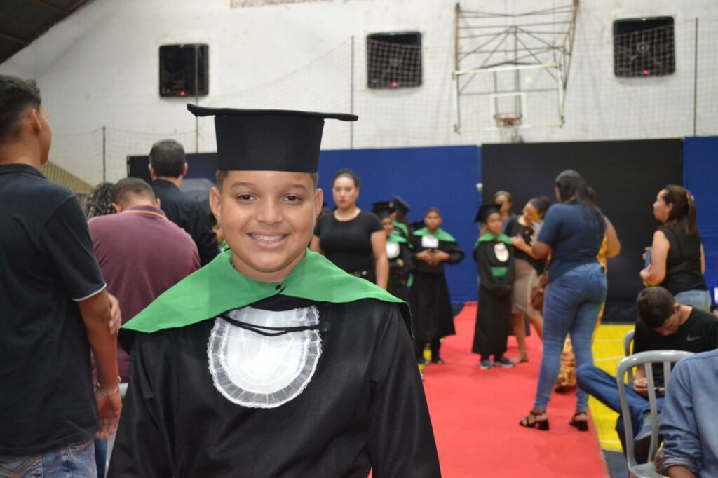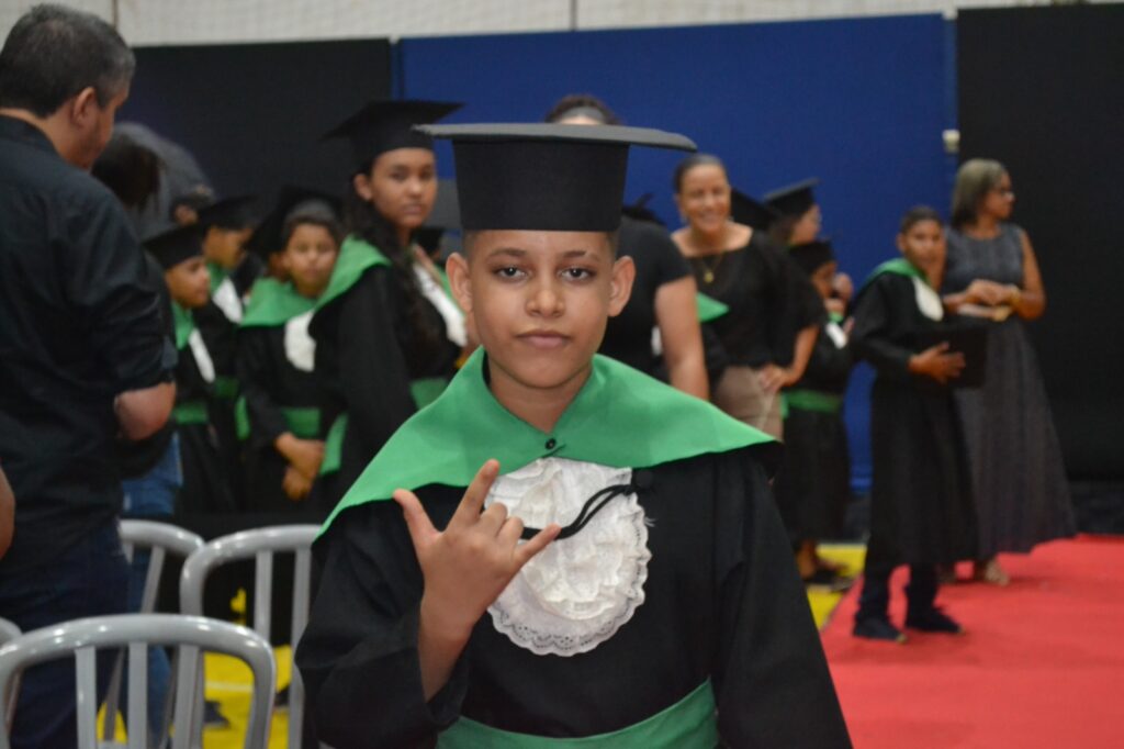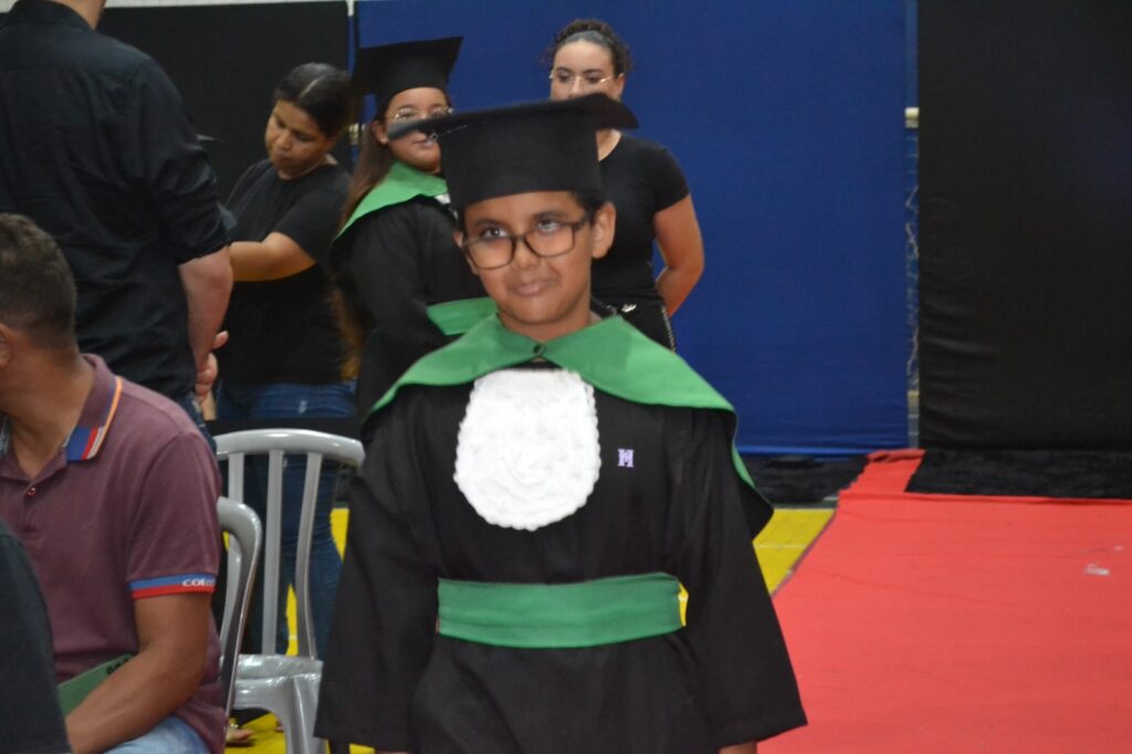 Realizada no Ginásio de Esportes Sinhô Parreira, a cerimônia reuniu estudantes, famílias, professores e toda a comunidade escolar em um momento de grande emoção e celebração. As crianças receberam seus certificados em meio a homenagens e reconhecimento pelo esforço e dedicação demonstrados ao longo do ano letivo.