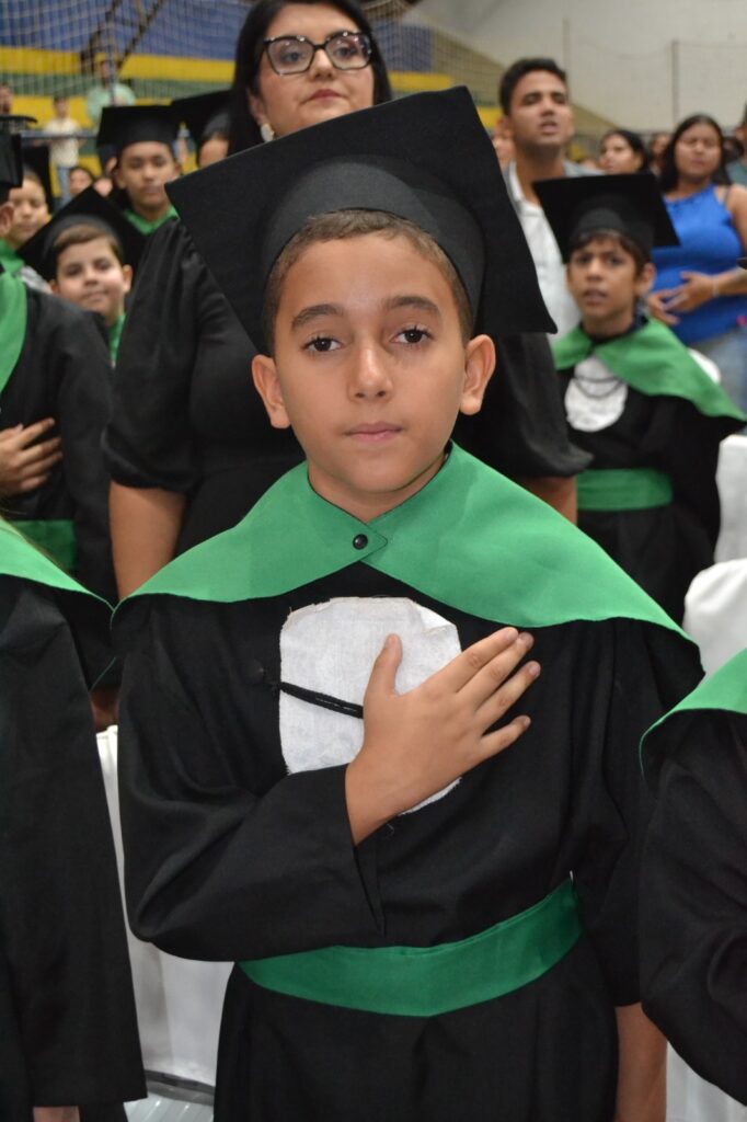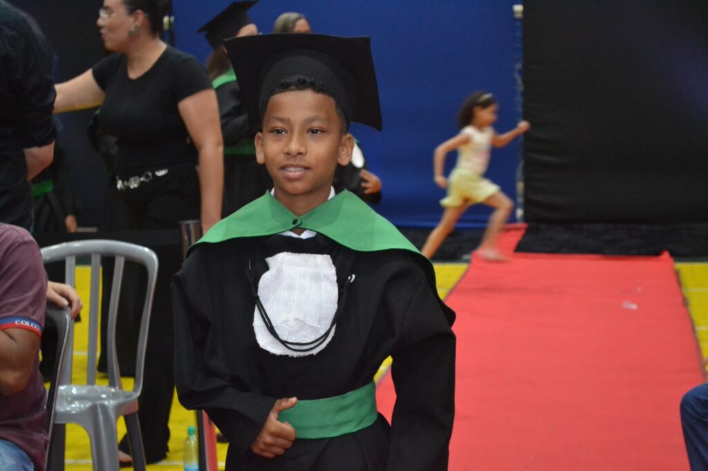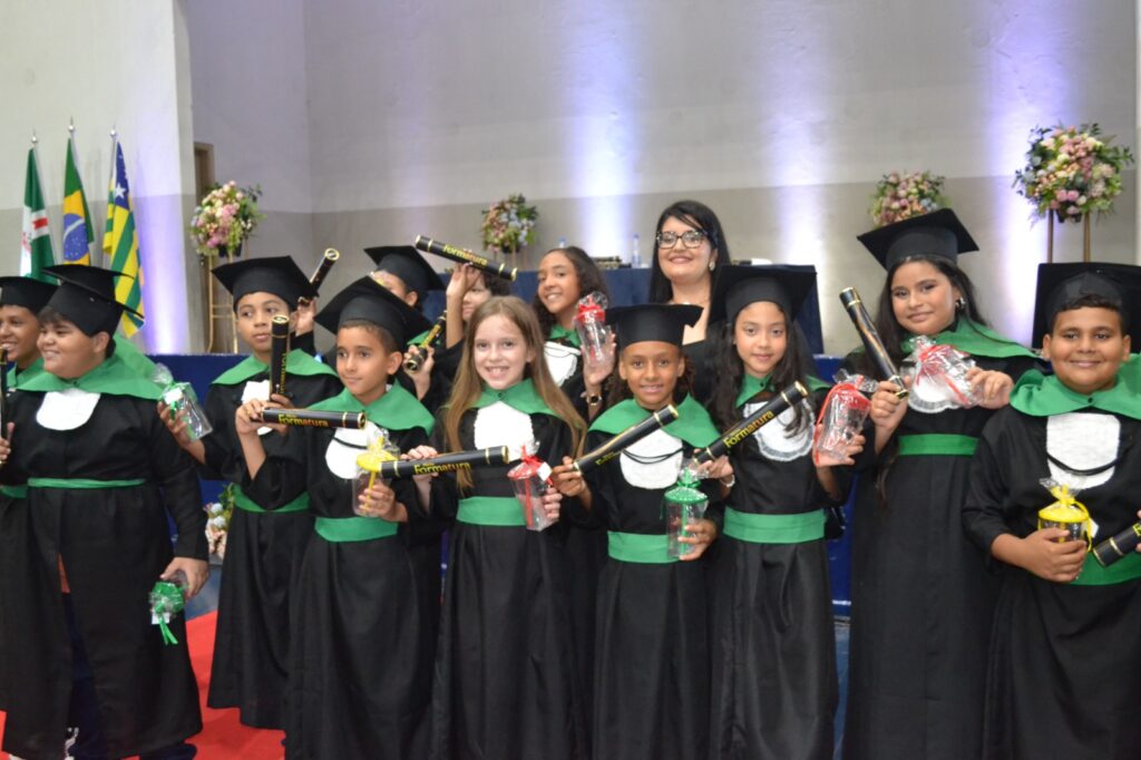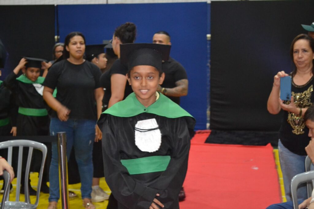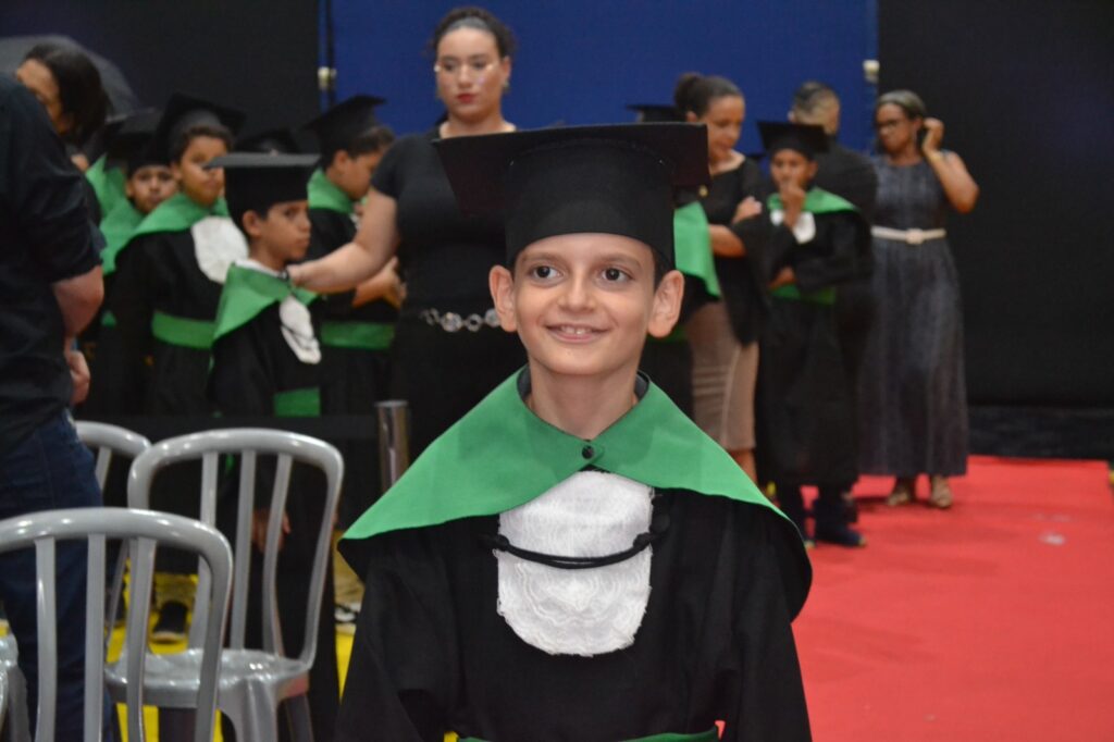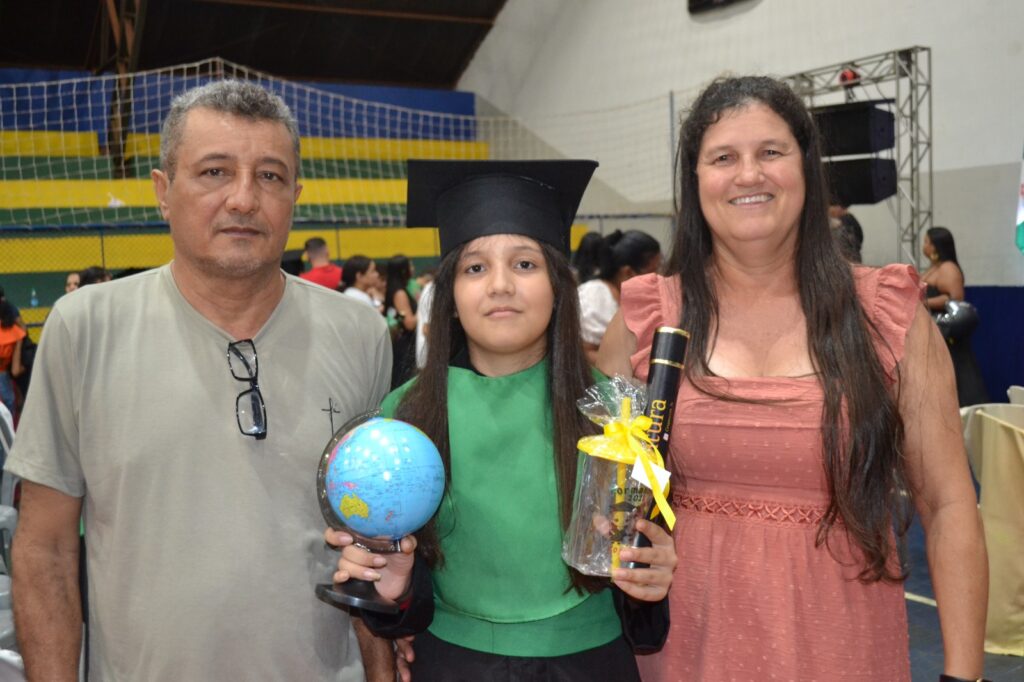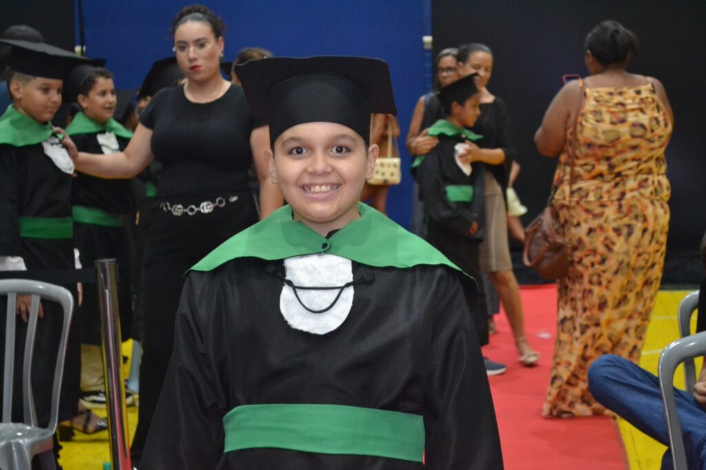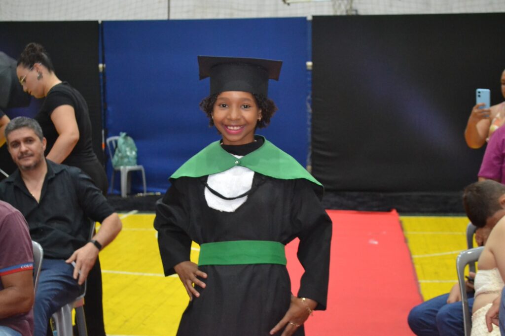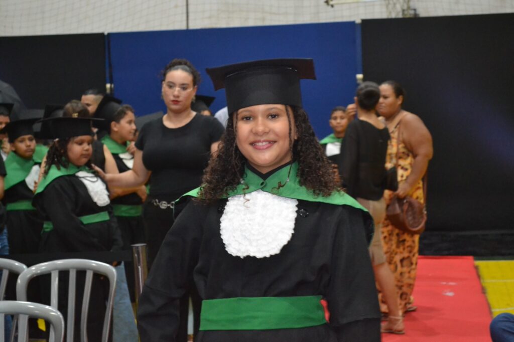 Realizada no Ginásio de Esportes Sinhô Parreira, a cerimônia reuniu estudantes, famílias, professores e toda a comunidade escolar em um momento de grande emoção e celebração. As crianças receberam seus certificados em meio a homenagens e reconhecimento pelo esforço e dedicação demonstrados ao longo do ano letivo.