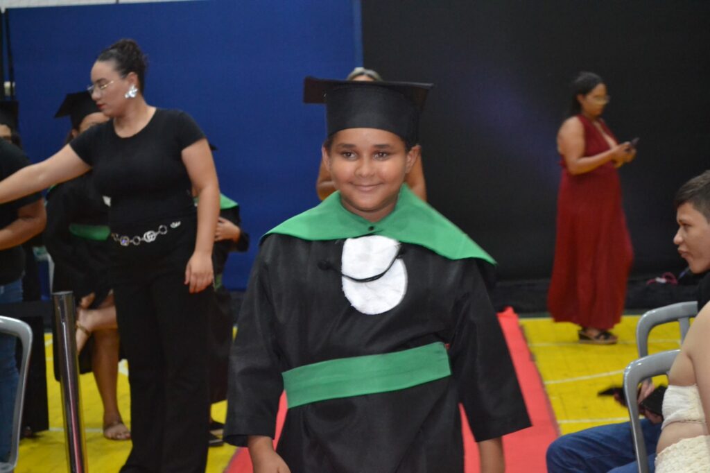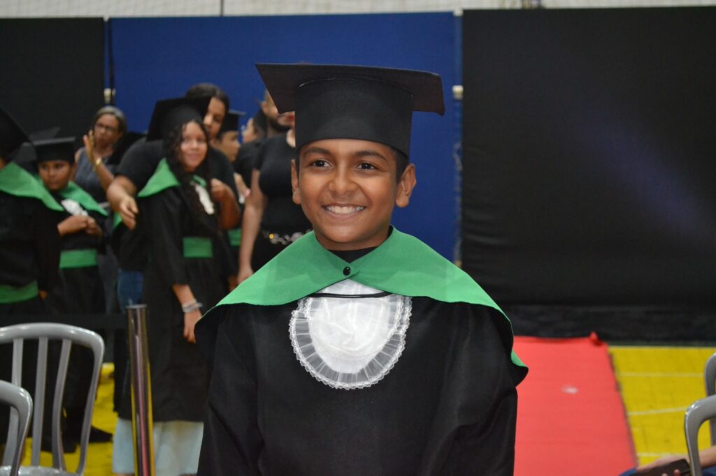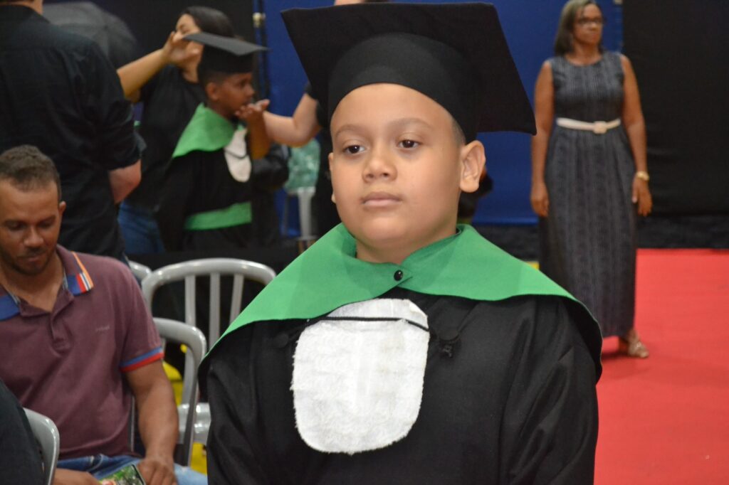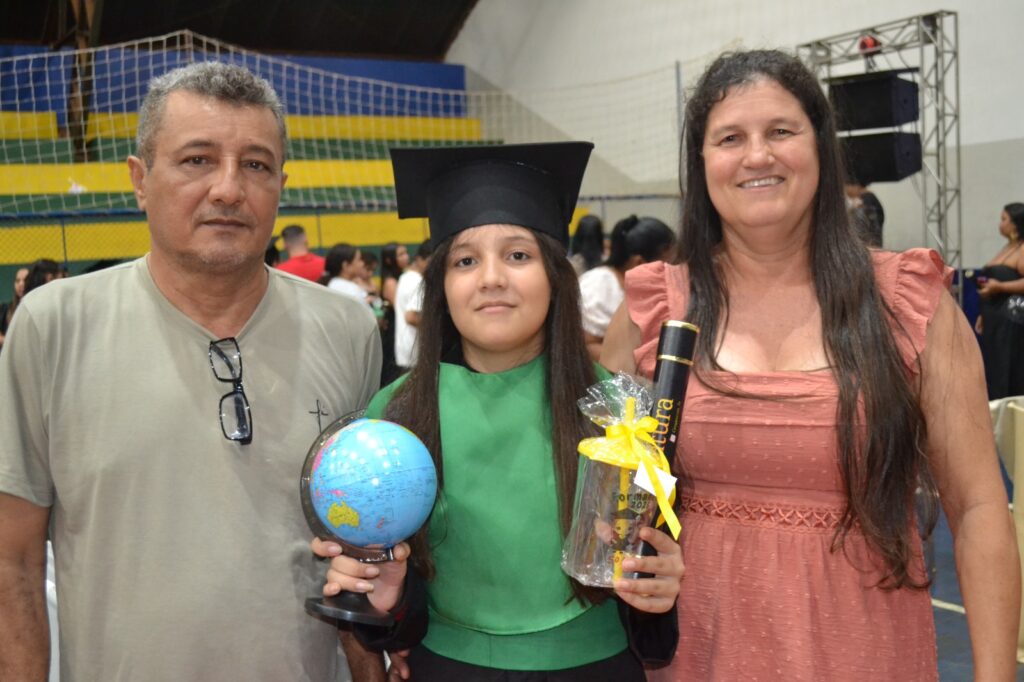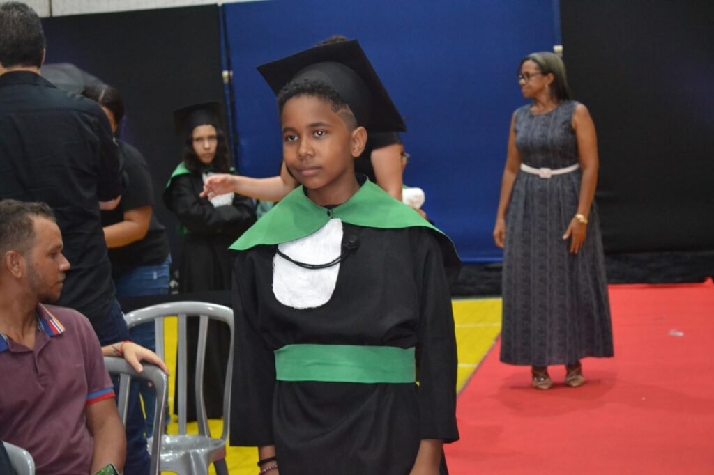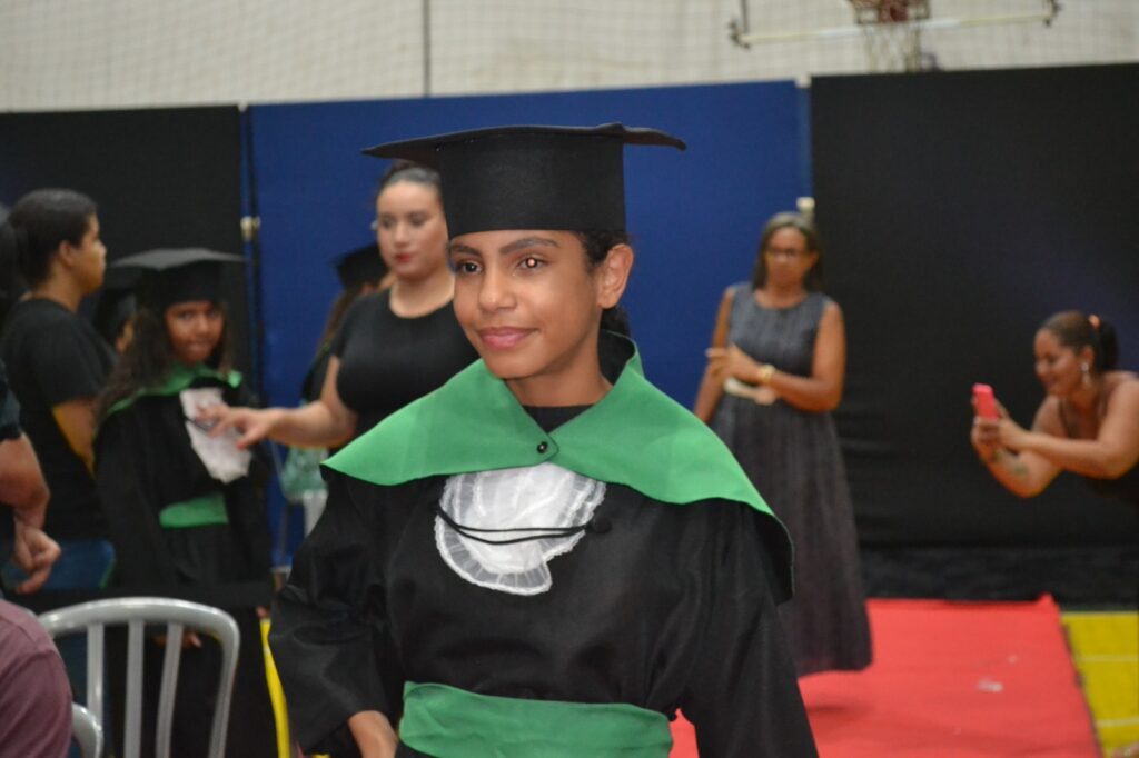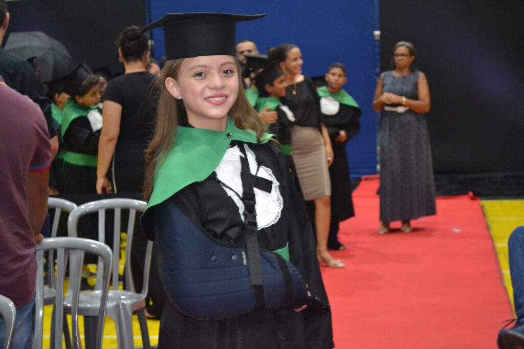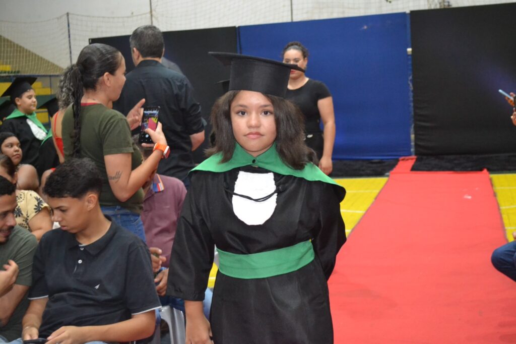 Realizada no Ginásio de Esportes Sinhô Parreira, a cerimônia reuniu estudantes, famílias, professores e toda a comunidade escolar em um momento de grande emoção e celebração. As crianças receberam seus certificados em meio a homenagens e reconhecimento pelo esforço e dedicação demonstrados ao longo do ano letivo.