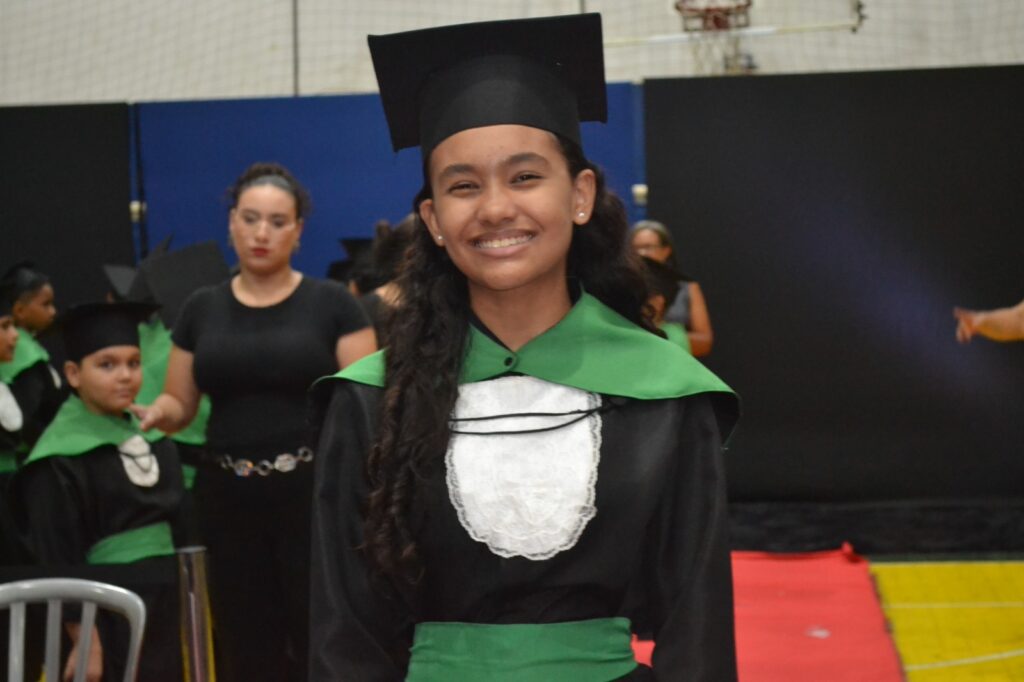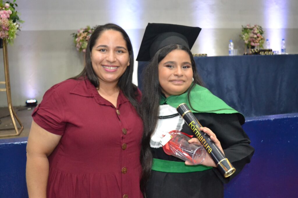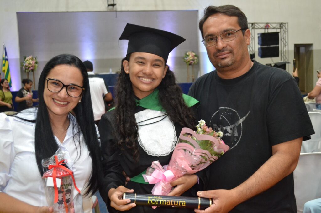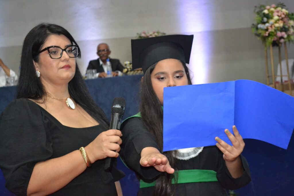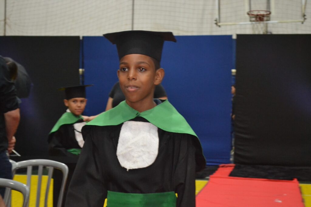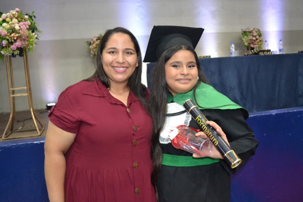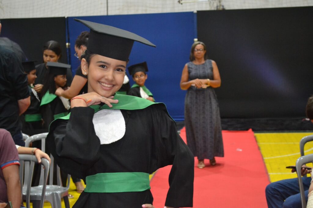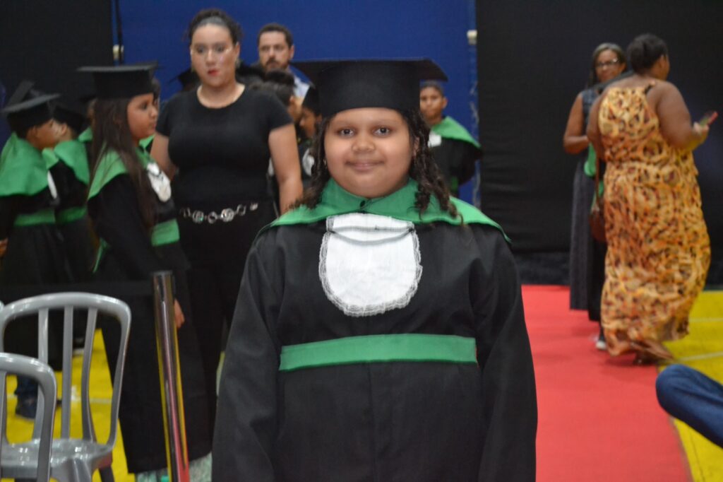 Realizada no Ginásio de Esportes Sinhô Parreira, a cerimônia reuniu estudantes, famílias, professores e toda a comunidade escolar em um momento de grande emoção e celebração. As crianças receberam seus certificados em meio a homenagens e reconhecimento pelo esforço e dedicação demonstrados ao longo do ano letivo.