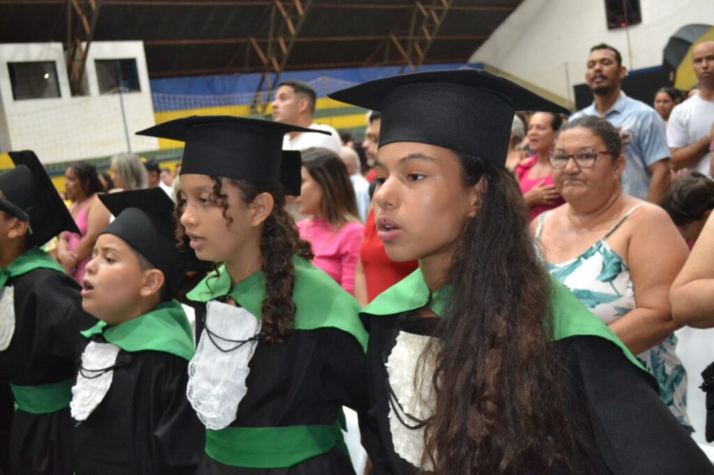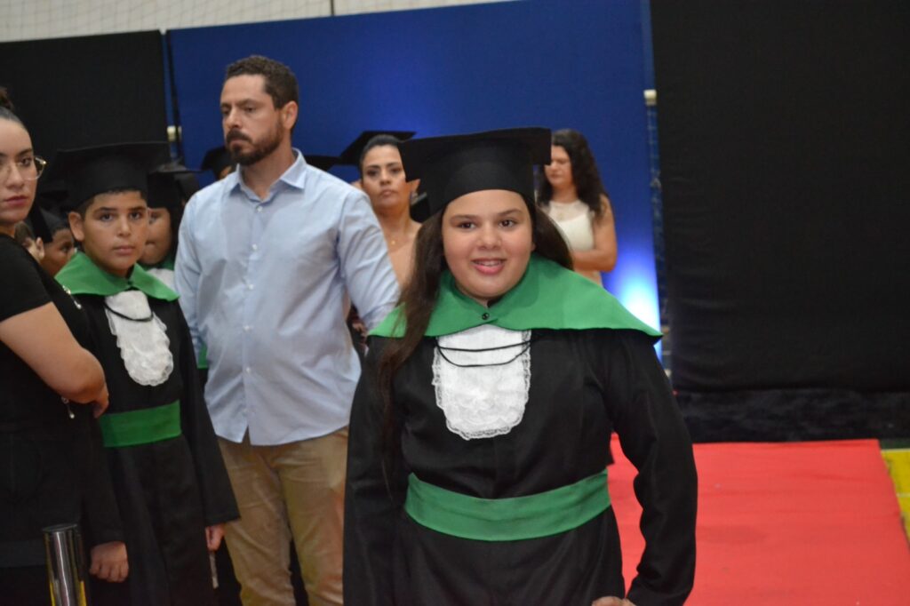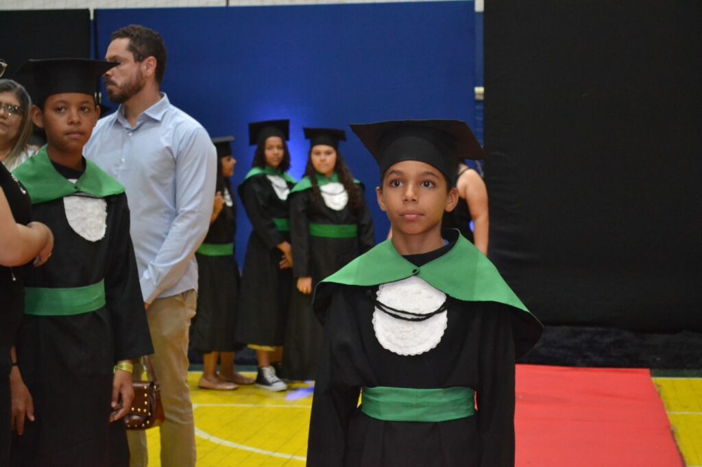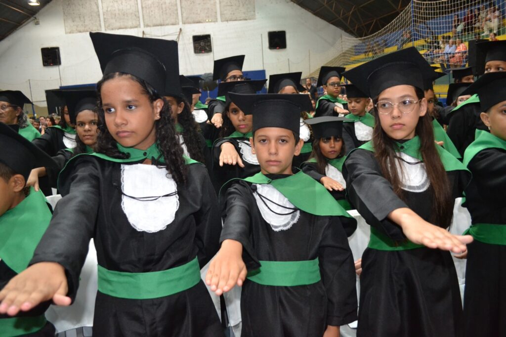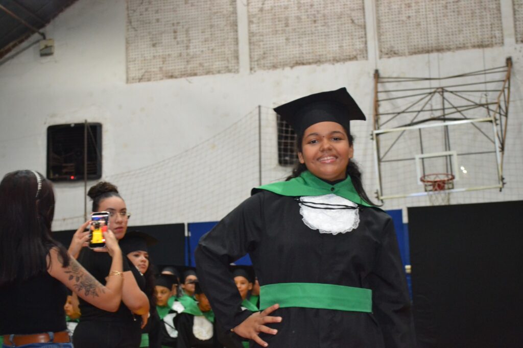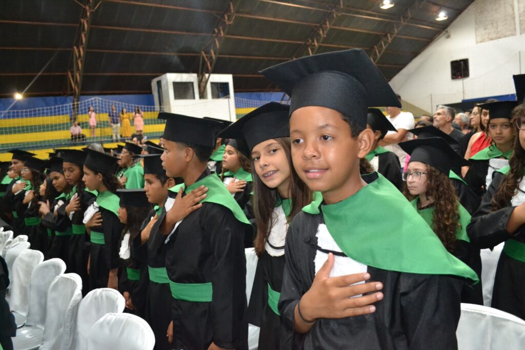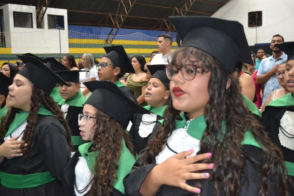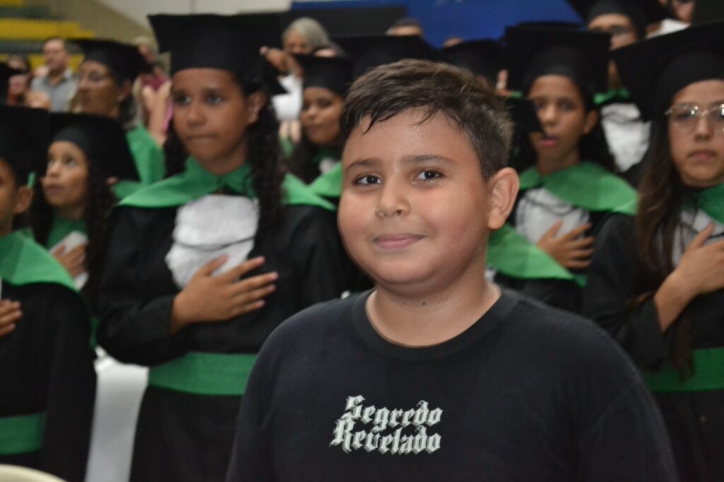 A solenidade reuniu os estudantes do 5º Ano da Escola Municipal Valeriano Rodrigues da Silva, da Creche Escola CEMEI Durval Ribeiro e da Escola de Campeões, além dos formandos do EJA – Educação de Jovens e Adultos, que também celebraram a conclusão de mais uma etapa importante em sua trajetória educacional.