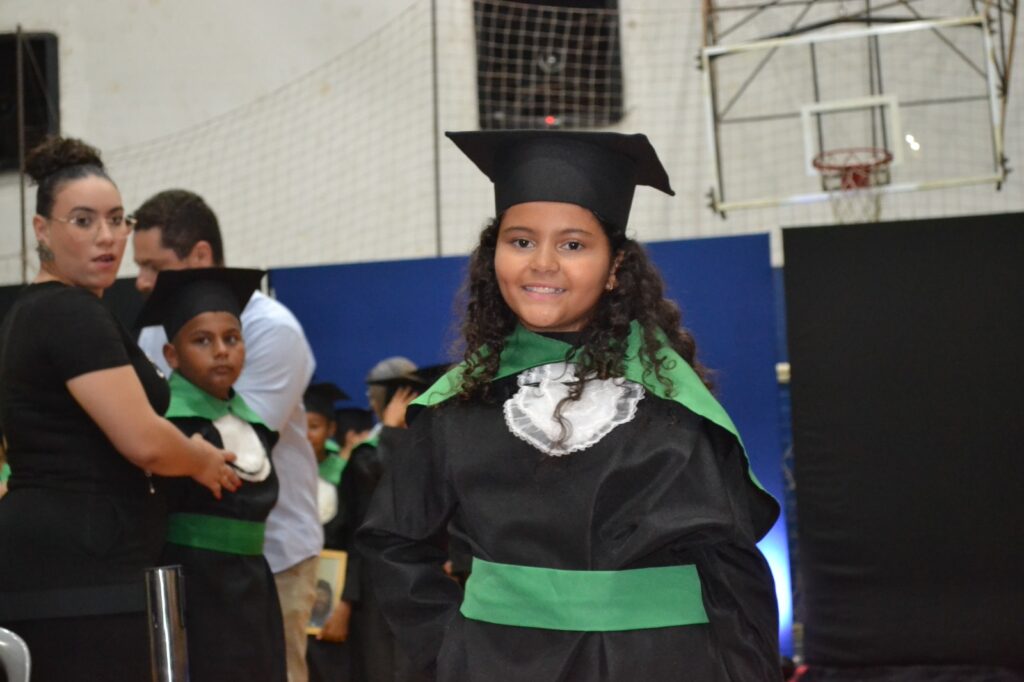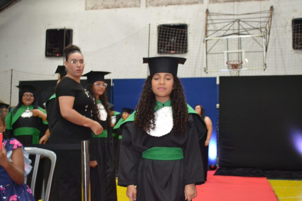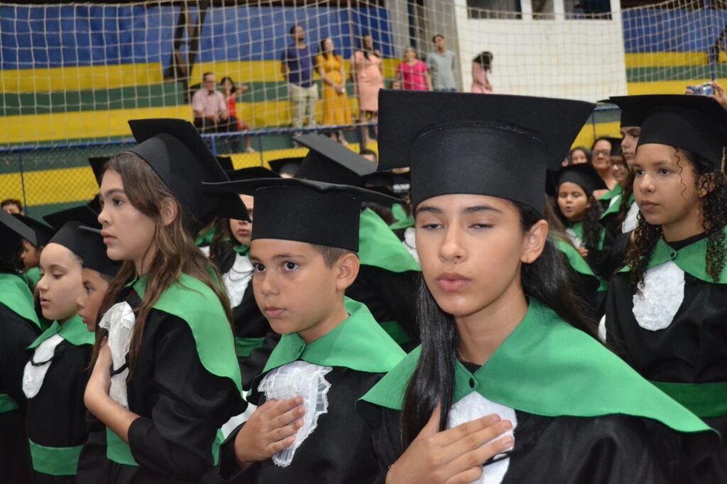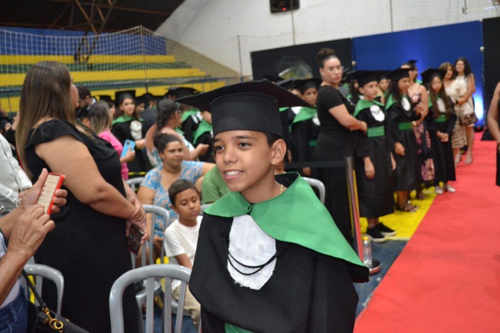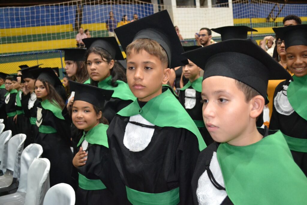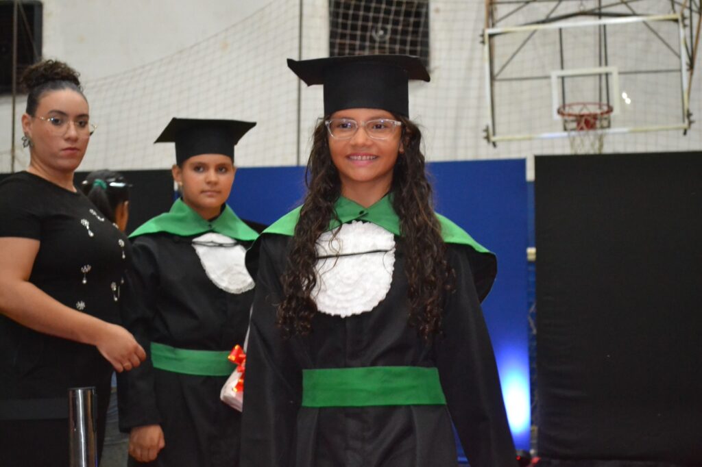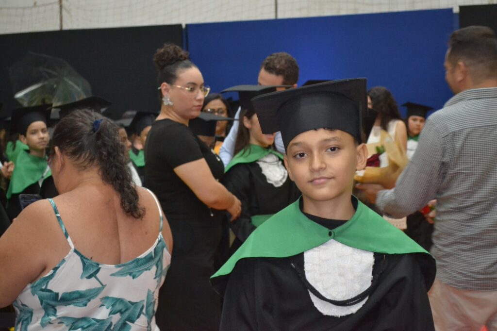 A solenidade reuniu os estudantes do 5º Ano da Escola Municipal Valeriano Rodrigues da Silva, da Creche Escola CEMEI Durval Ribeiro e da Escola de Campeões, além dos formandos do EJA – Educação de Jovens e Adultos, que também celebraram a conclusão de mais uma etapa importante em sua trajetória educacional.