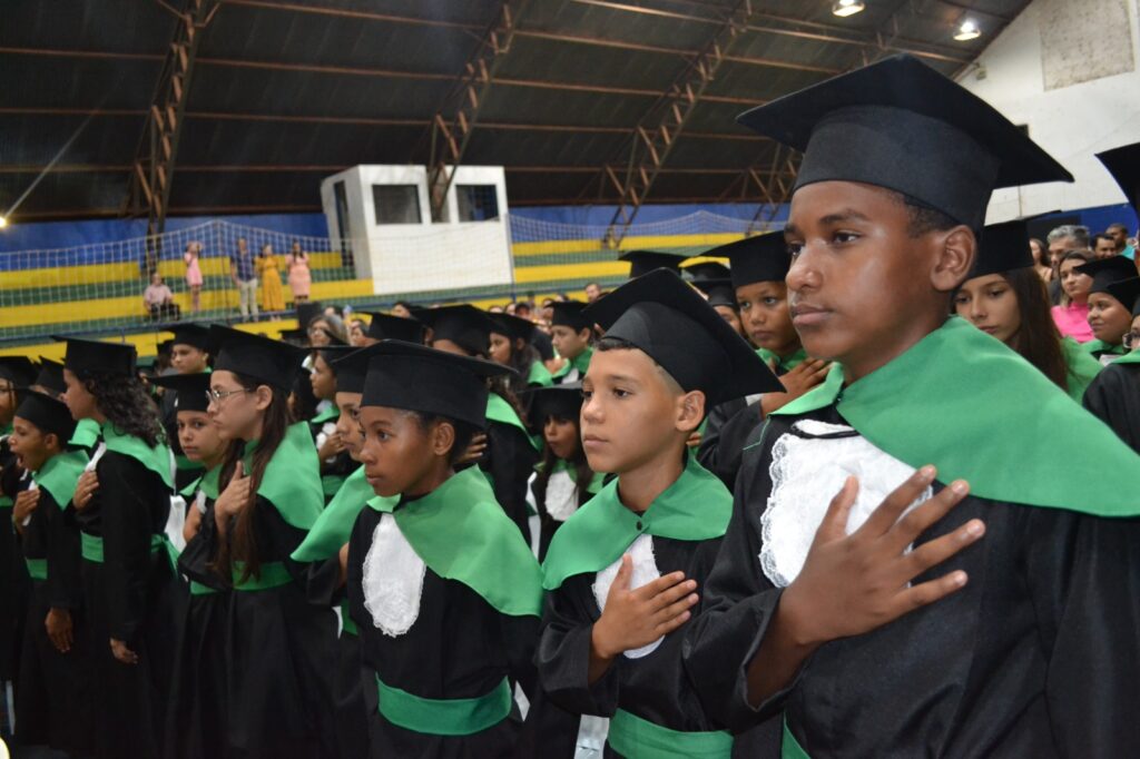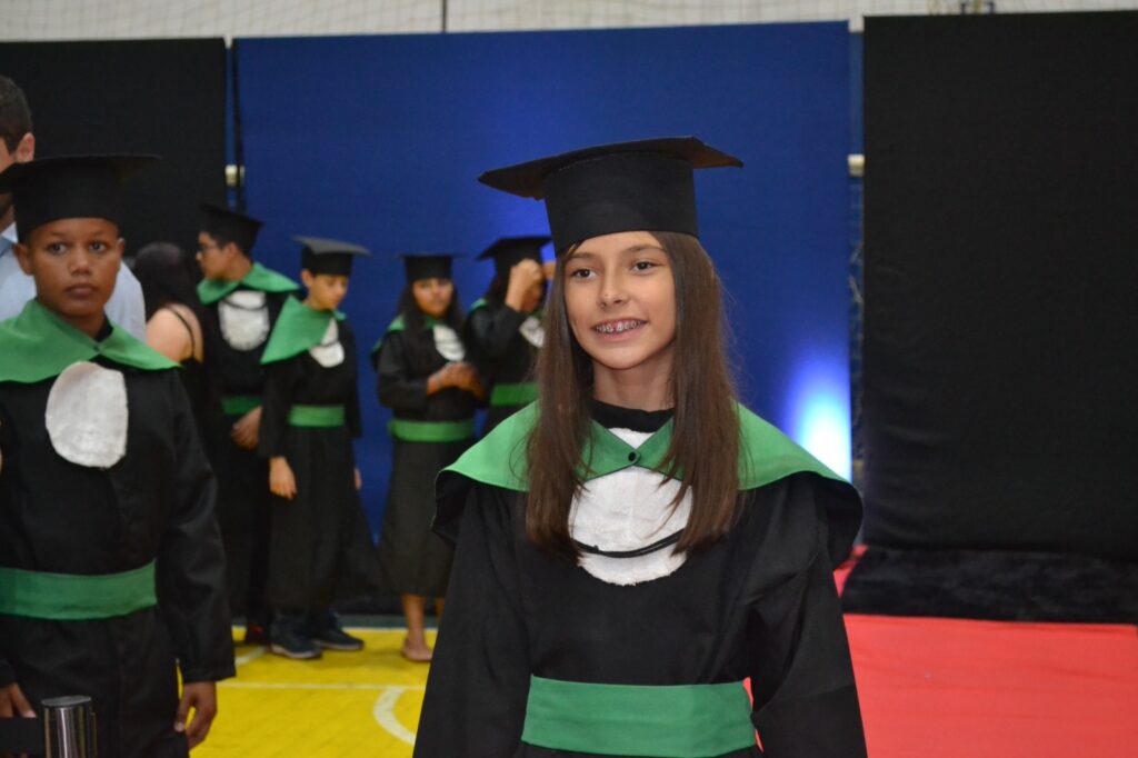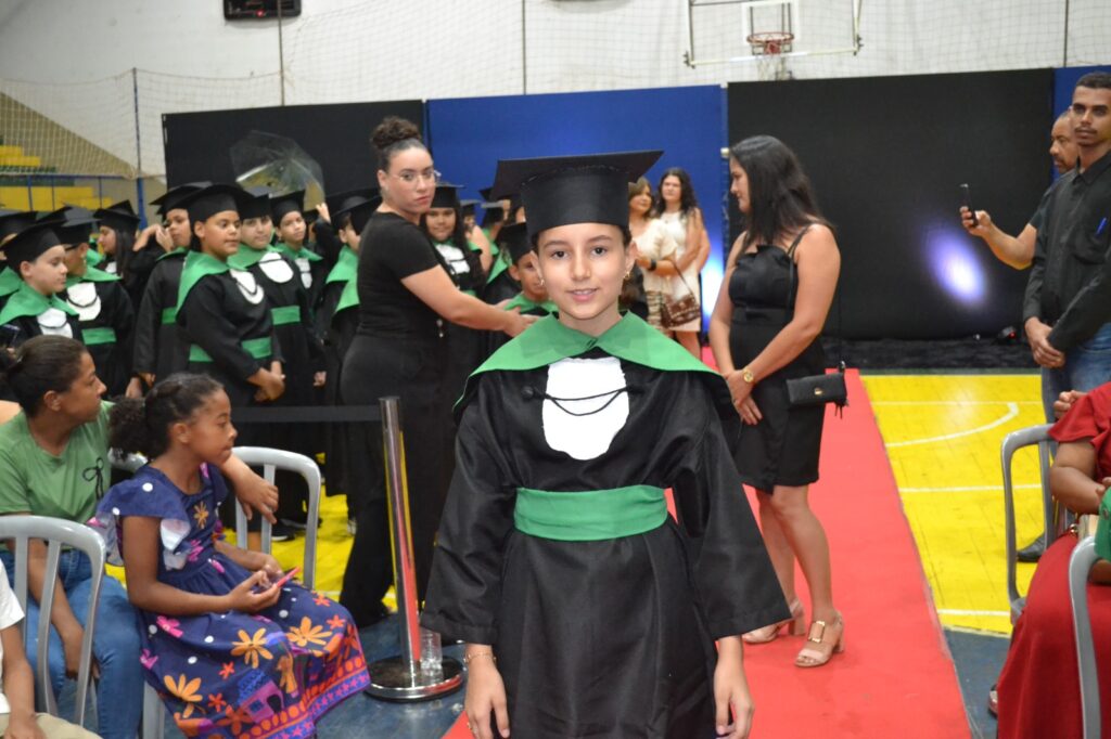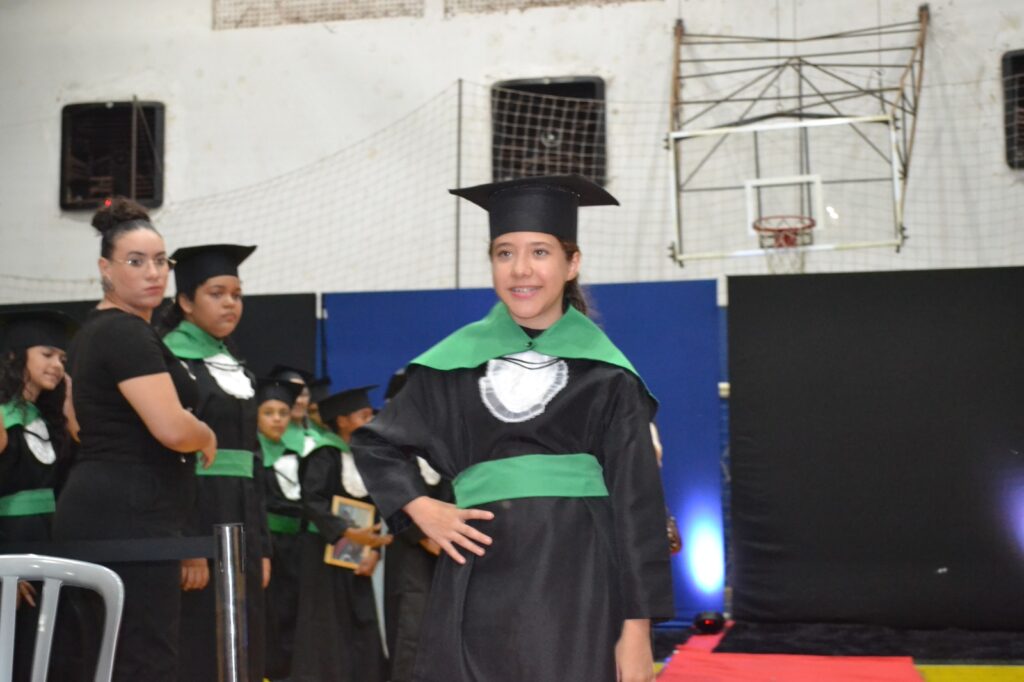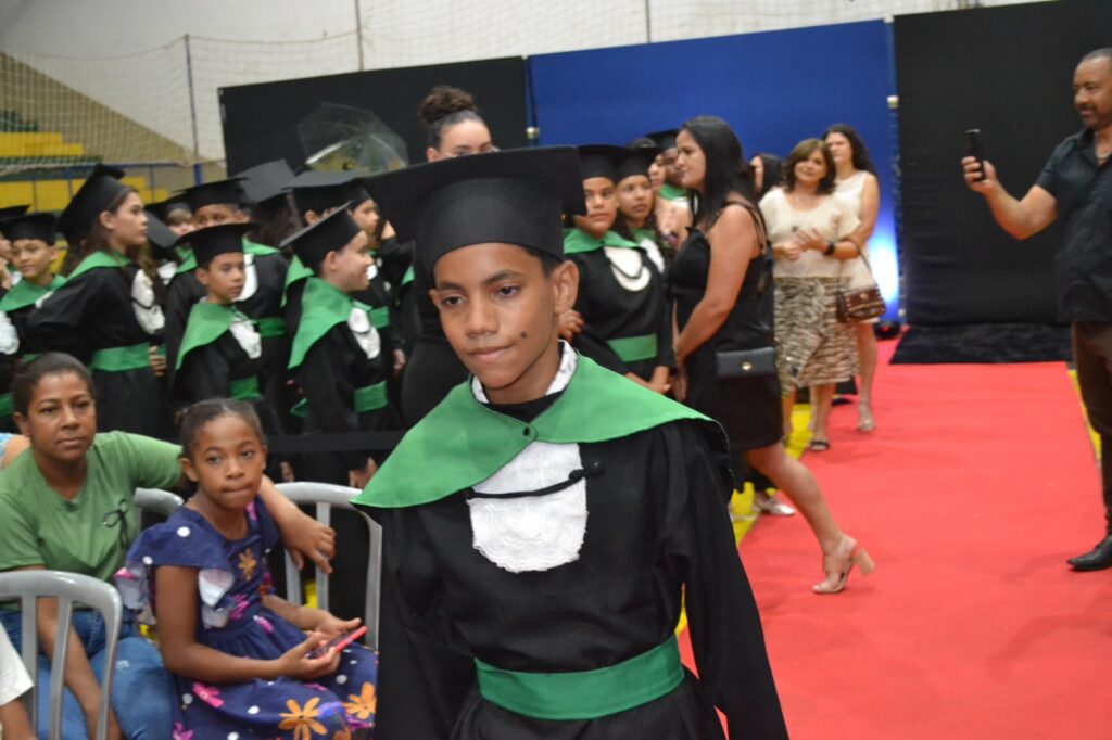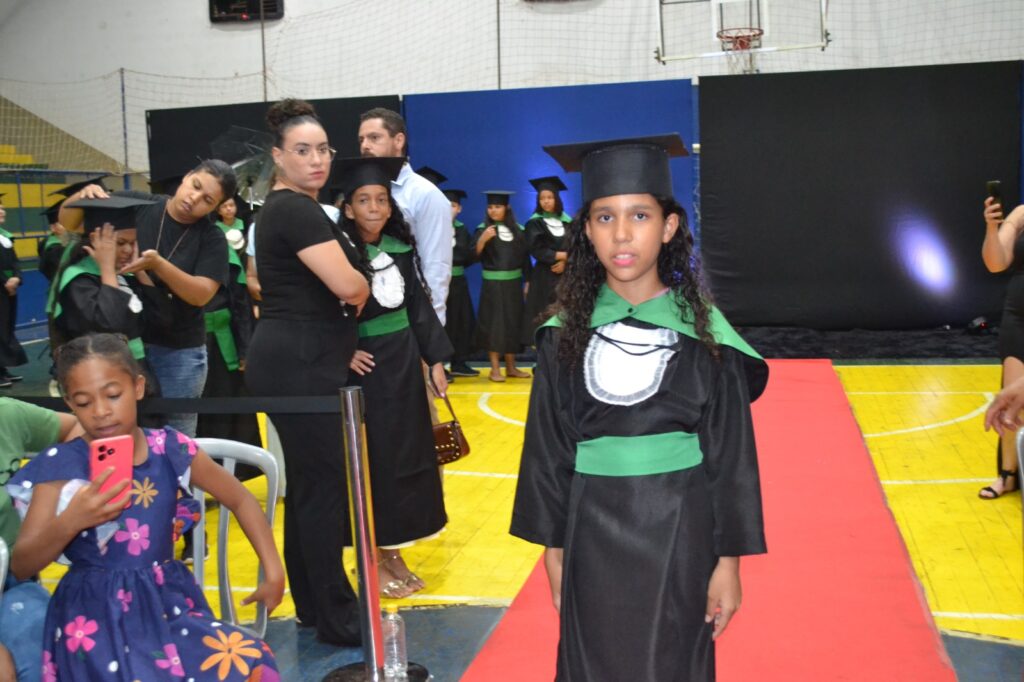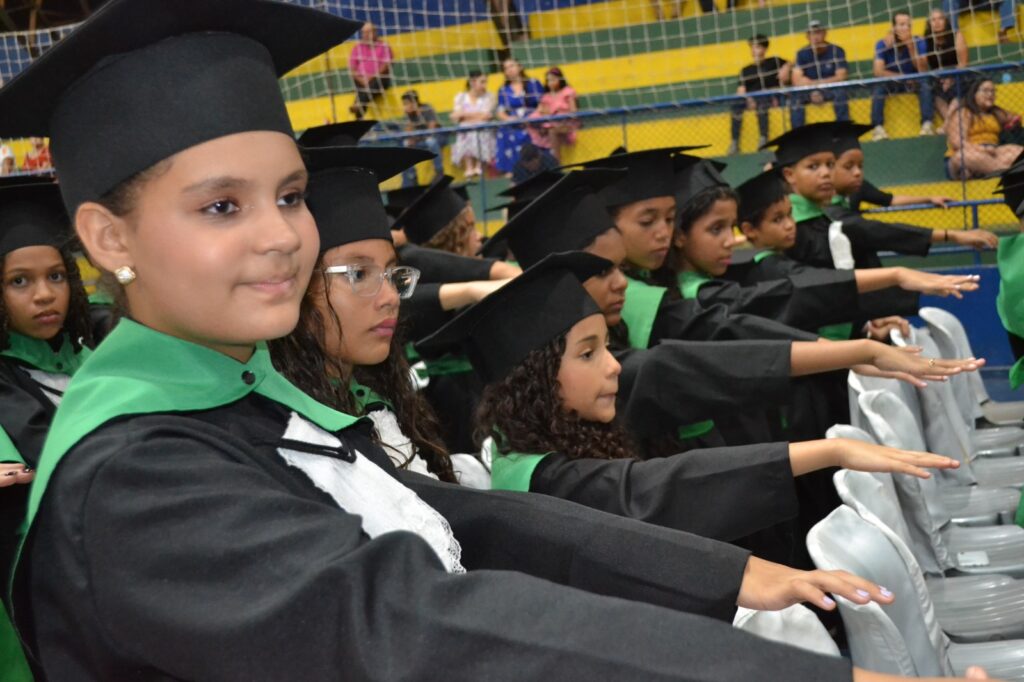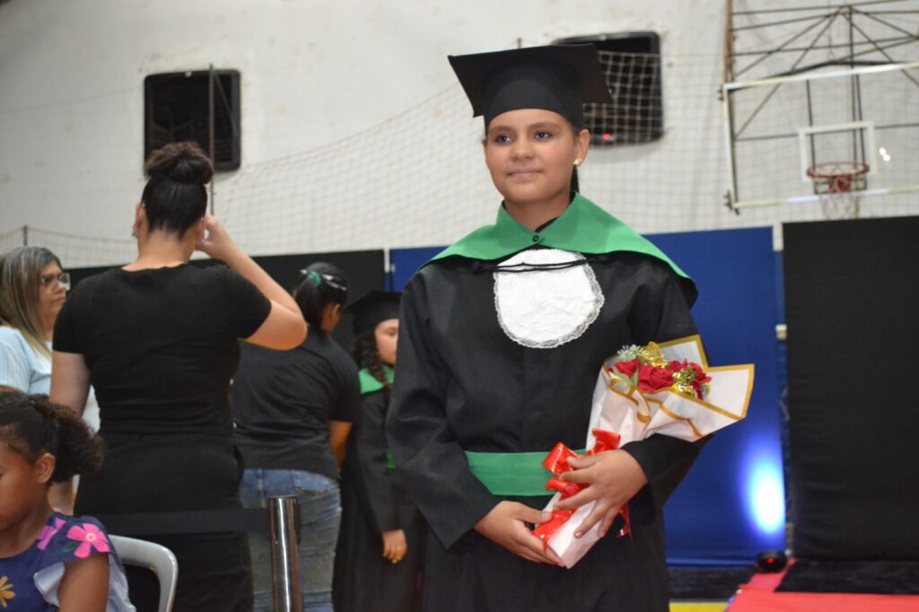 A solenidade reuniu os estudantes do 5º Ano da Escola Municipal Valeriano Rodrigues da Silva, da Creche Escola CEMEI Durval Ribeiro e da Escola de Campeões, além dos formandos do EJA – Educação de Jovens e Adultos, que também celebraram a conclusão de mais uma etapa importante em sua trajetória educacional.