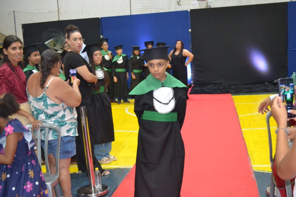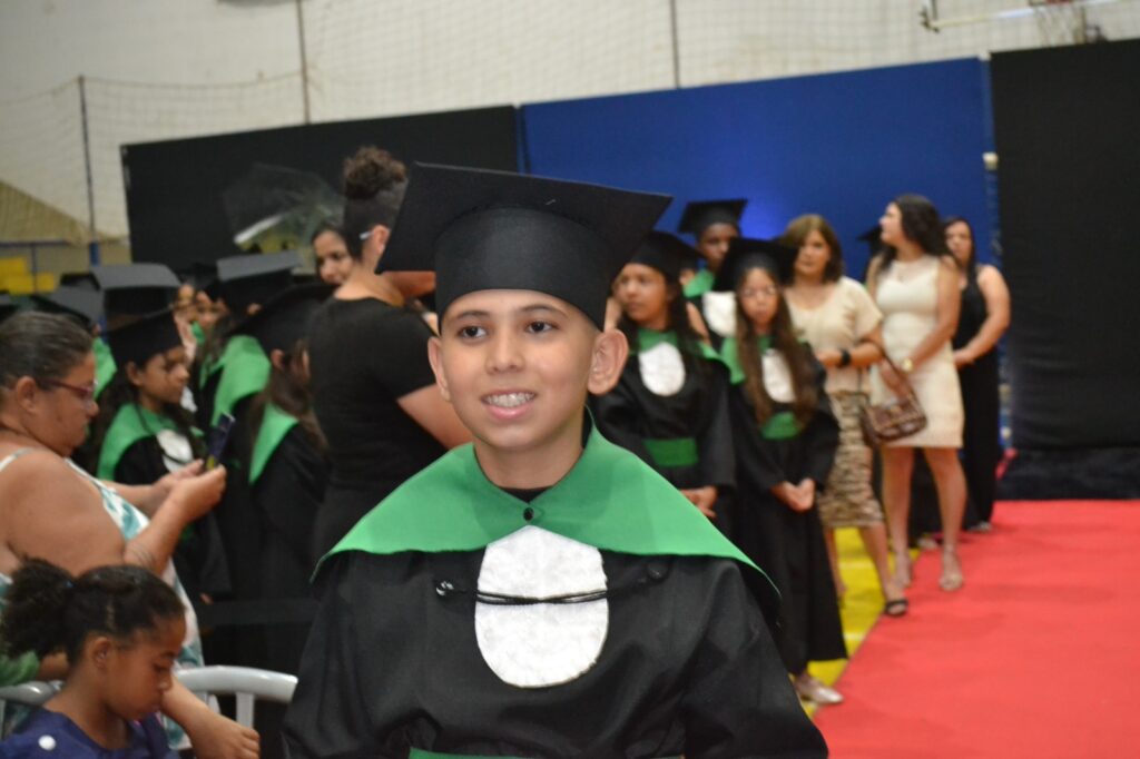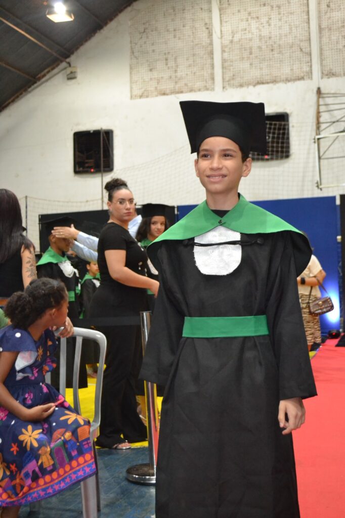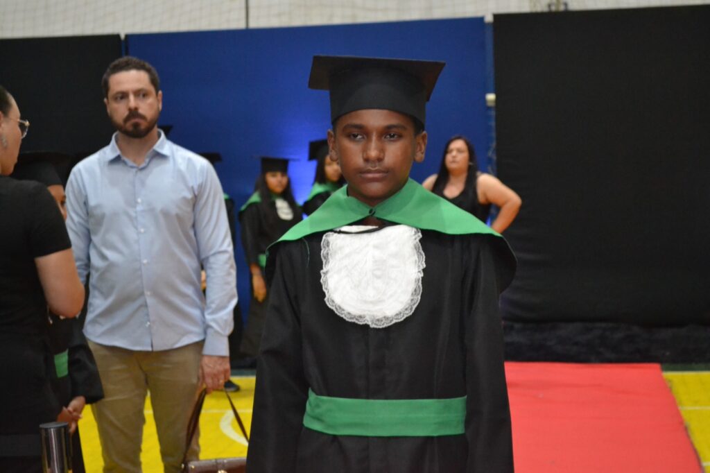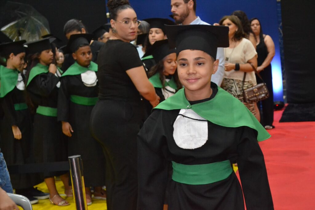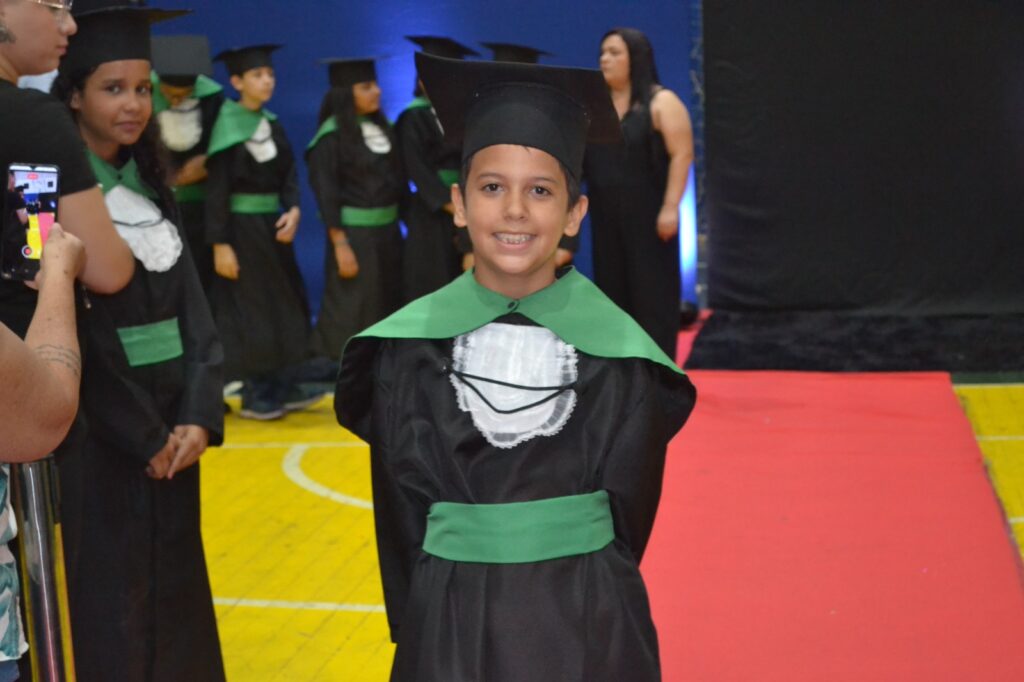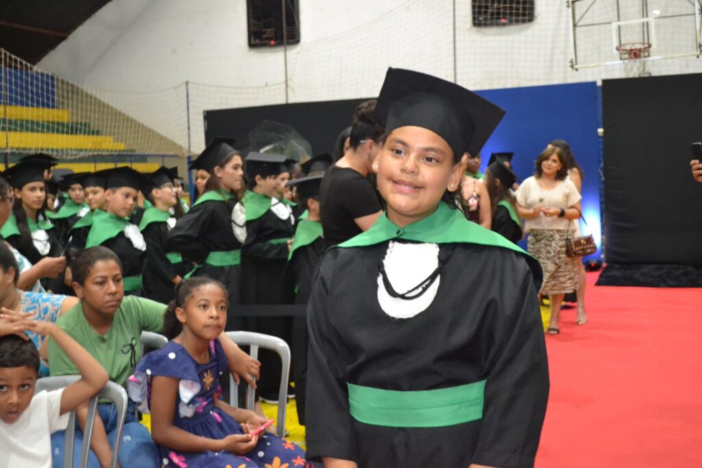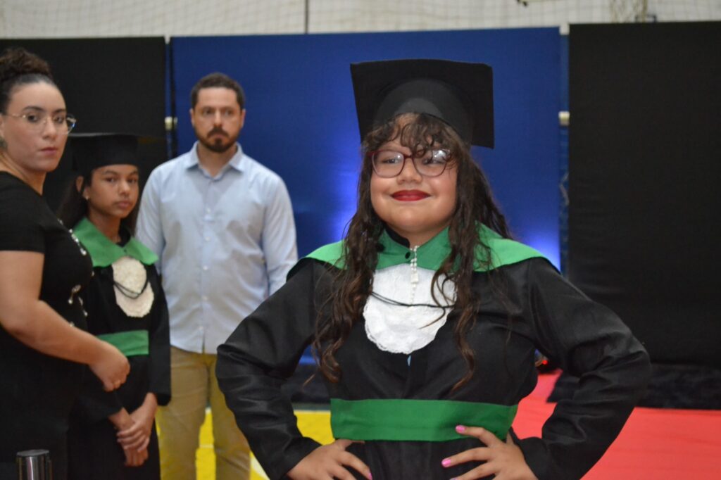 A solenidade reuniu os estudantes do 5º Ano da Escola Municipal Valeriano Rodrigues da Silva, da Creche Escola CEMEI Durval Ribeiro e da Escola de Campeões, além dos formandos do EJA – Educação de Jovens e Adultos, que também celebraram a conclusão de mais uma etapa importante em sua trajetória educacional.