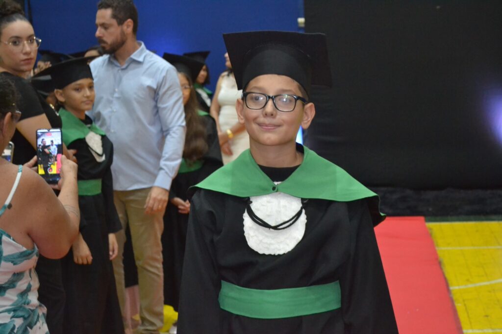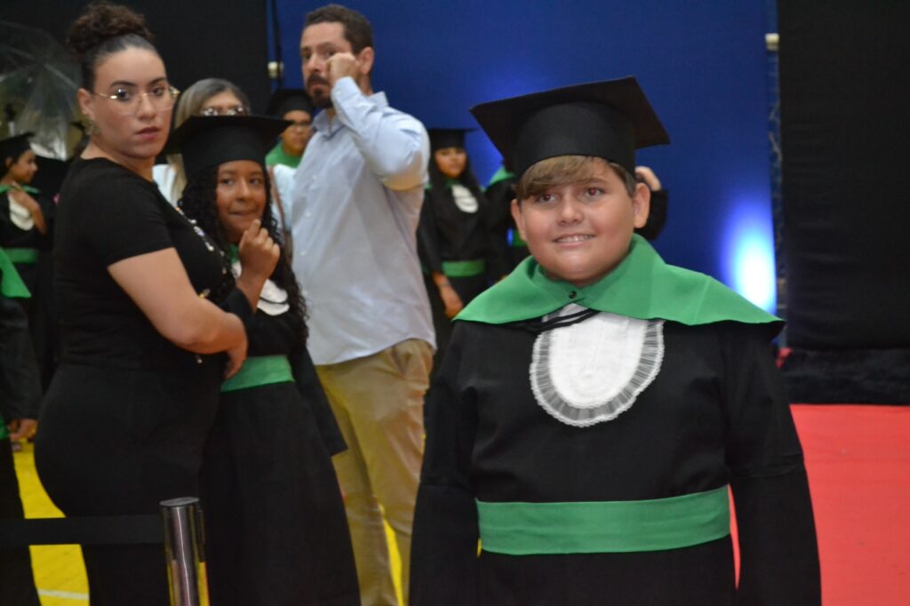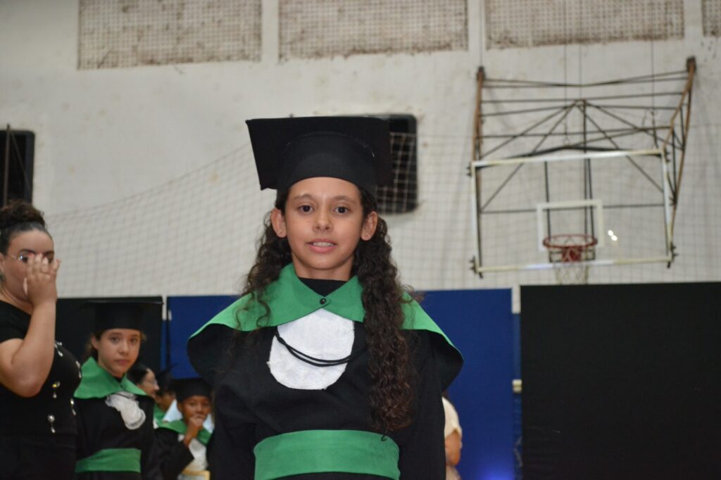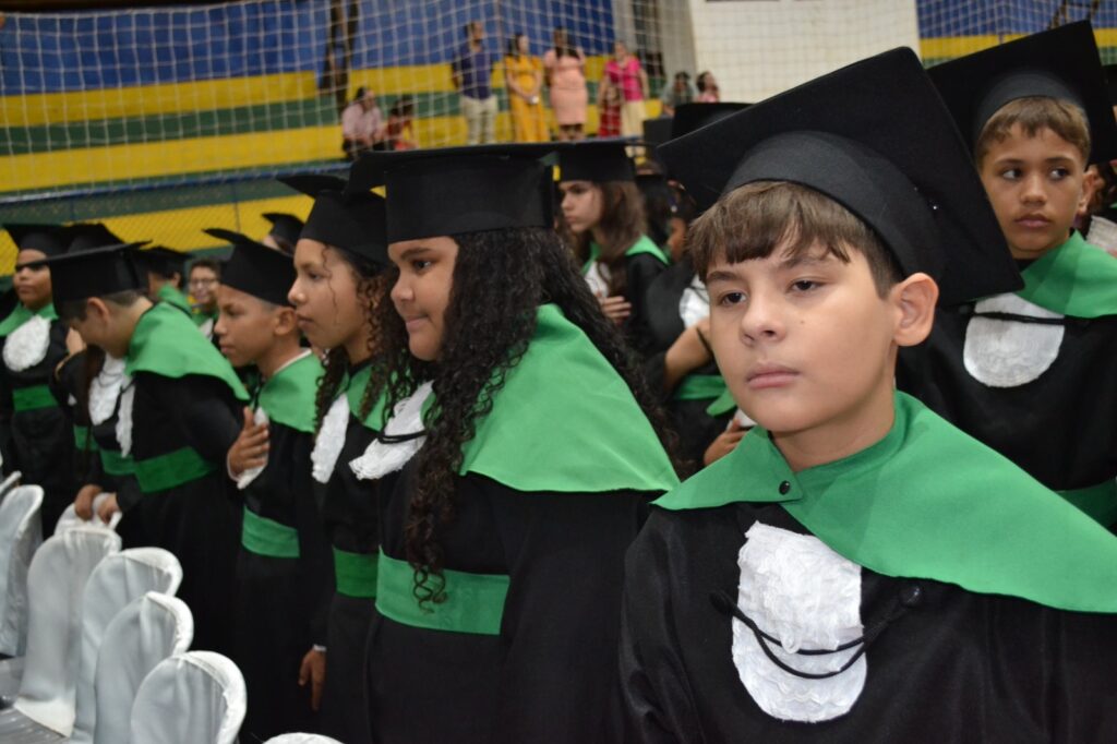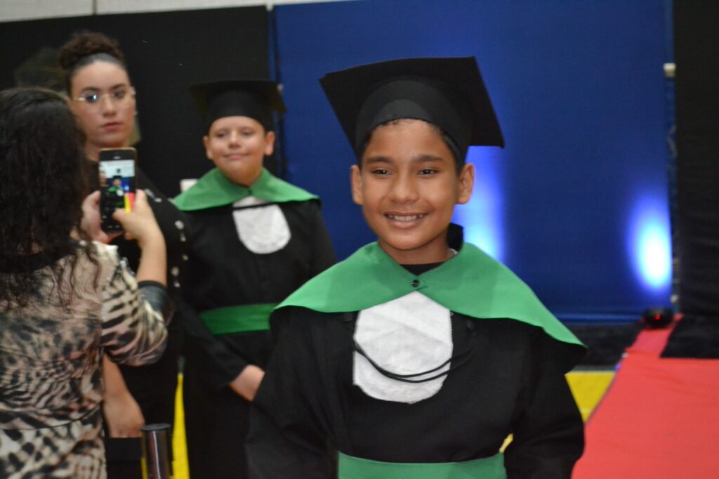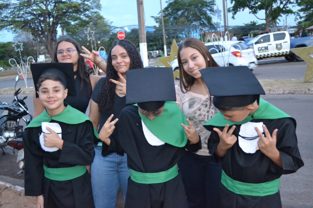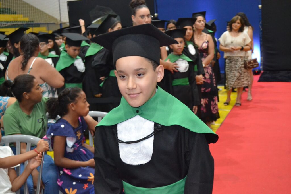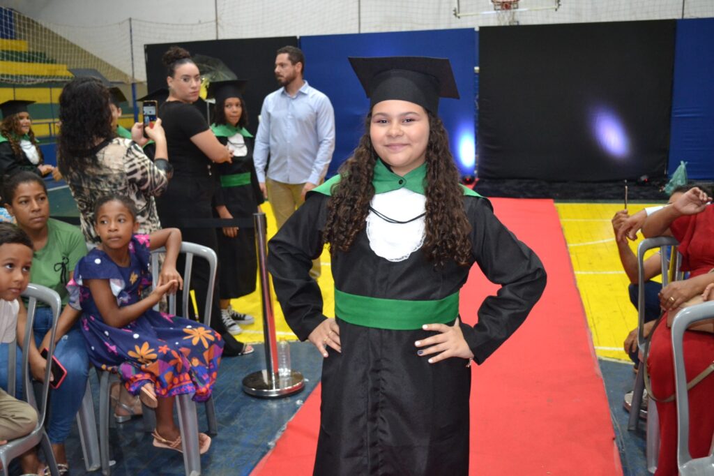A solenidade reuniu os estudantes do 5º Ano da Escola Municipal Valeriano Rodrigues da Silva, da Creche Escola CEMEI Durval Ribeiro e da Escola de Campeões, além dos formandos do EJA – Educação de Jovens e Adultos, que também celebraram a conclusão de mais uma etapa importante em sua trajetória educacional.