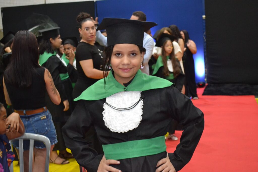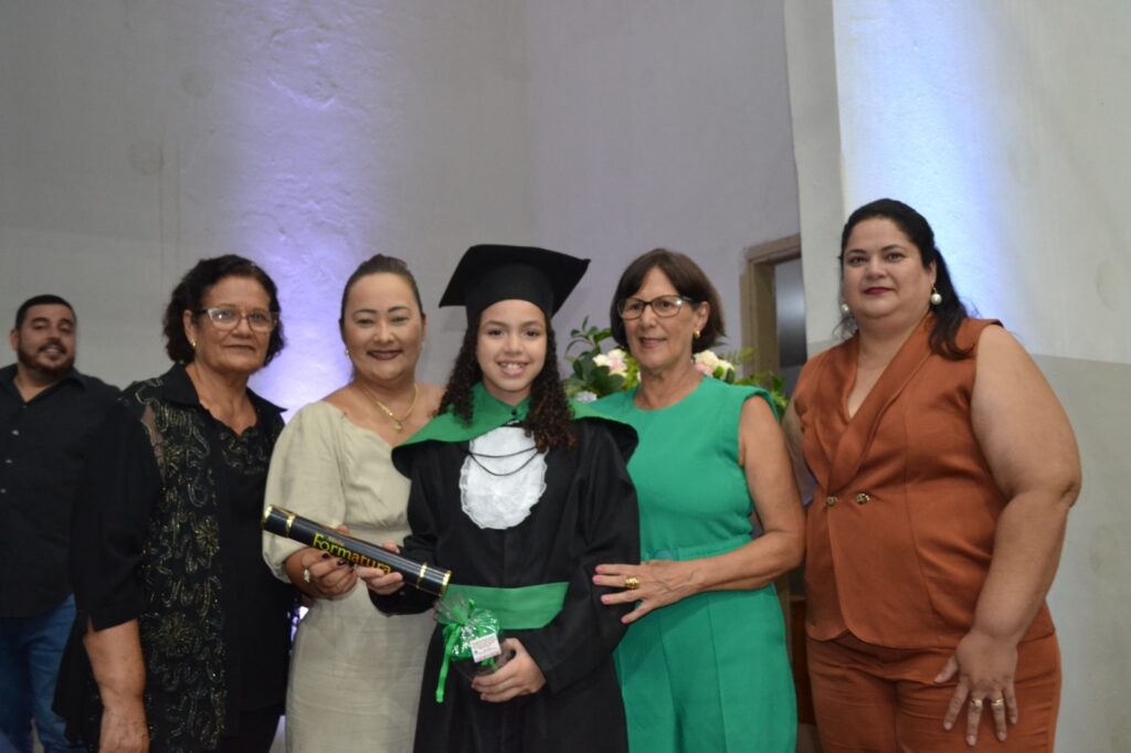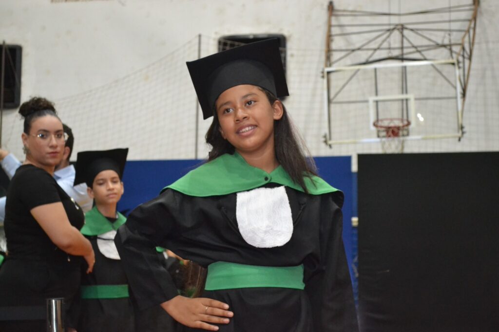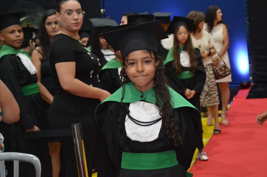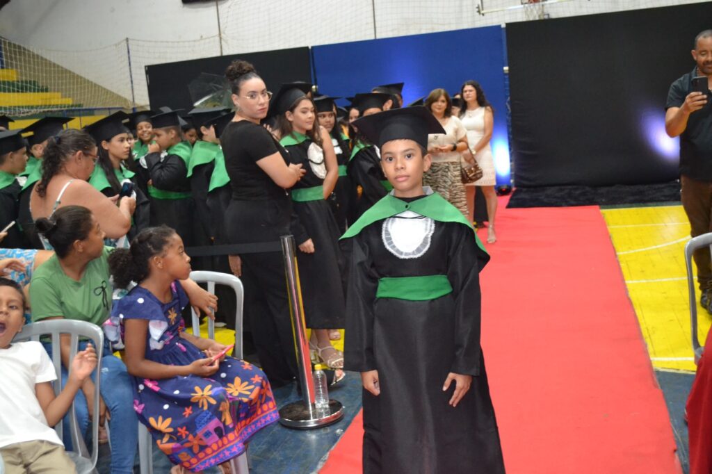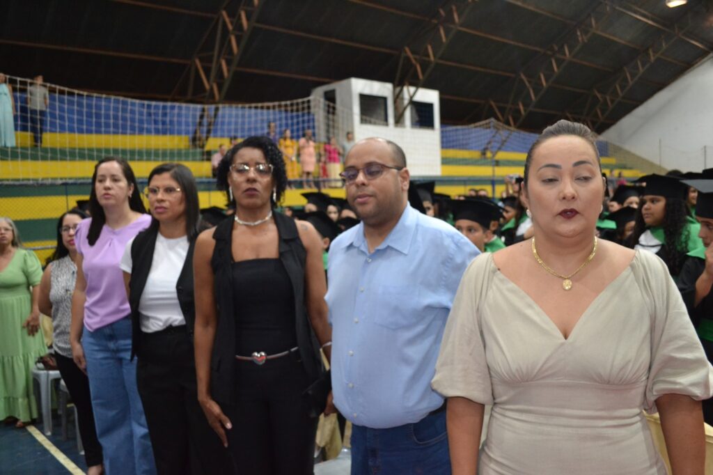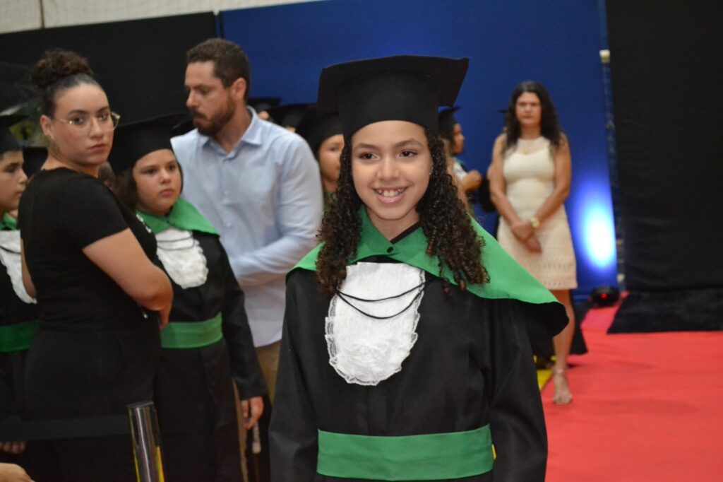 A solenidade reuniu os estudantes do 5º Ano da Escola Municipal Valeriano Rodrigues da Silva, da Creche Escola CEMEI Durval Ribeiro e da Escola de Campeões, além dos formandos do EJA – Educação de Jovens e Adultos, que também celebraram a conclusão de mais uma etapa importante em sua trajetória educacional.