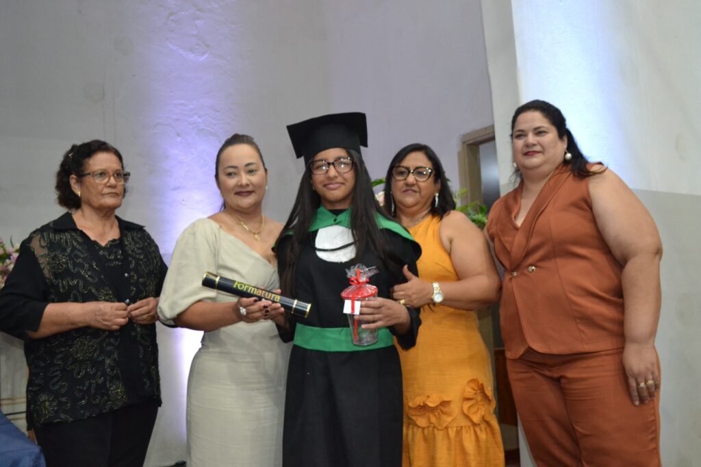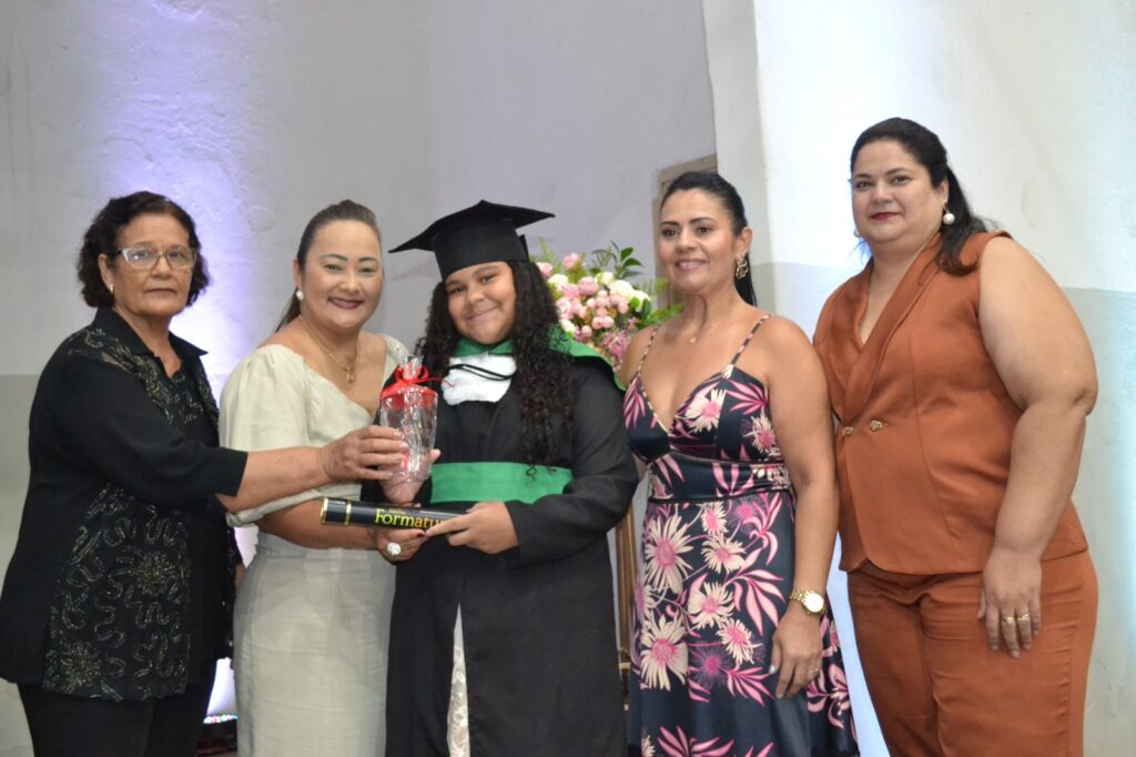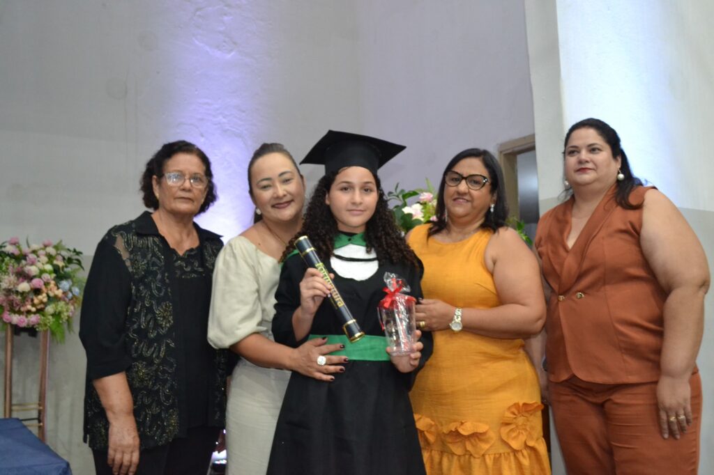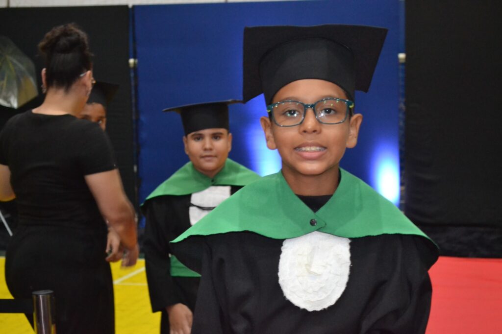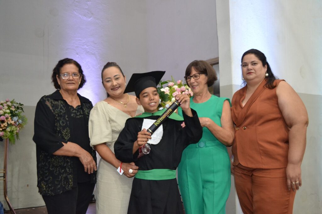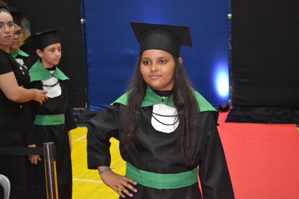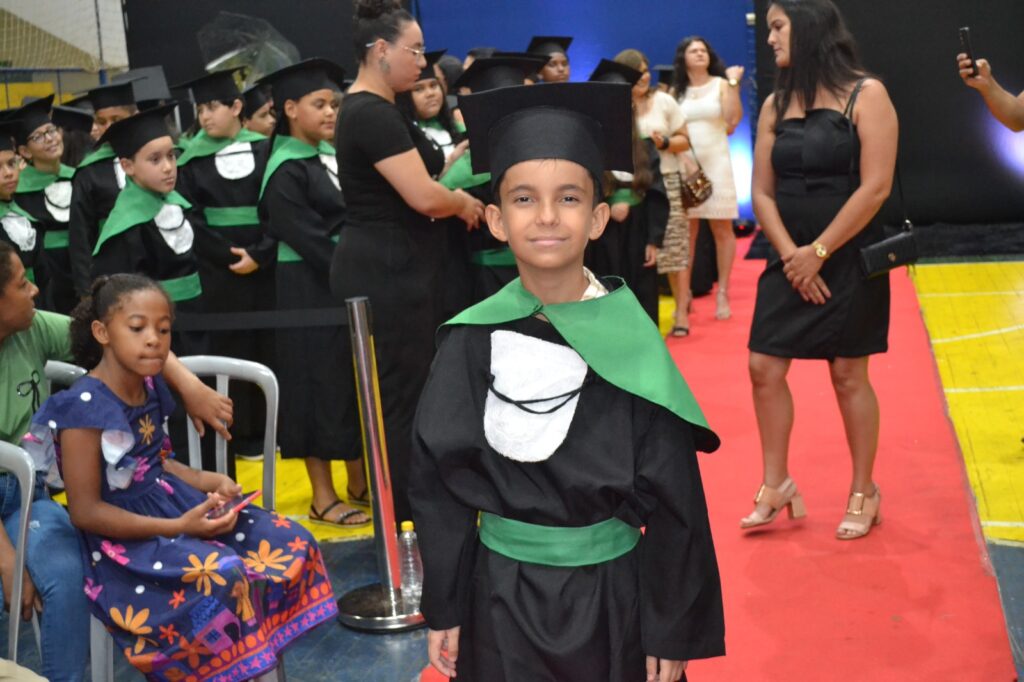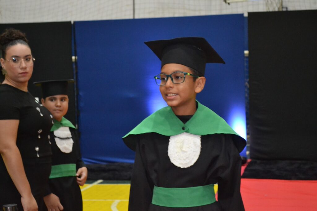 A solenidade reuniu os estudantes do 5º Ano da Escola Municipal Valeriano Rodrigues da Silva, da Creche Escola CEMEI Durval Ribeiro e da Escola de Campeões, além dos formandos do EJA – Educação de Jovens e Adultos, que também celebraram a conclusão de mais uma etapa importante em sua trajetória educacional.