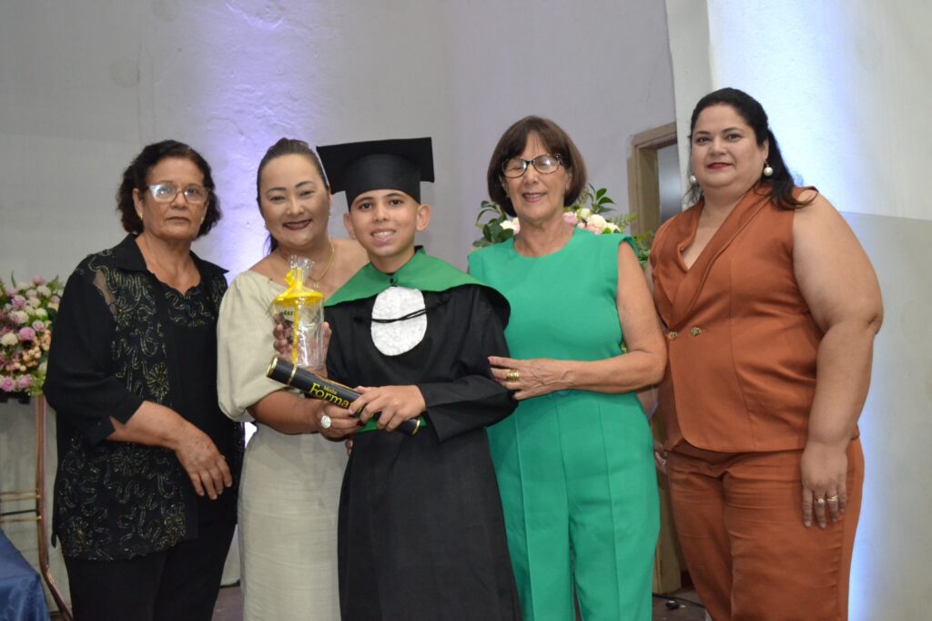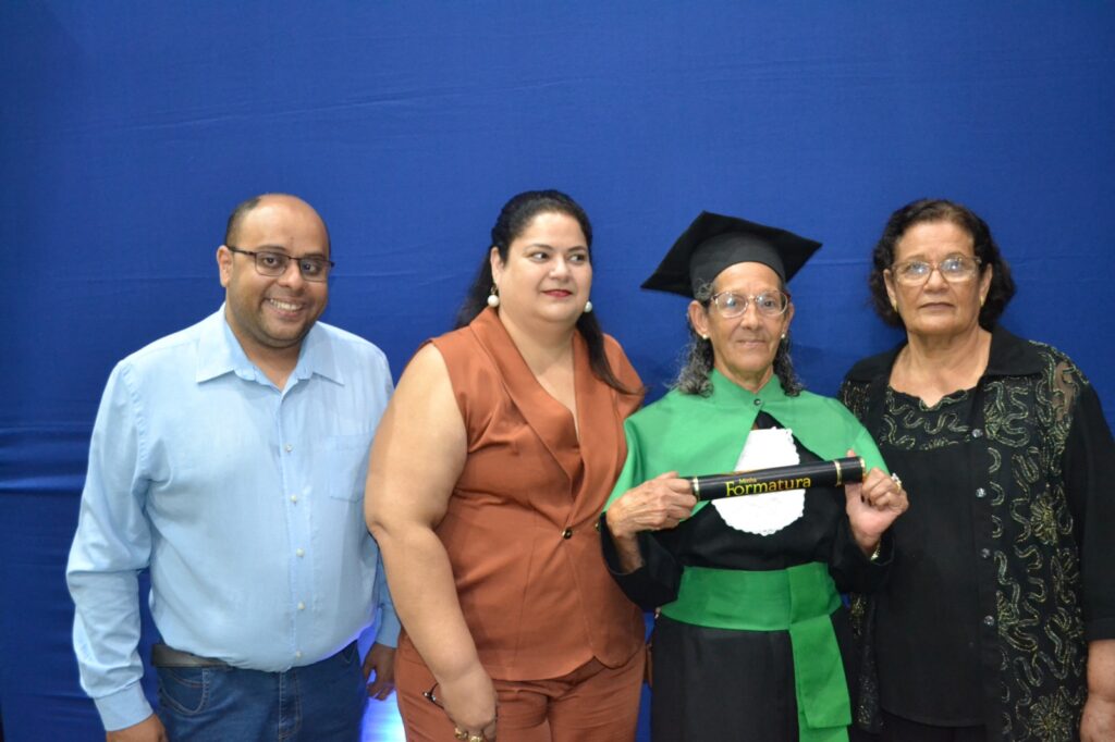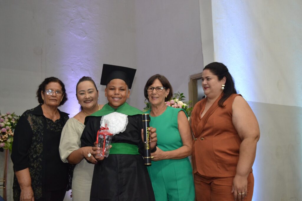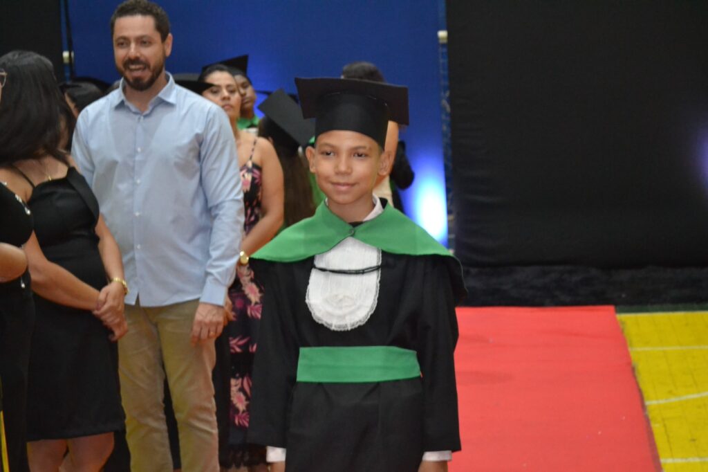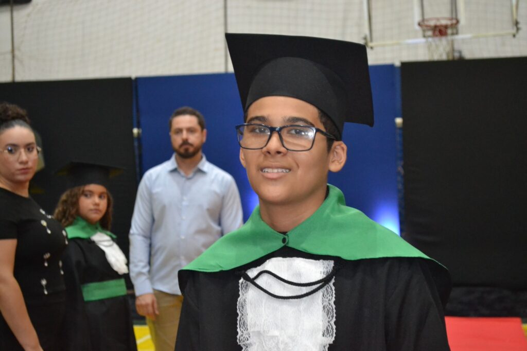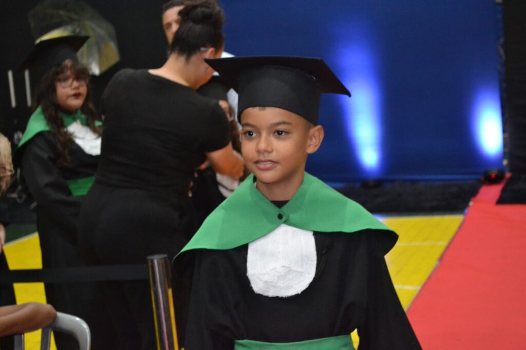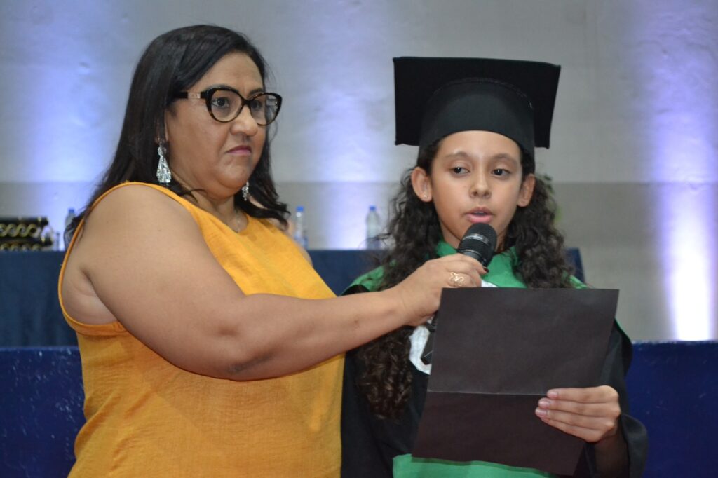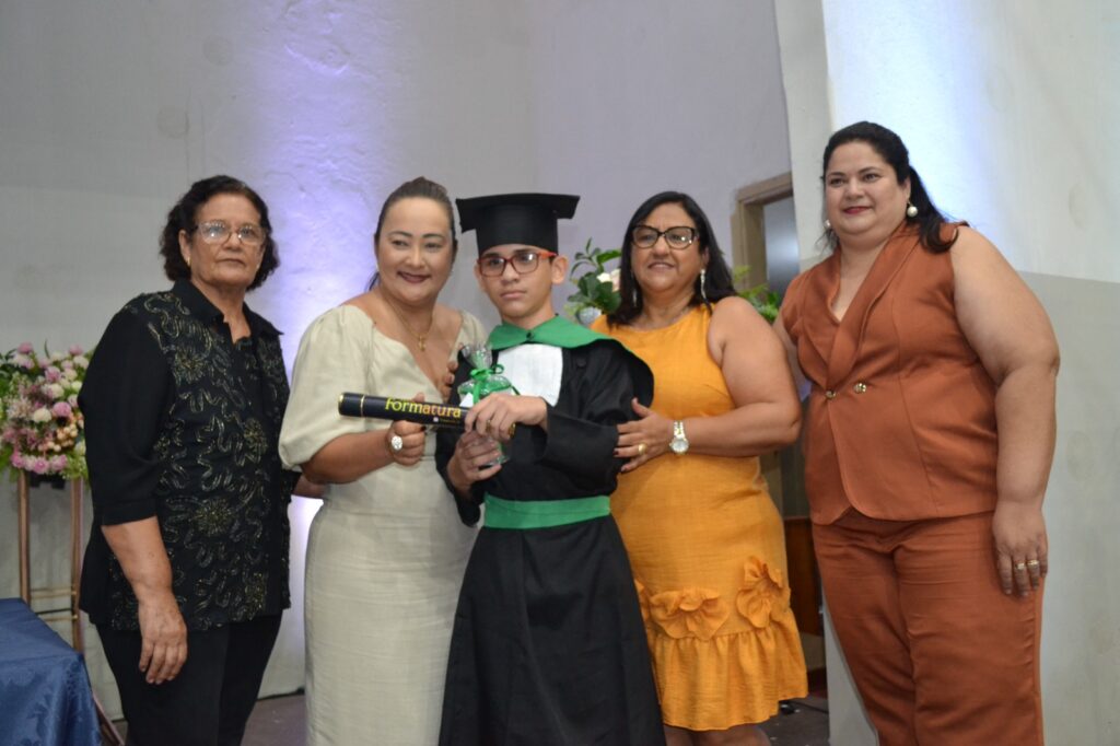 A solenidade reuniu os estudantes do 5º Ano da Escola Municipal Valeriano Rodrigues da Silva, da Creche Escola CEMEI Durval Ribeiro e da Escola de Campeões, além dos formandos do EJA – Educação de Jovens e Adultos, que também celebraram a conclusão de mais uma etapa importante em sua trajetória educacional.