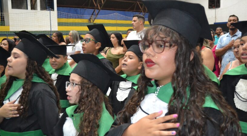 A solenidade reuniu os estudantes do 5º Ano da Escola Municipal Valeriano Rodrigues da Silva, da Creche Escola CEMEI Durval Ribeiro e da Escola de Campeões, além dos formandos do EJA – Educação de Jovens e Adultos, que também celebraram a conclusão de mais uma etapa importante em sua trajetória educacional.