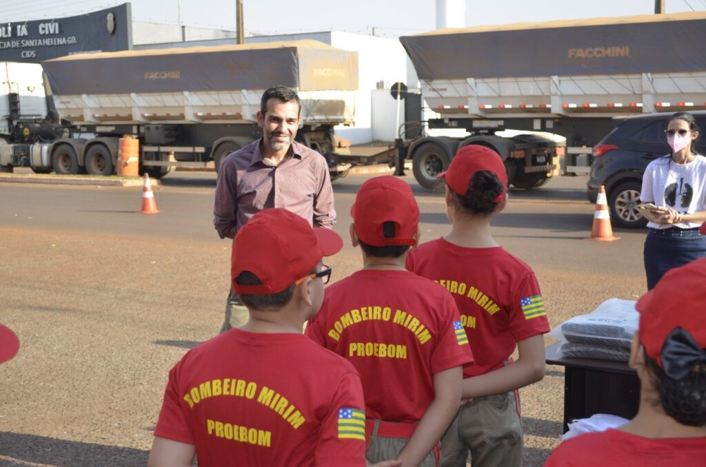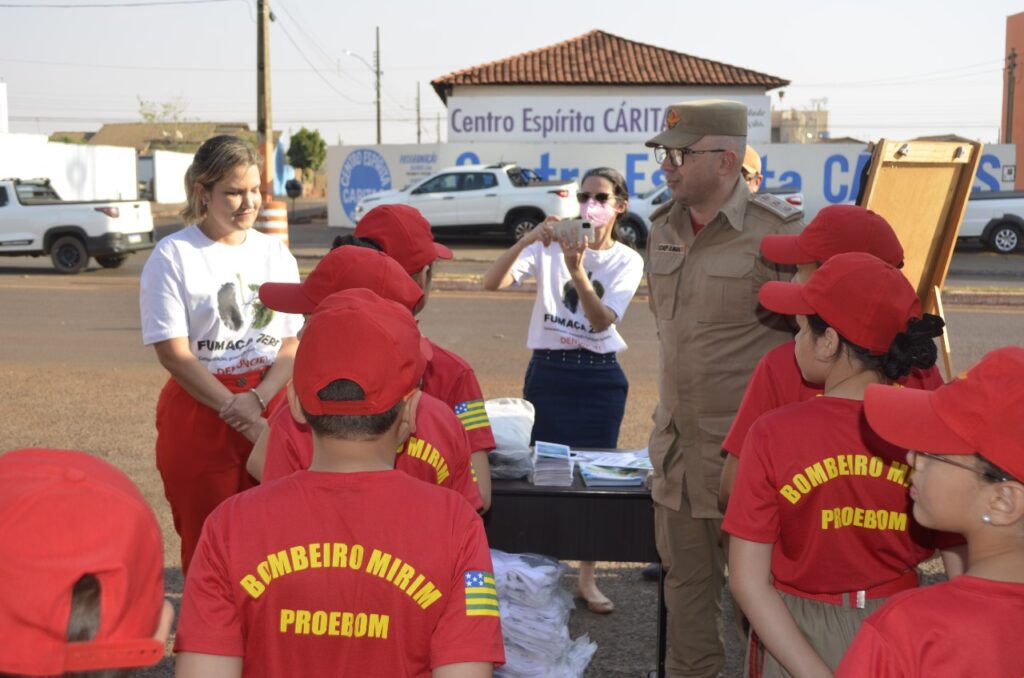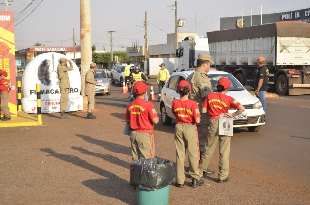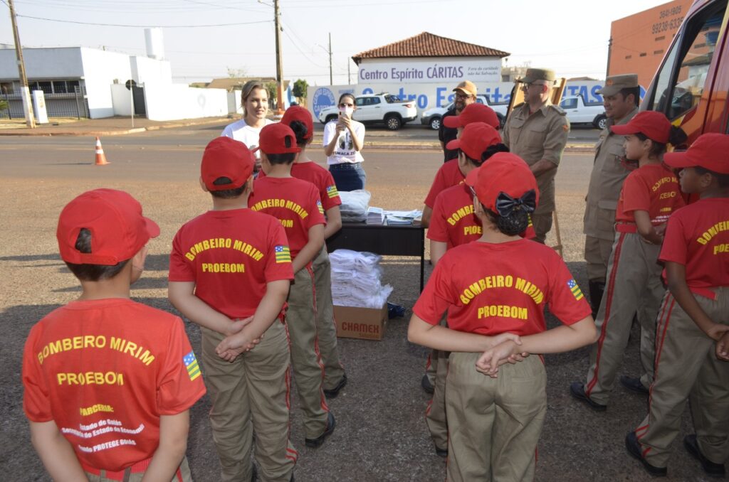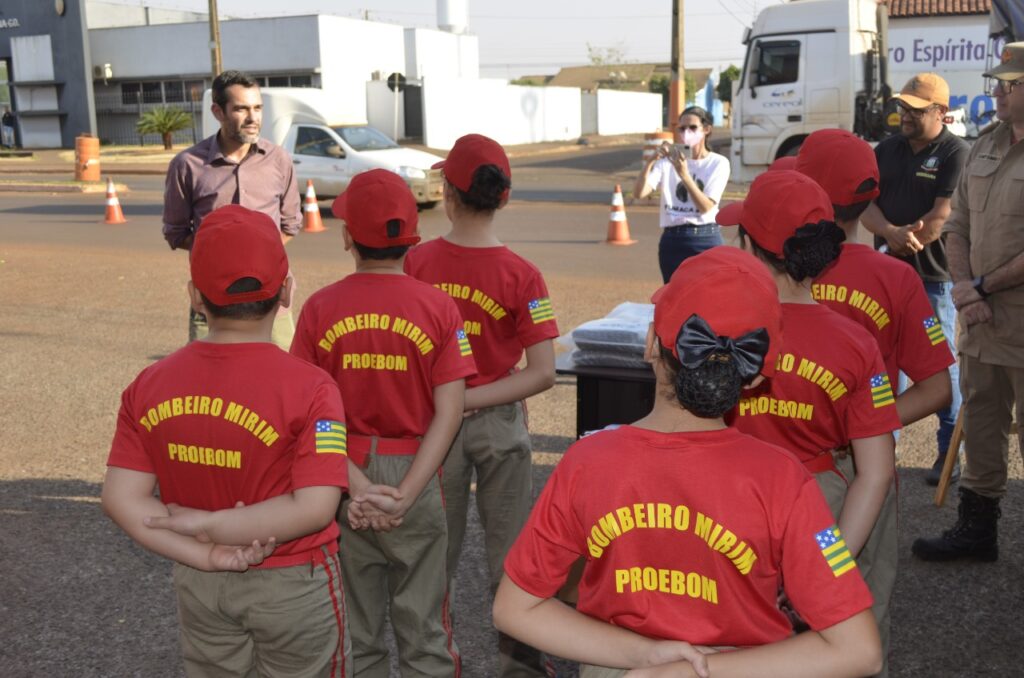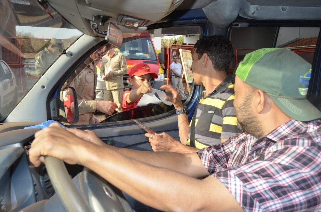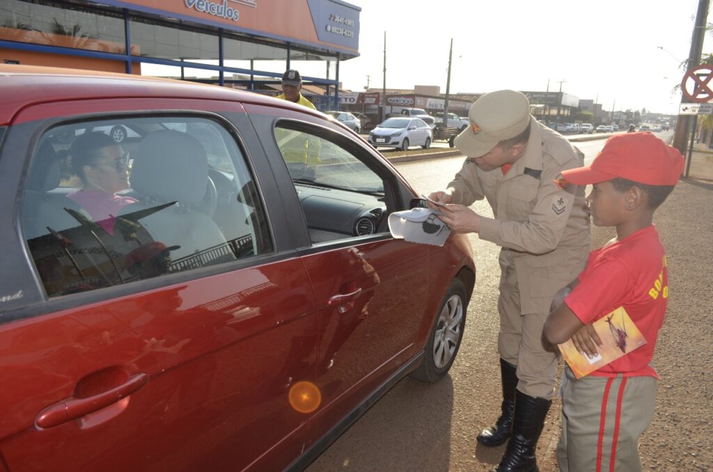 Os alunos do Projeto Bombeiro Mirim, sobre a instrução do seu comandante, distribuíram adesivos e panfleto de conscientização aos veículos que passaram em frente ao Quartel do Bombeiro Militar de Santa Helena, o intuito principal dessa ação é mostrar para a população que cada cidadão por fazer sua parte não colocando foto e principalmente denunciando através dos números 127 ou 64 99979-0701.