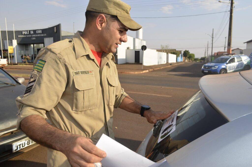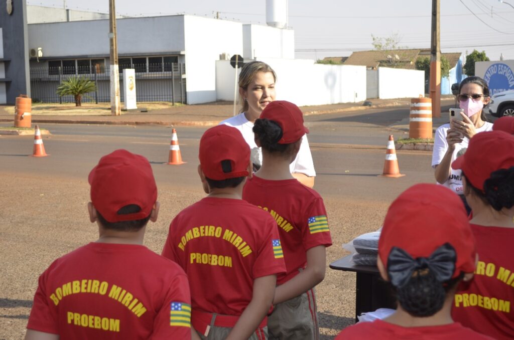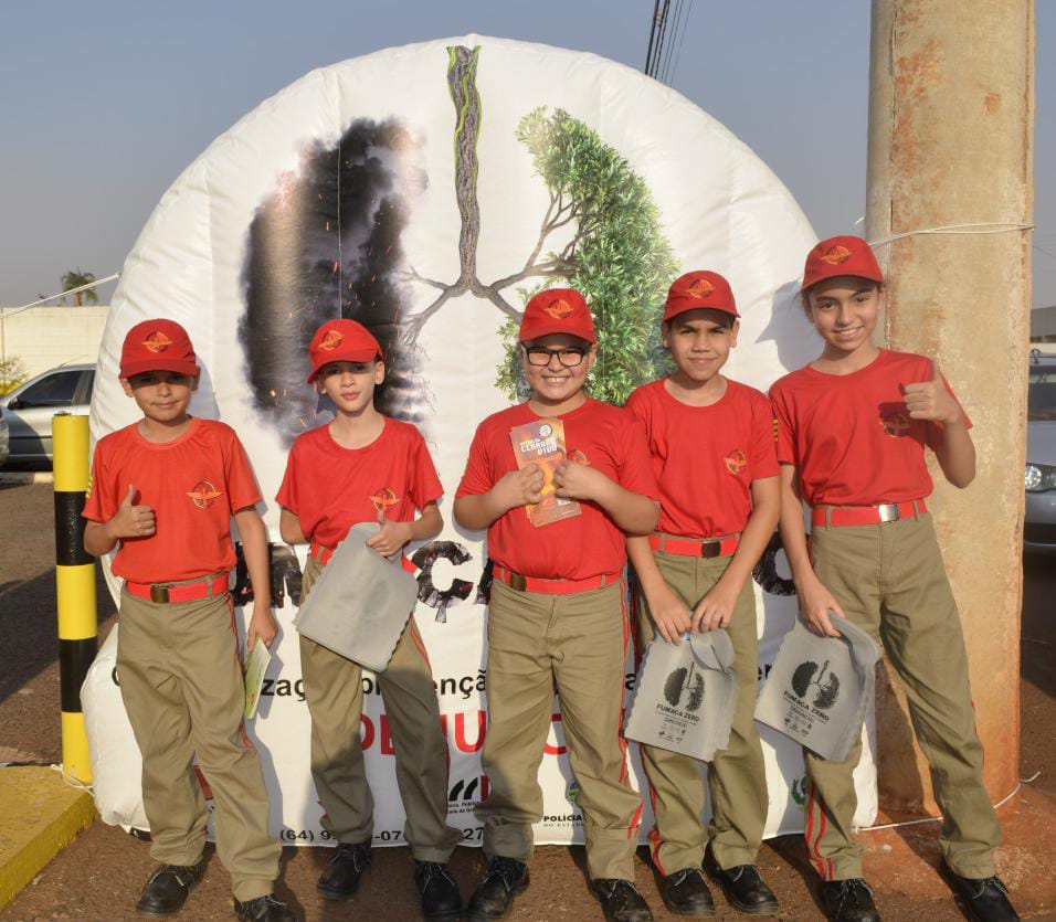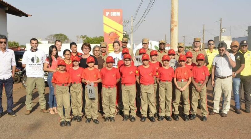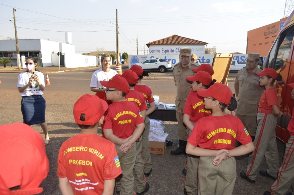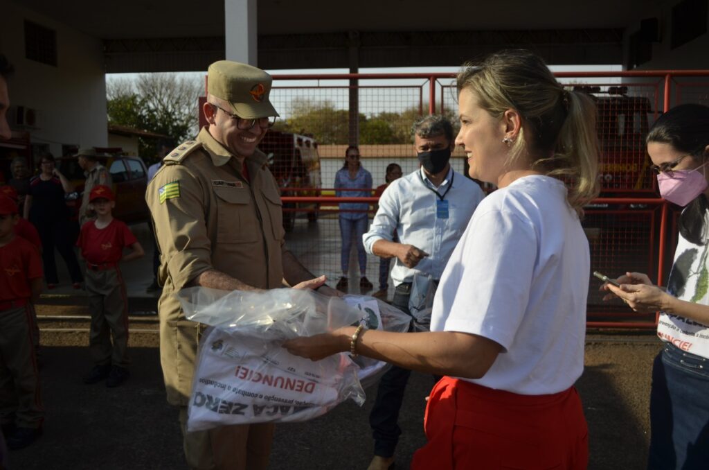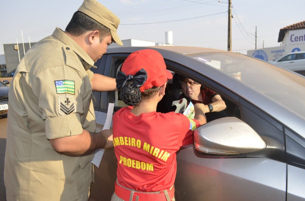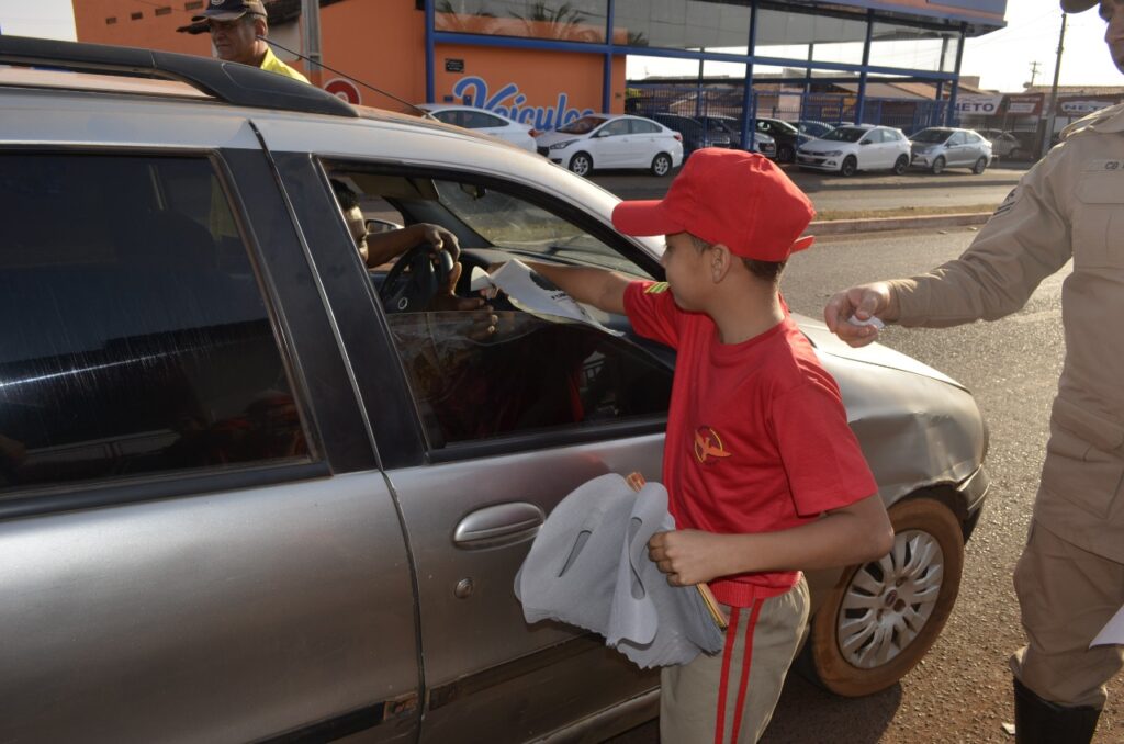 Os alunos do Projeto Bombeiro Mirim, sobre a instrução do seu comandante, distribuíram adesivos e panfleto de conscientização aos veículos que passaram em frente ao Quartel do Bombeiro Militar de Santa Helena, o intuito principal dessa ação é mostrar para a população que cada cidadão por fazer sua parte não colocando foto e principalmente denunciando através dos números 127 ou 64 99979-0701.