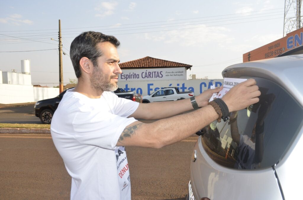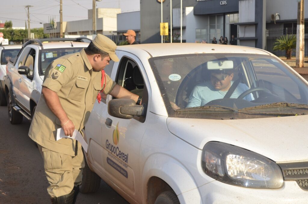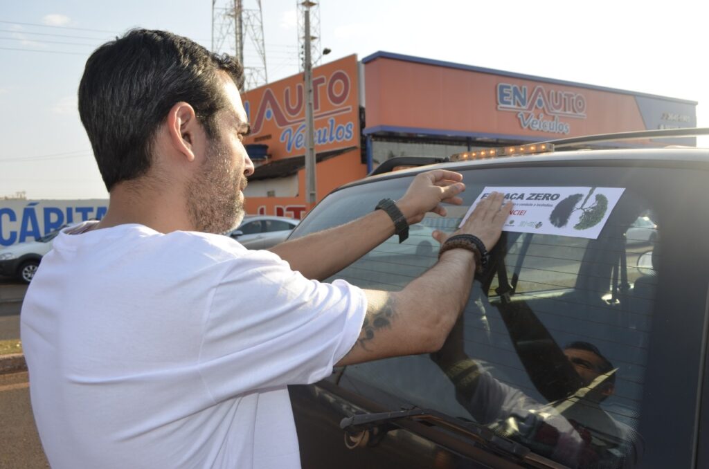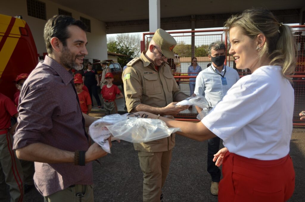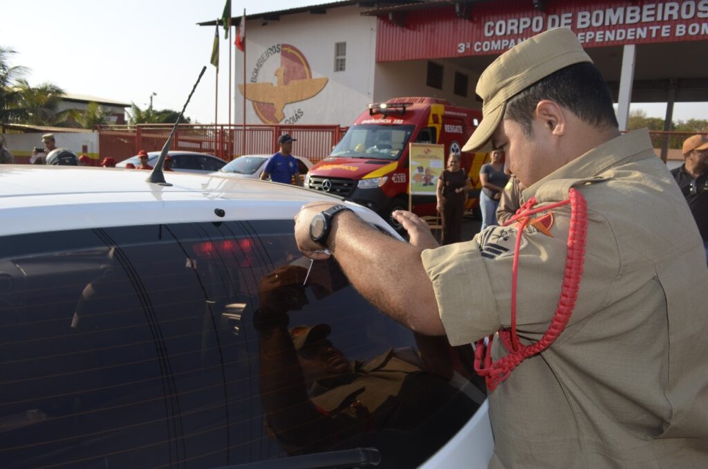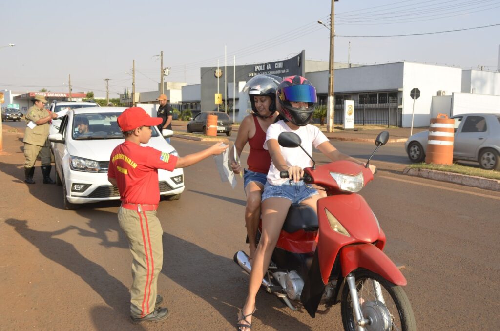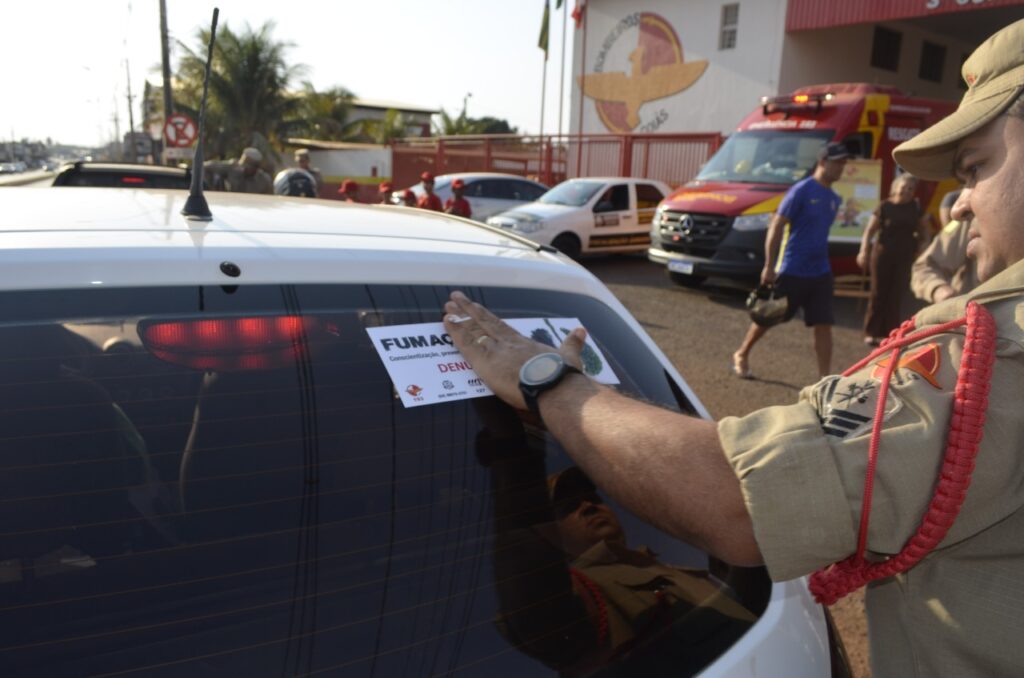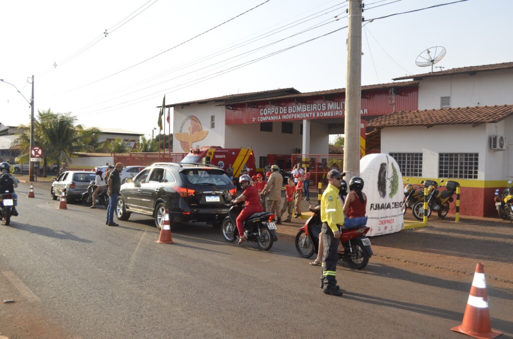 Os alunos do Projeto Bombeiro Mirim, sobre a instrução do seu comandante, distribuíram adesivos e panfleto de conscientização aos veículos que passaram em frente ao Quartel do Bombeiro Militar de Santa Helena, o intuito principal dessa ação é mostrar para a população que cada cidadão por fazer sua parte não colocando foto e principalmente denunciando através dos números 127 ou 64 99979-0701.
