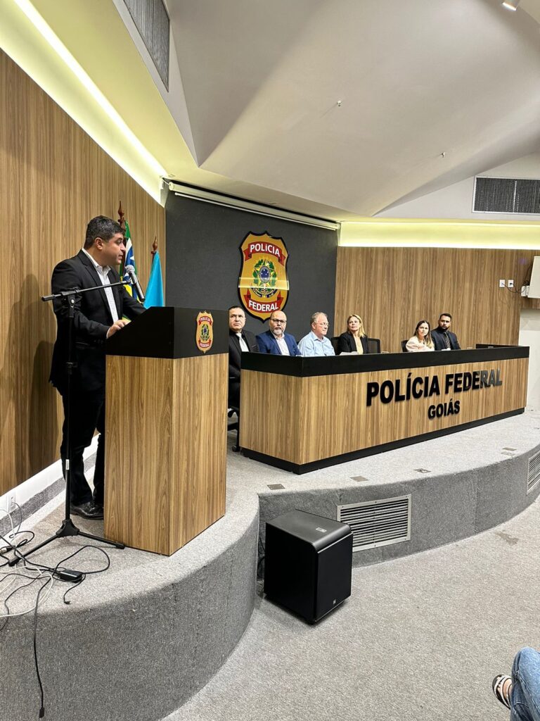 Nesta sexta-feira (08), em Goiânia, o prefeito de Santa Helena de Goiás, Dr. João Alberto, acompanhado pelo comandante da Guarda Civil Municipal, Subtenente Arlos José, e pela delegada Marcela Rodrigues, representante da Polícia Federal de Goiás, oficializou a assinatura do Acordo de Cooperação Técnica que assegura o porte de armas institucional para os agentes da GCM.