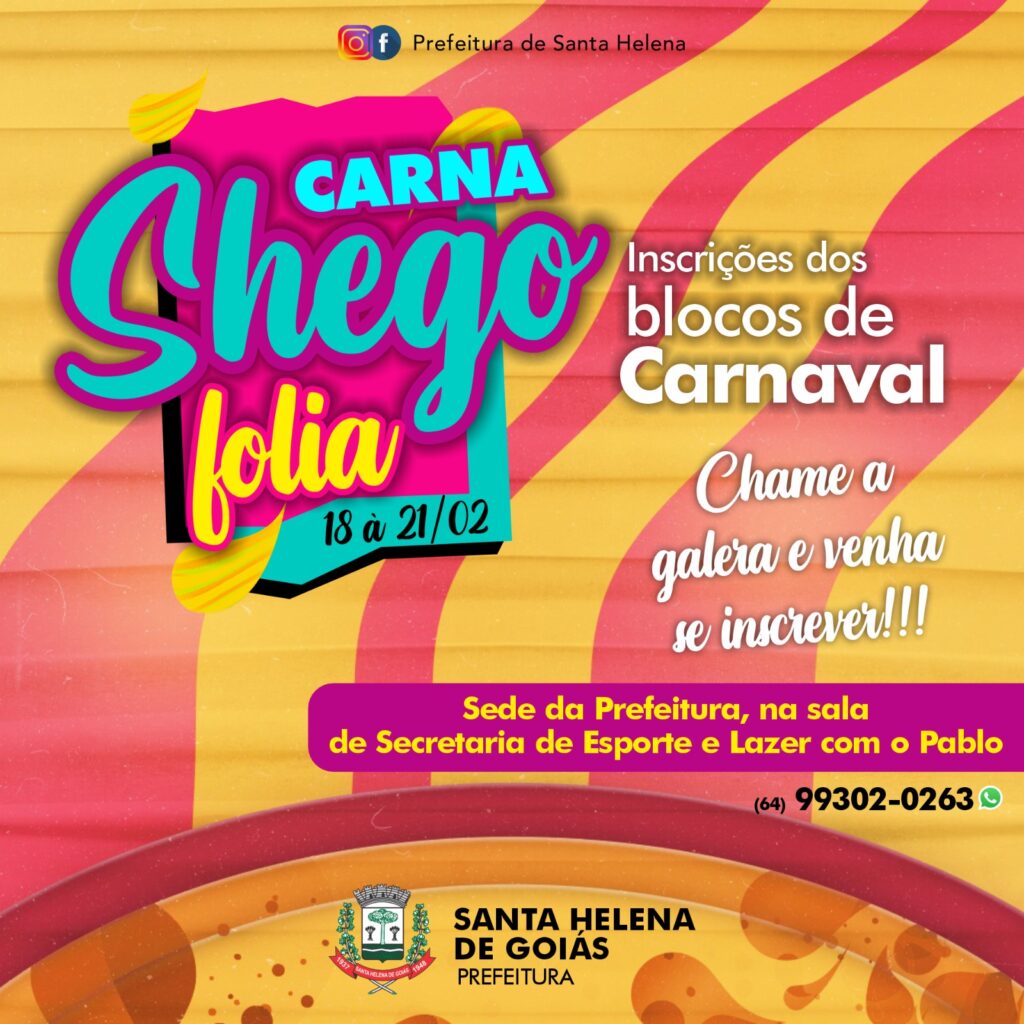 Nesta segunda-feira, dia 13/02, iniciam as inscrições para os blocos de carnaval, na sede da Prefeitura na sala da Secretaria de Esporte e Lazer com o Pablo.