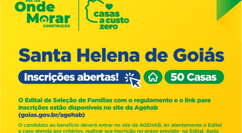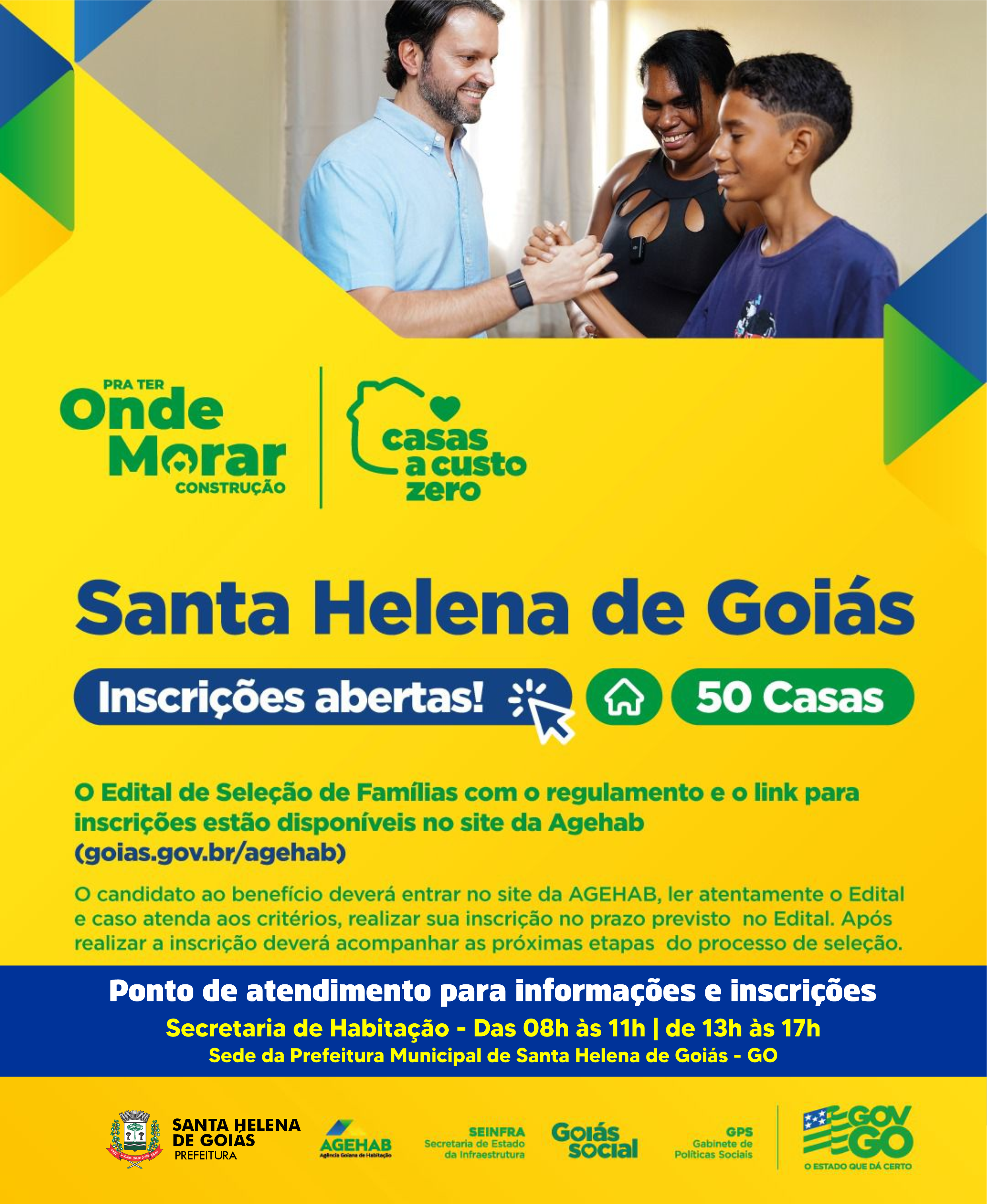 O Programa “Para Ter Onde Morar ” estará com as inscrições abertas em Santa Helena de Goiás, entre os dias 25 de março a 08 de abril de 2024!