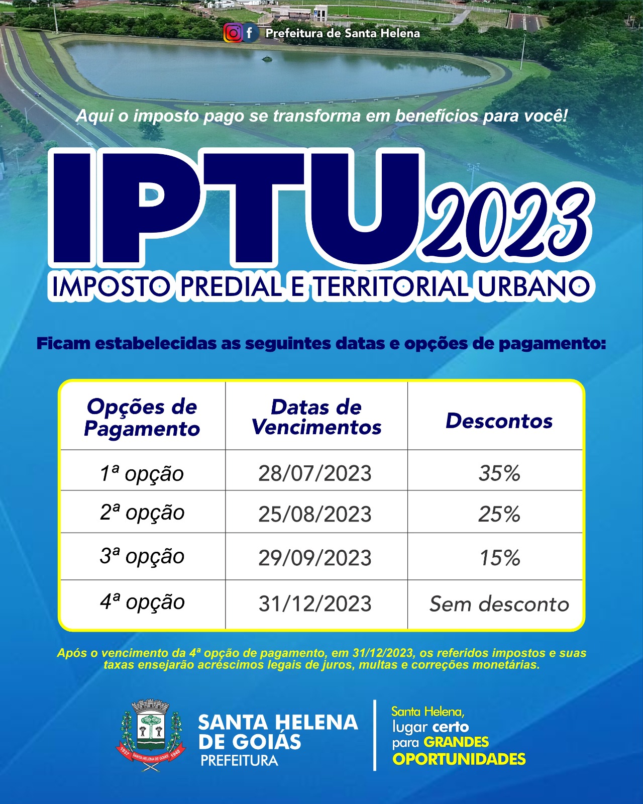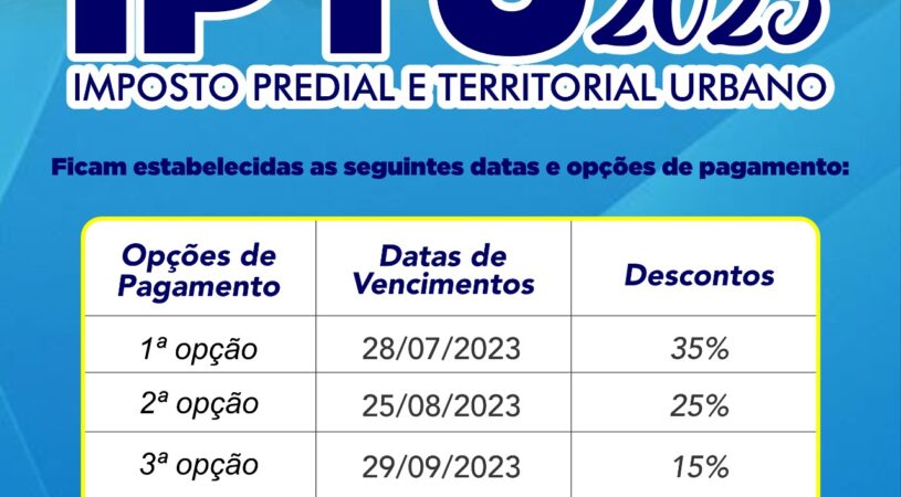 Não perca a chance de economizar! Com o pagamento do IPTU em dia, você garante até 35% de desconto e ainda contribui para o desenvolvimento da nossa cidade.