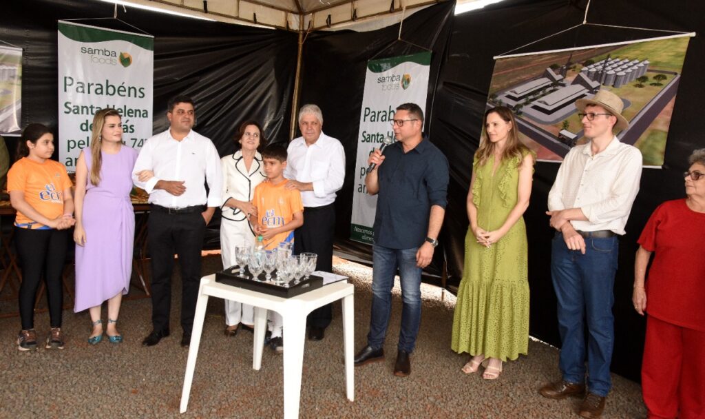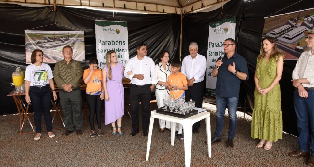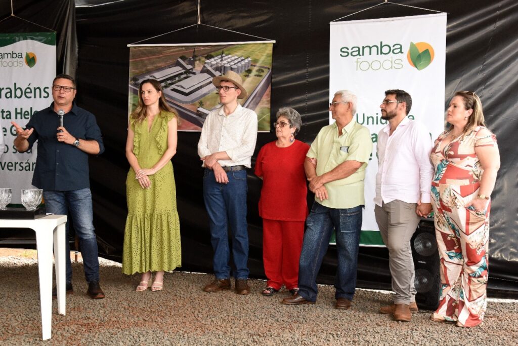 O Sócio Proprietário da Samba FOODS, senhor Paulo Aguiar disse da alegria em estar vindo para Santa Helena, que o investimento da empresa será cerca de 30 milhões e que terá capacidade de armazenar 450 mil sacas de grãos especiais (milho de pipoca, feijão, amendoim e outros)
