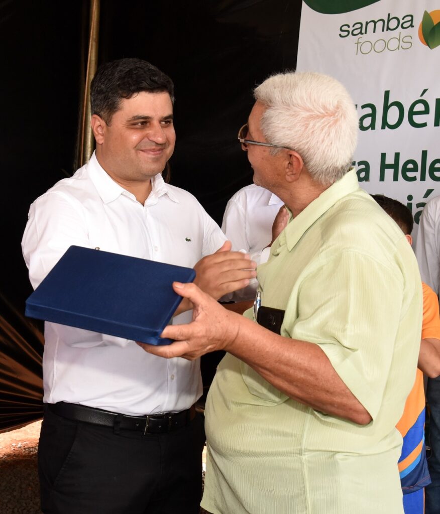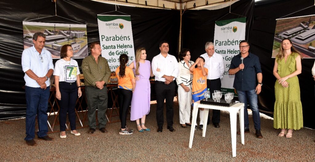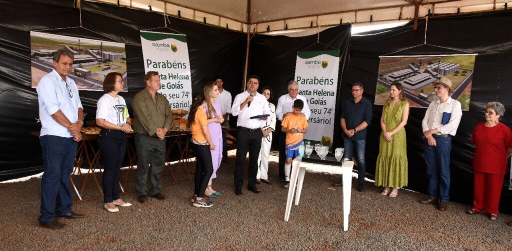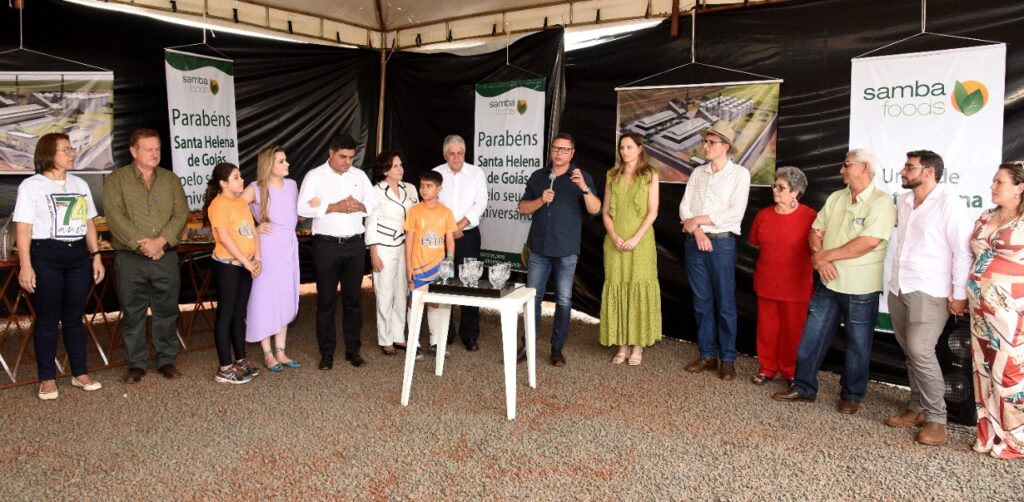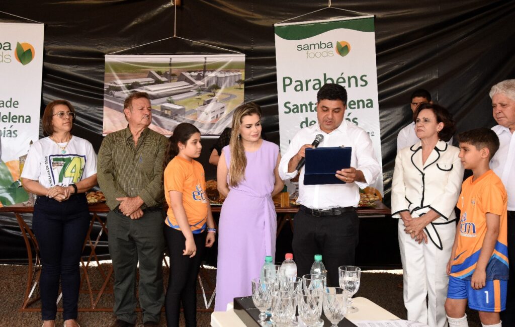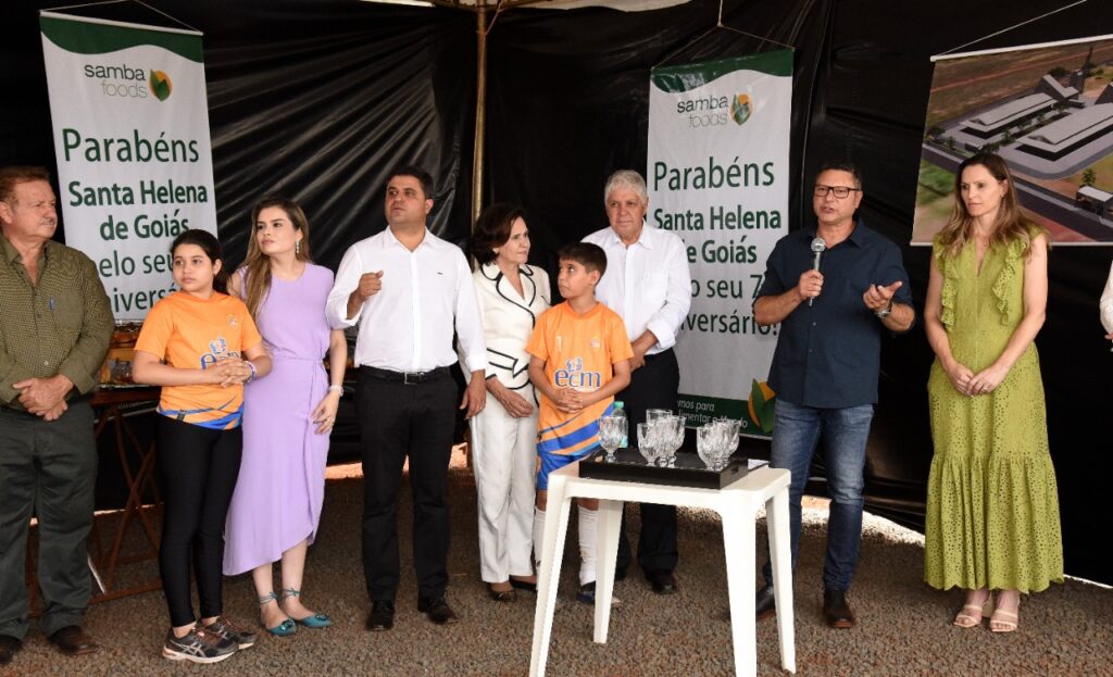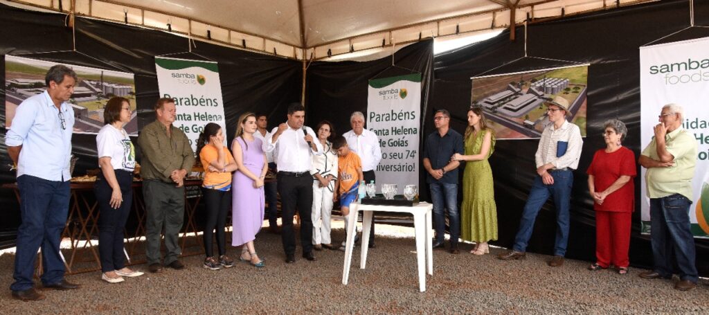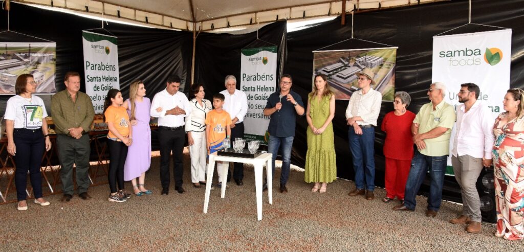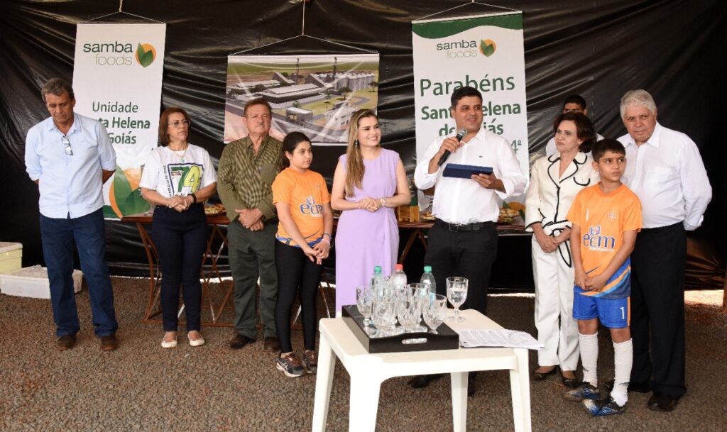 Participamos do lançamento da pedra fundamental de mais um empresa que virá para Santa Helena, se trata da SAMBA FOODS, que trabalha com safras especiais para atender demandas do mercado nacional e internacional. A matriz da empresa fica na cidade de Curitiba, mas já existem filiais no Mato Grosso do Sul e Ceará, agora no estado de Goiás em nossa querida Santa Helena.