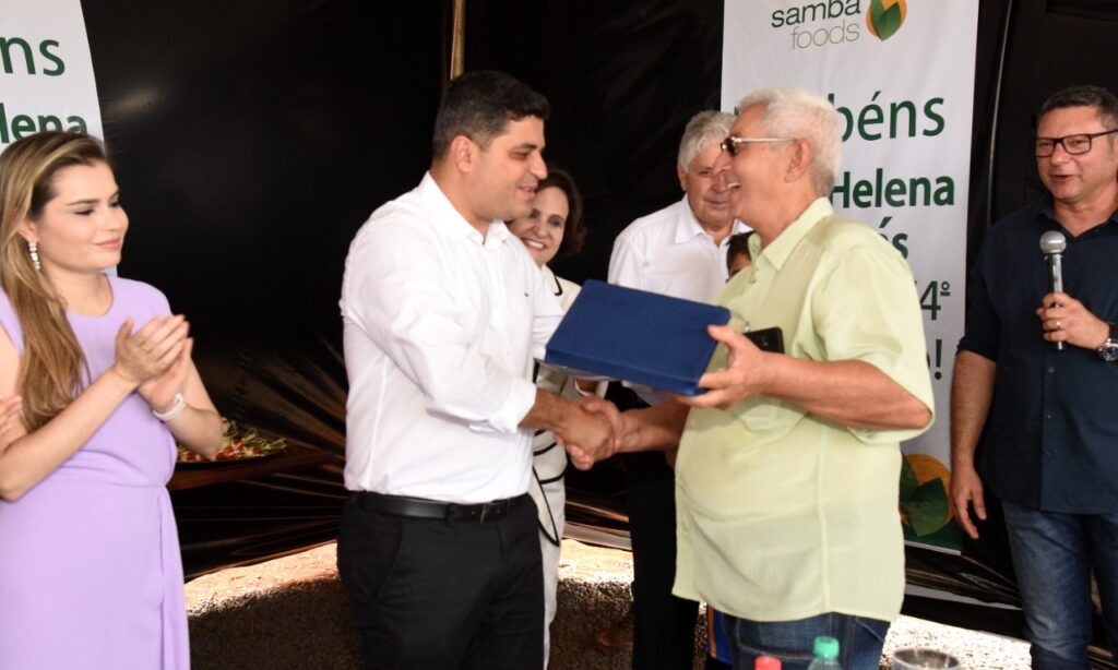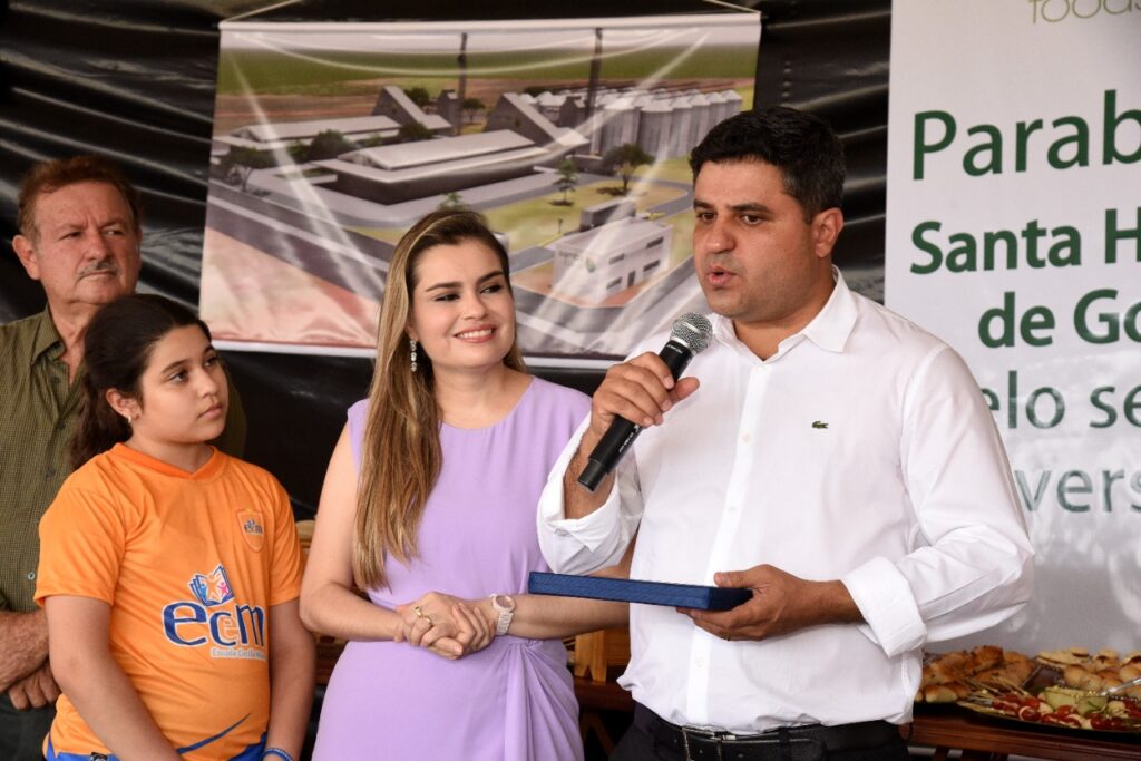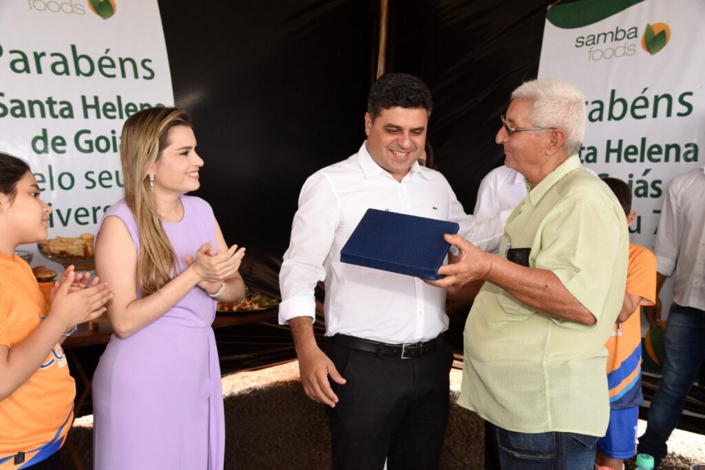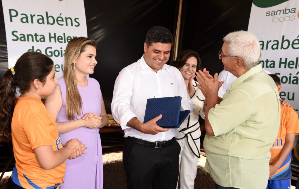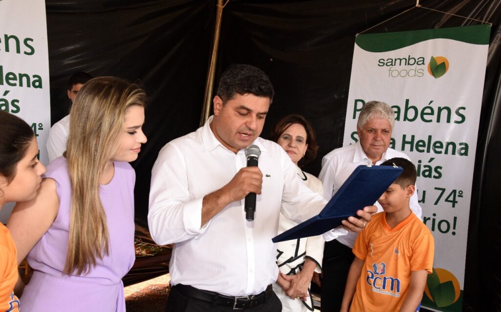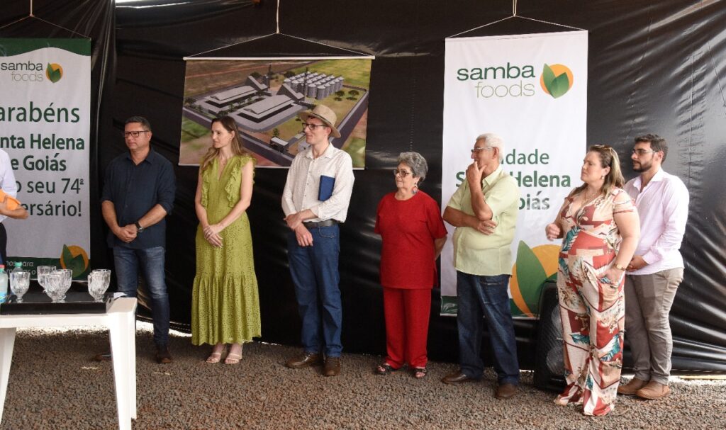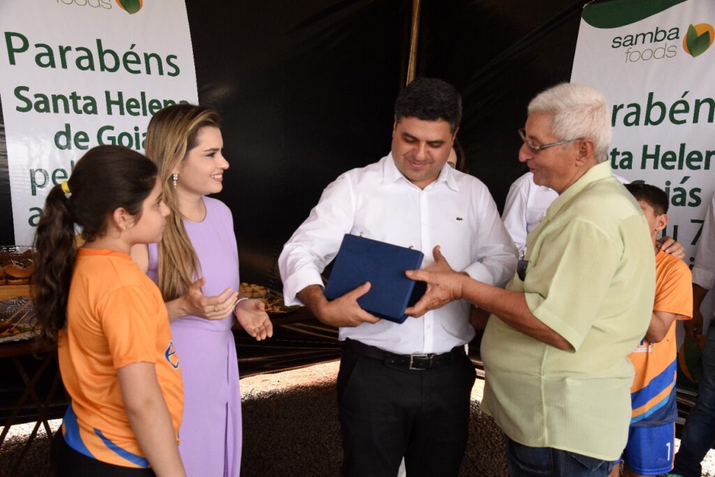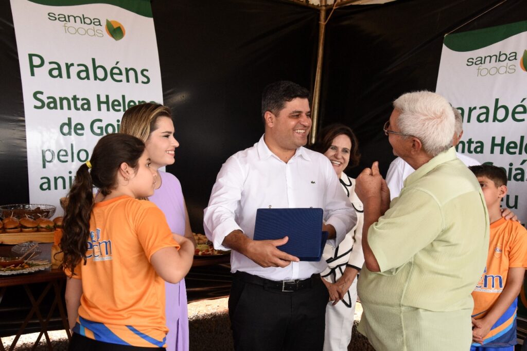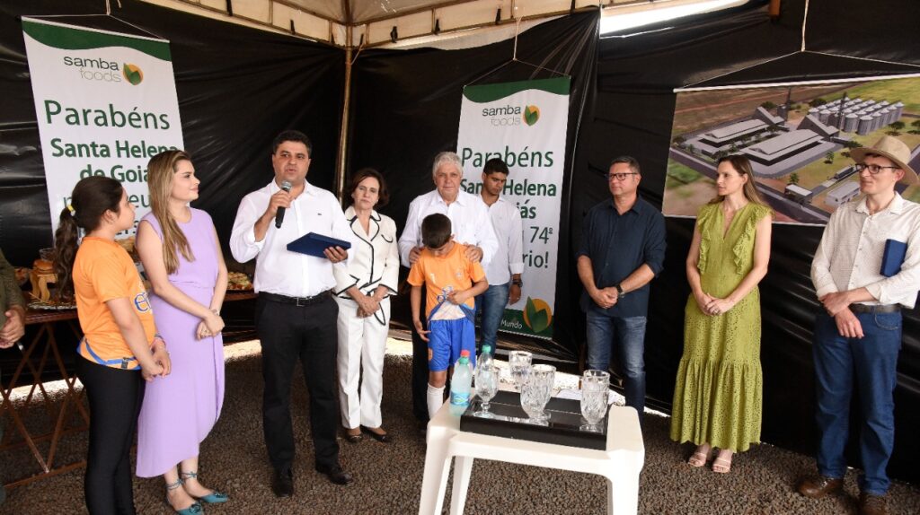 Participamos do lançamento da pedra fundamental de mais um empresa que virá para Santa Helena, se trata da SAMBA FOODS, que trabalha com safras especiais para atender demandas do mercado nacional e internacional. A matriz da empresa fica na cidade de Curitiba, mas já existem filiais no Mato Grosso do Sul e Ceará, agora no estado de Goiás em nossa querida Santa Helena.