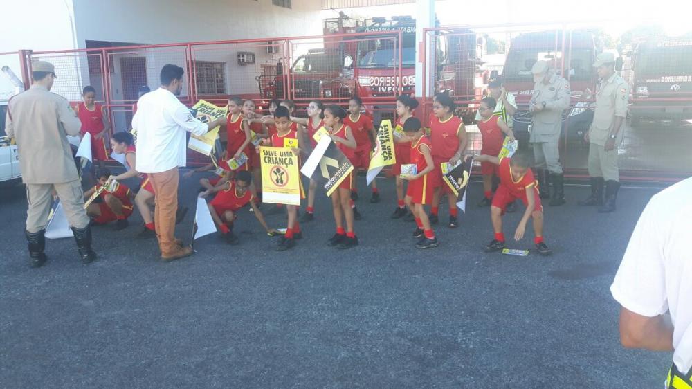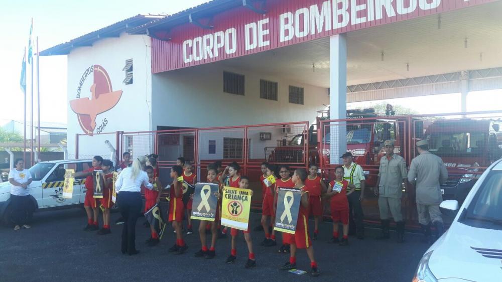Na parte da manhã de hoje (26), em parceria com Corpo de Bombeiros Militar de Goiás (CBMGO), foi realizado atividades educativas com as crianças que fazem parte do Bombeiro Mirim e nas imediações do batalhão.