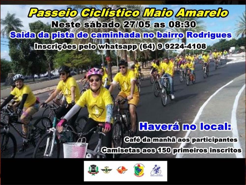 No dia 27/05, acontecerá um passeio ciclístico, na Pista de Caminhada. Participe!