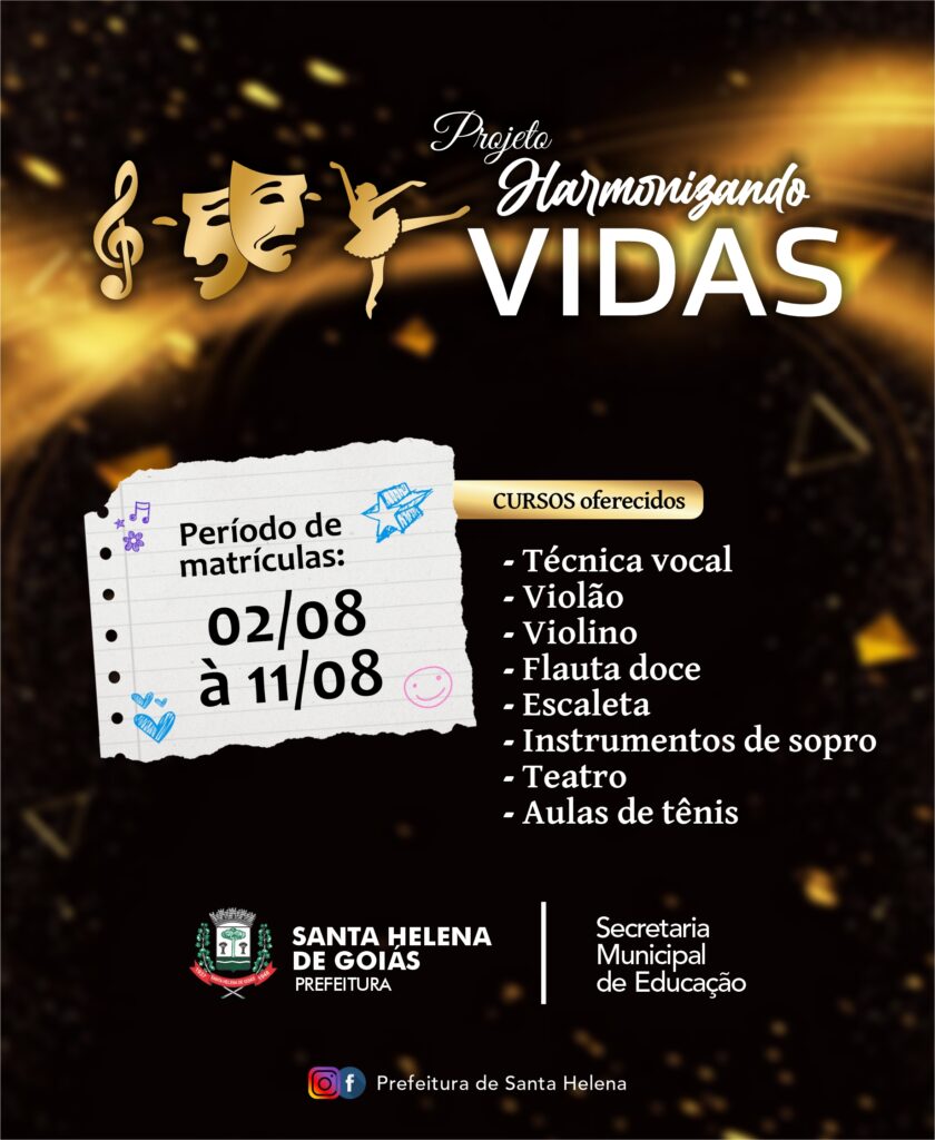 O Projeto Harmonizando Vidas, que já é referência em expandir a cultura em nosso município, está com as matrículas abertas!