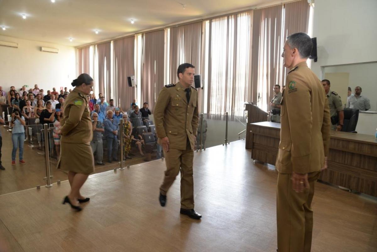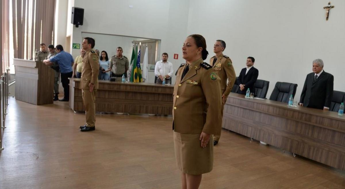 Em seguida, foi lido currículo com homenagem do Capitão Cleiber, que deixa o comando da 21ª CIPM e se deu inicio ao ato da passagem de comando, com lugares de destaque para os oficiais: comandante do 8º CRPM, Coronel Sanches, Cleiber e Major Jane Lúcia, a qual assume a 21ª CIPM. Seguido da leitura do currículo dessa última.
