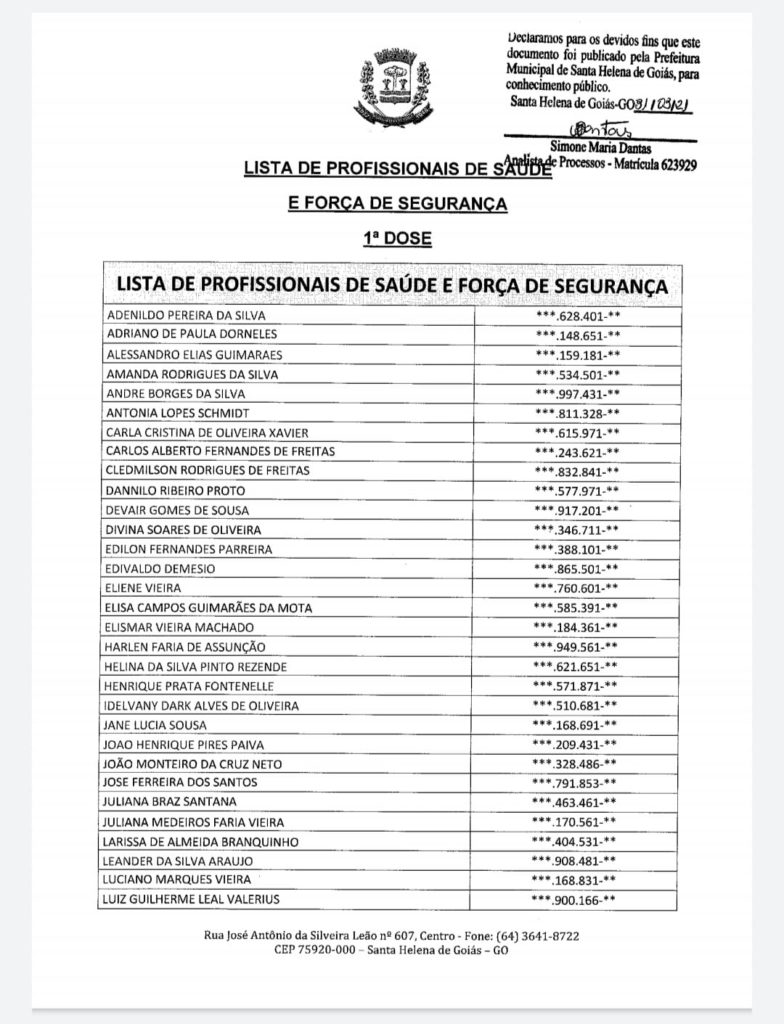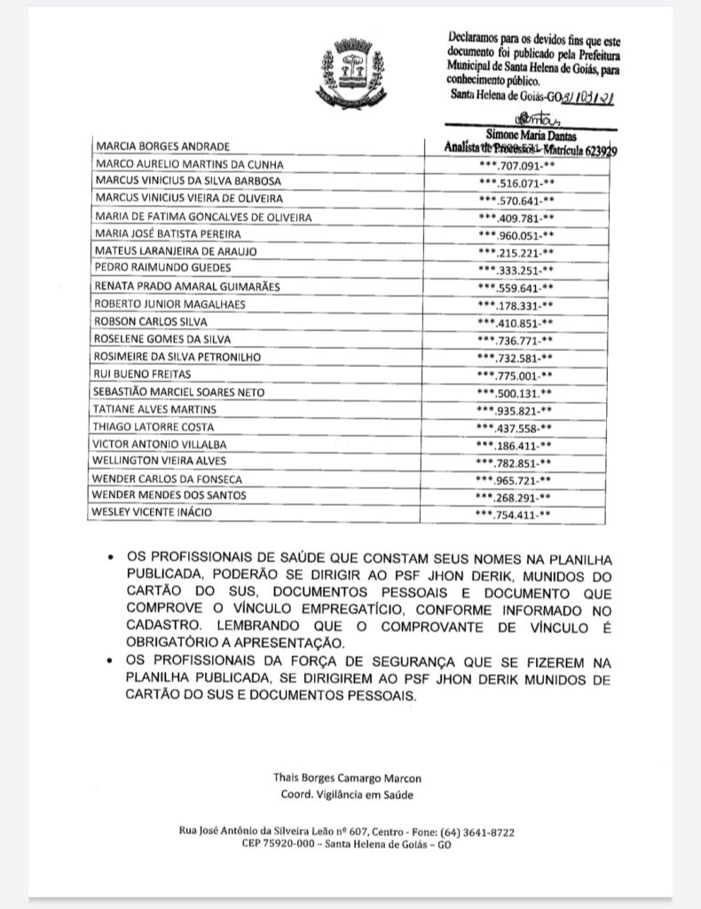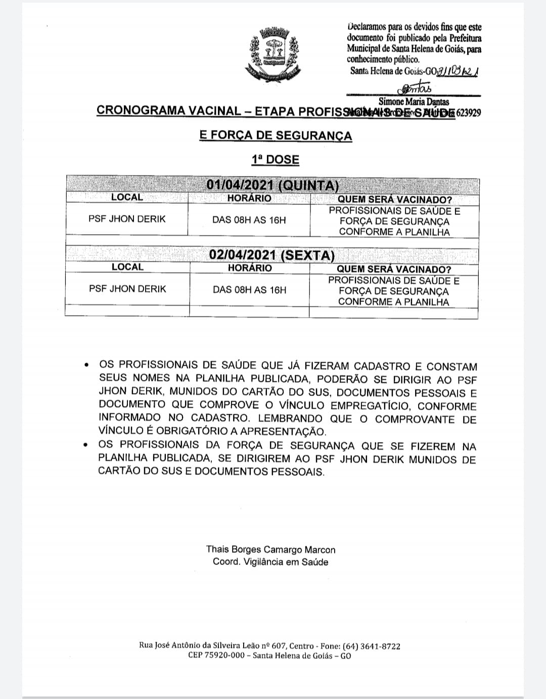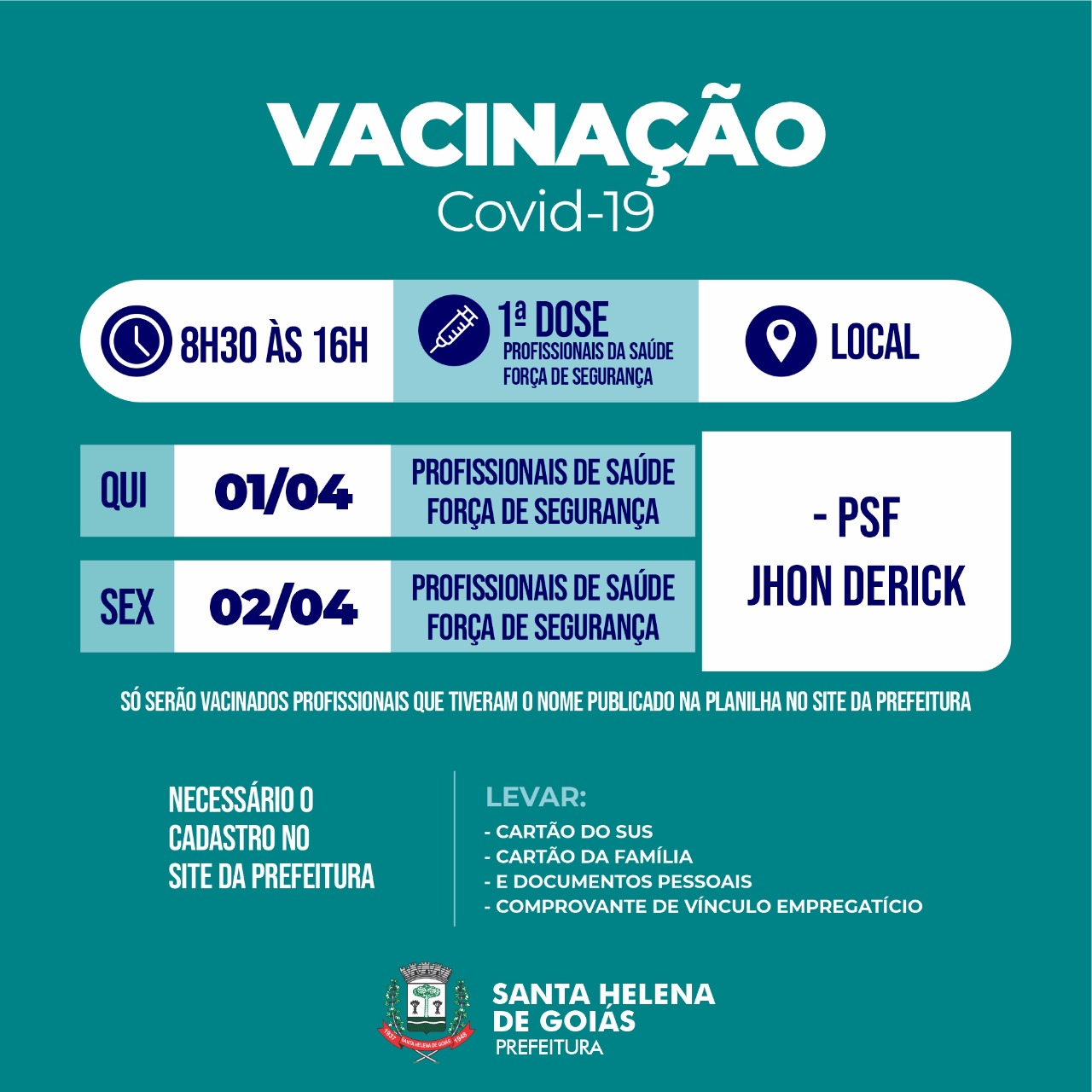 Chamamento dos profissionais de saúde da rede privada e Força de Segurança para vacinação na UBS Jhon Derick, nos dias 01 e 02 de Abril