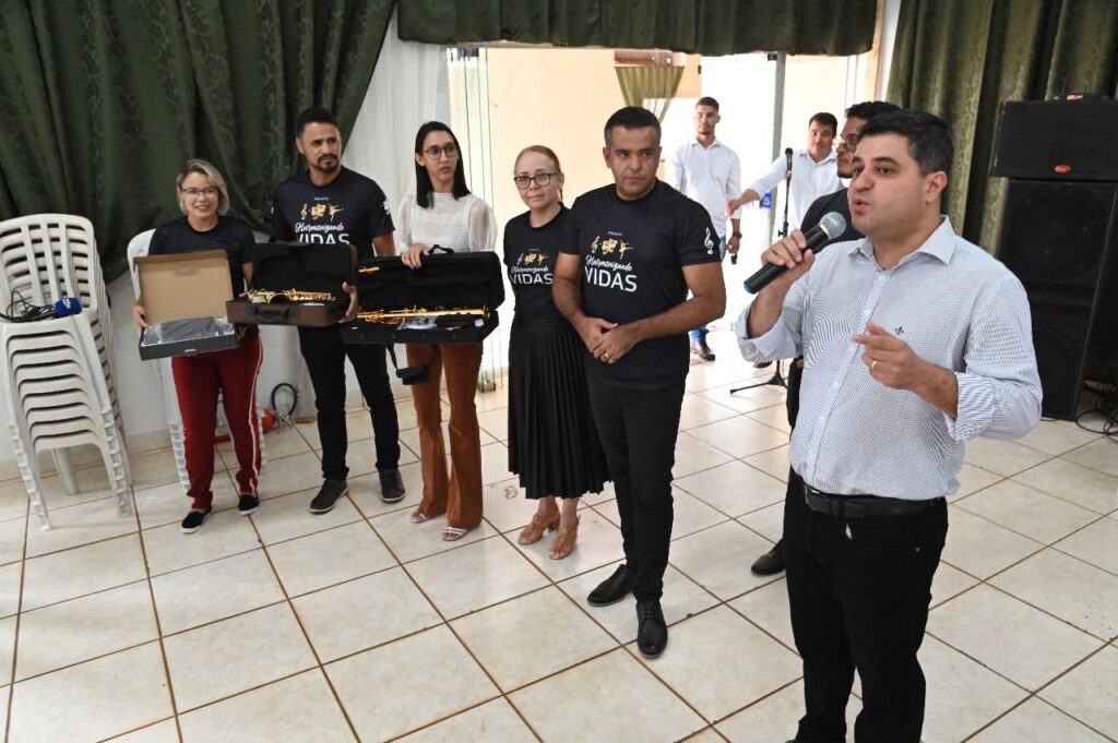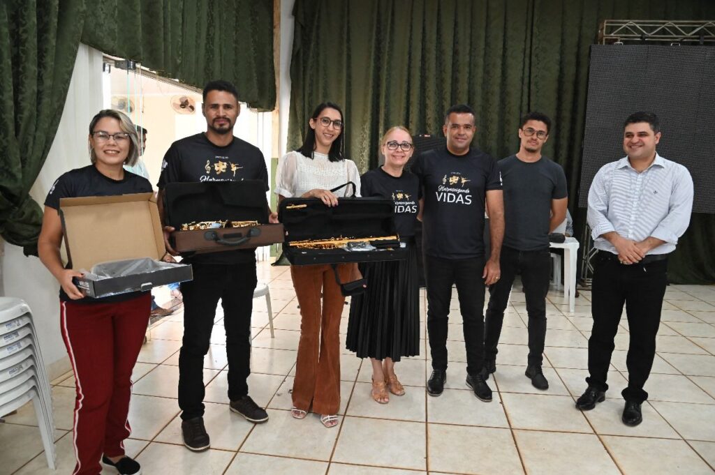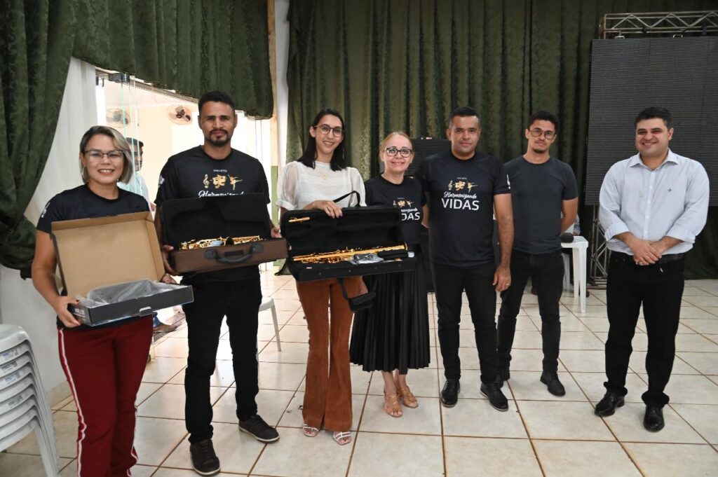 Santa Helena é referência em cultura em nosso Estado. Hoje (19), foram entregues diversos equipamentos musicais para as aulas de música e teatro, desenvolvidos por meio do projeto Harmonizando Vidas da nossa Prefeitura. Agora, as aulas contarão com 3 saxofones altos, 3 saxofones sopranos, 3 saxofones tenores, 1 trombone, 4 pandeiros meia lua, 1 violão clássico, 8 microfones headset, 10 microfones sem fio, 1 teclado e 1 viola elétrica, todos adquiridos com recursos próprios.