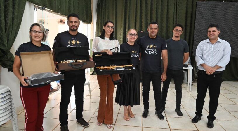 Santa Helena é referência em cultura em nosso Estado. Hoje (19), foram entregues diversos equipamentos musicais para as aulas de música e teatro, desenvolvidos por meio do projeto Harmonizando Vidas da nossa Prefeitura. Agora, as aulas contarão com 3 saxofones altos, 3 saxofones sopranos, 3 saxofones tenores, 1 trombone, 4 pandeiros meia lua, 1 violão clássico, 8 microfones headset, 10 microfones sem fio, 1 teclado e 1 viola elétrica, todos adquiridos com recursos próprios.