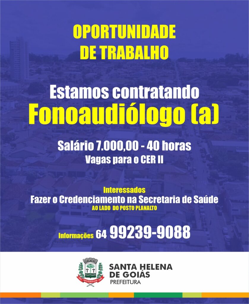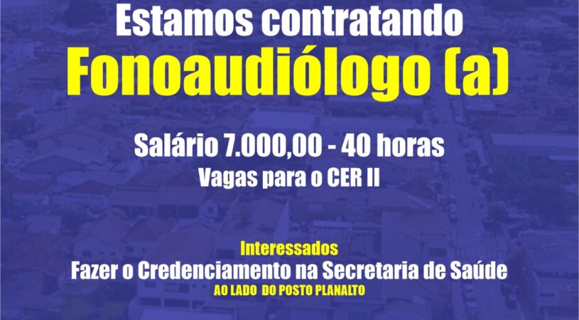 A vaga disponível é para atuar em projetos no CER II (Centro Especializado em Reabilitação II). Para se candidatar, é necessário fazer o credenciamento na Secretaria de Saúde do nosso município.