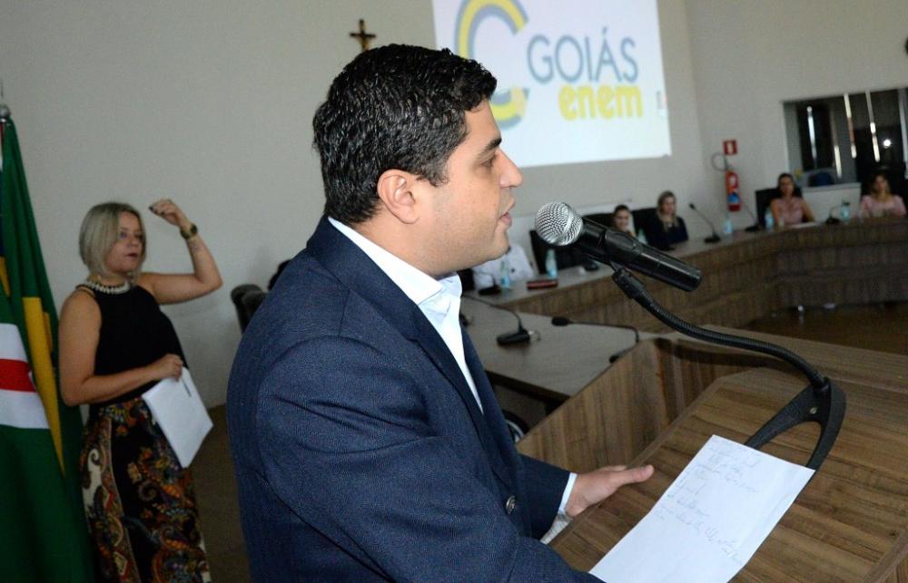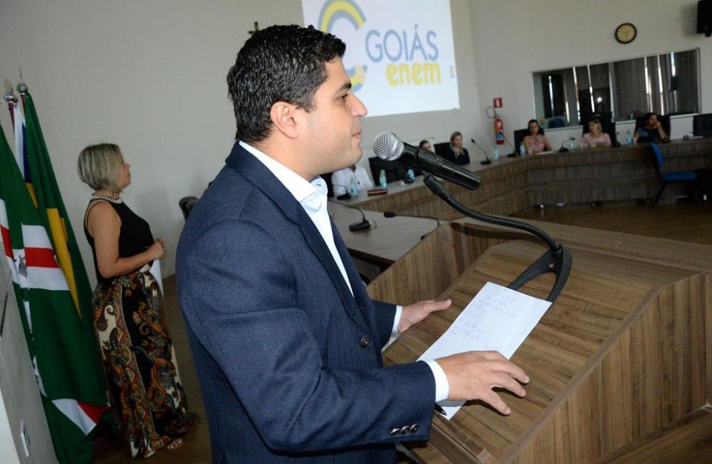 O Prefeito Municipal de Santa Helena de Goiás, Dr. João Alberto Vieira Rodrigues, ao lado de sua esposa, Primeira Dama e Secretária de Promoção Social, Drª Renata Araújo Asmar Rodrigues, do Presidente da Câmara de Vereadores, Gilmar Francisco de Sousa, Vice-Presidente, Francisco Dantas da Silva, participou no último sábado (01), da aula inaugural do Projeto Enem Goiás, no auditório da Câmara.