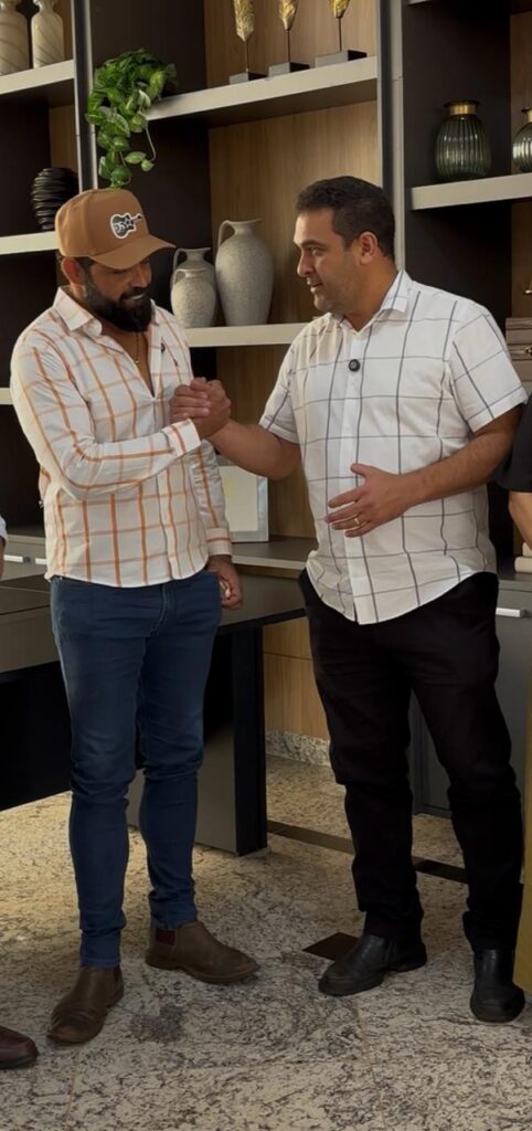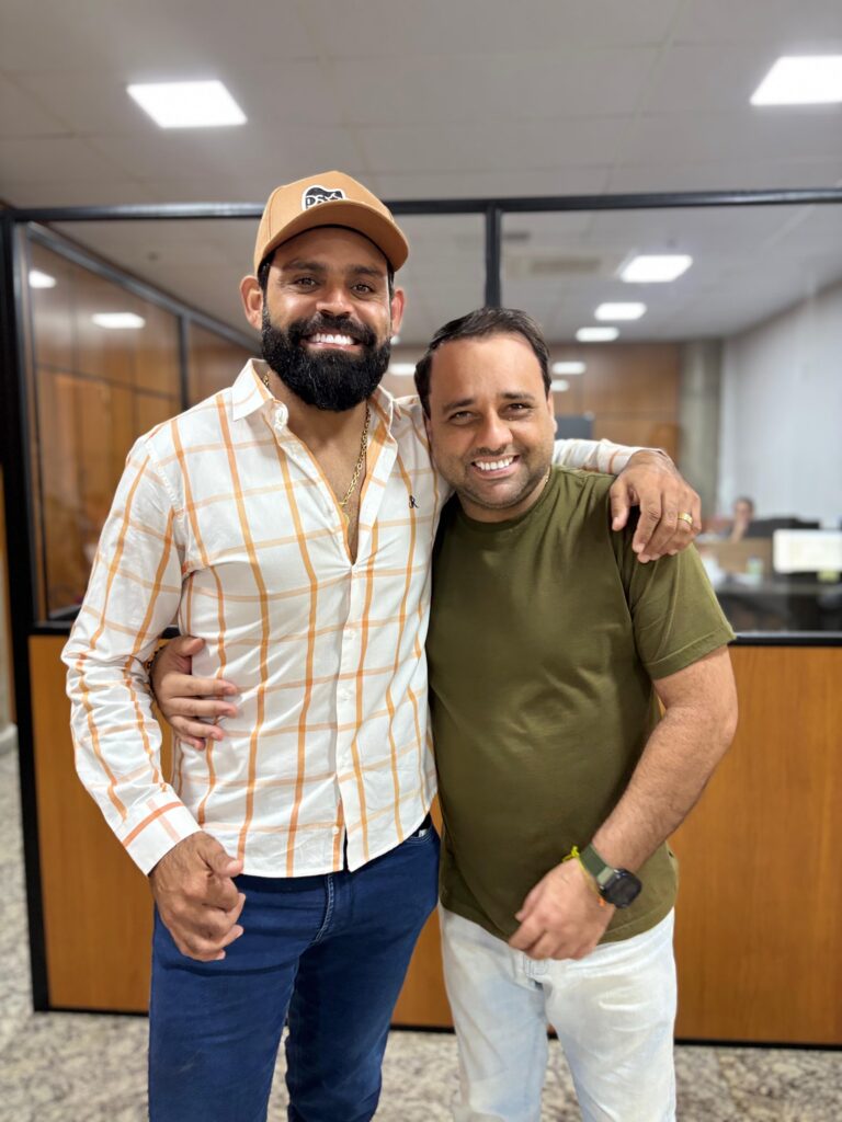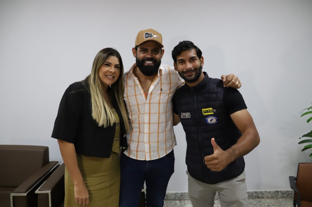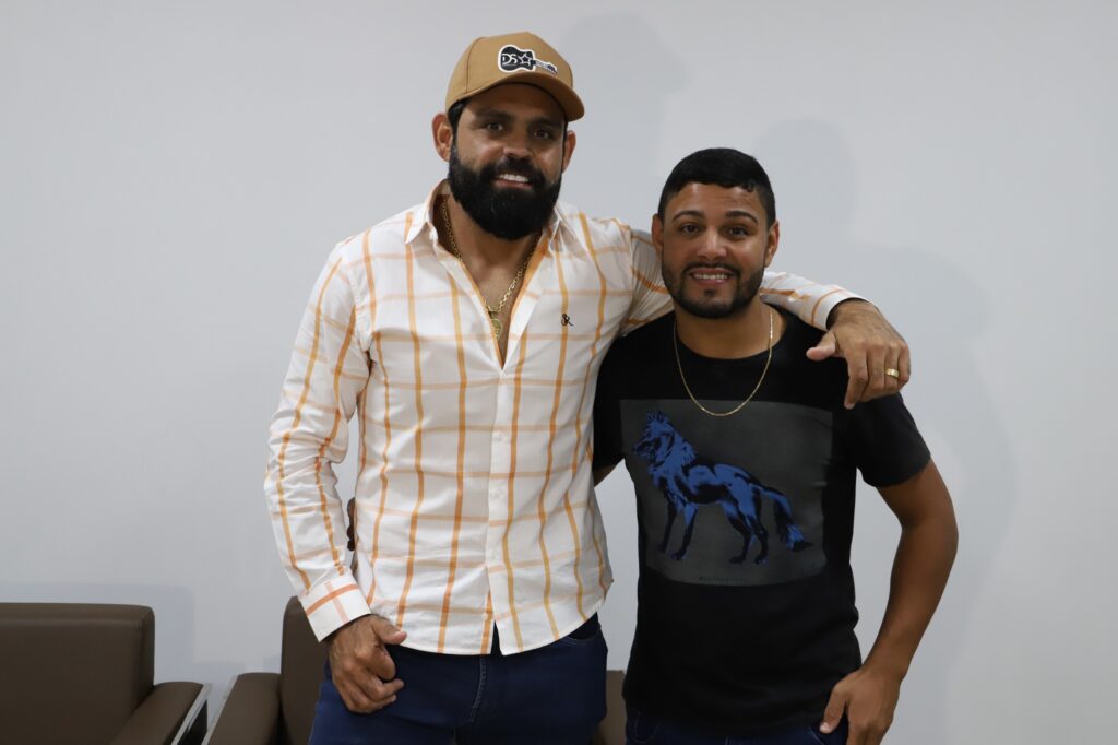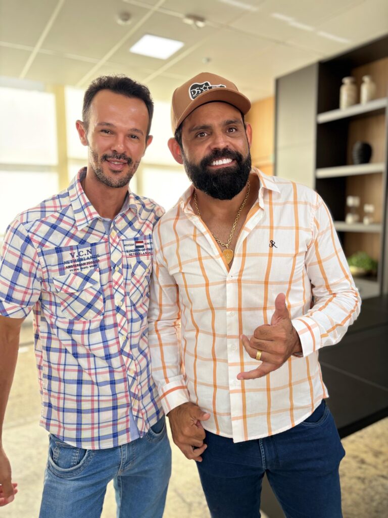 Na manhã desta quarta-feira (23), o prefeito de Santa Helena de Goiás, Iris Parreira, recebeu em seu gabinete a visita de cortesia do cantor Diego, que faz dupla com Arnaldo. O encontro foi marcado por uma conversa descontraída, trocas de experiências e demonstrações de carinho e respeito mútuo.
