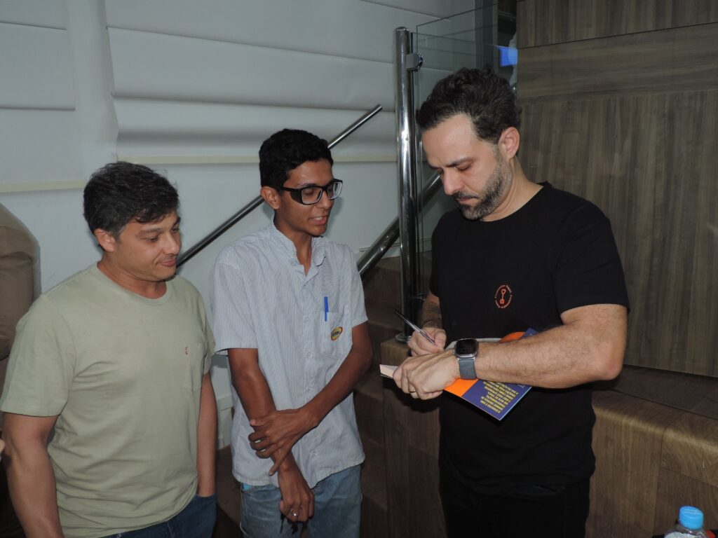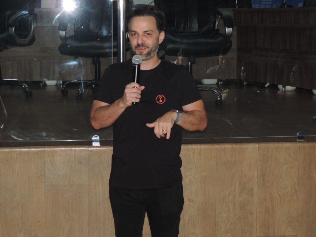 Na sequência, os presentes acompanharam a palestra “Como as emoções afetam a vida financeira do empreendedor”, ministrada por Thiago Godoy — mestre pela Fundação Getúlio Vargas (FGV), escritor e palestrante reconhecido nacionalmente como o “Papai Financeiro”. De forma leve e prática, Godoy abordou como a inteligência emocional influencia decisões financeiras, tanto na vida pessoal quanto na gestão dos negócios.