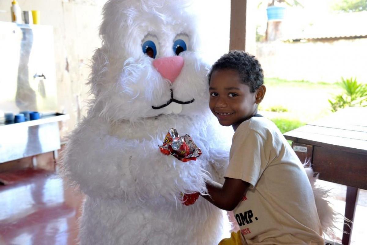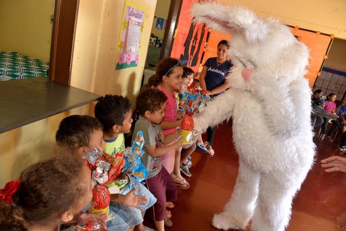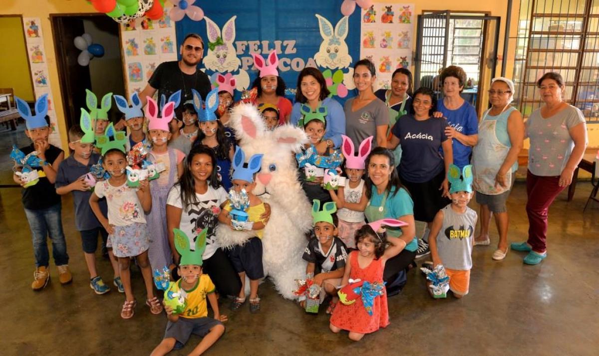 Estes projetos receberam o Coelho da Páscoa e foram contempladas com a doação de vários ovos de chocolate pela Prefeitura Municipal de Santa Helena de Goiás, por meio da Secretaria de Promoção Social.