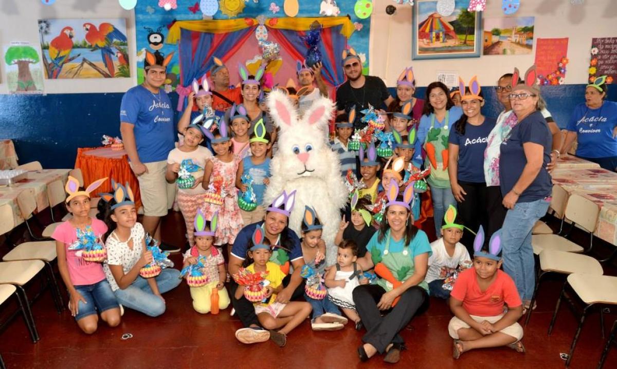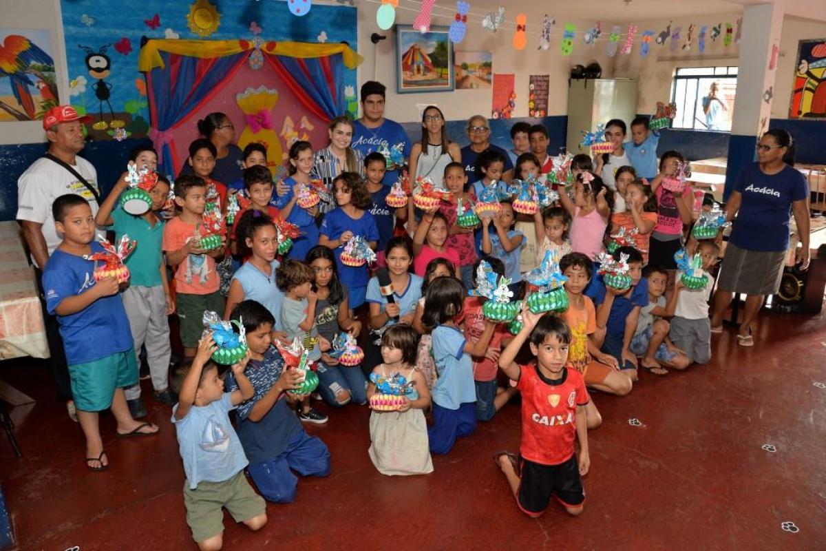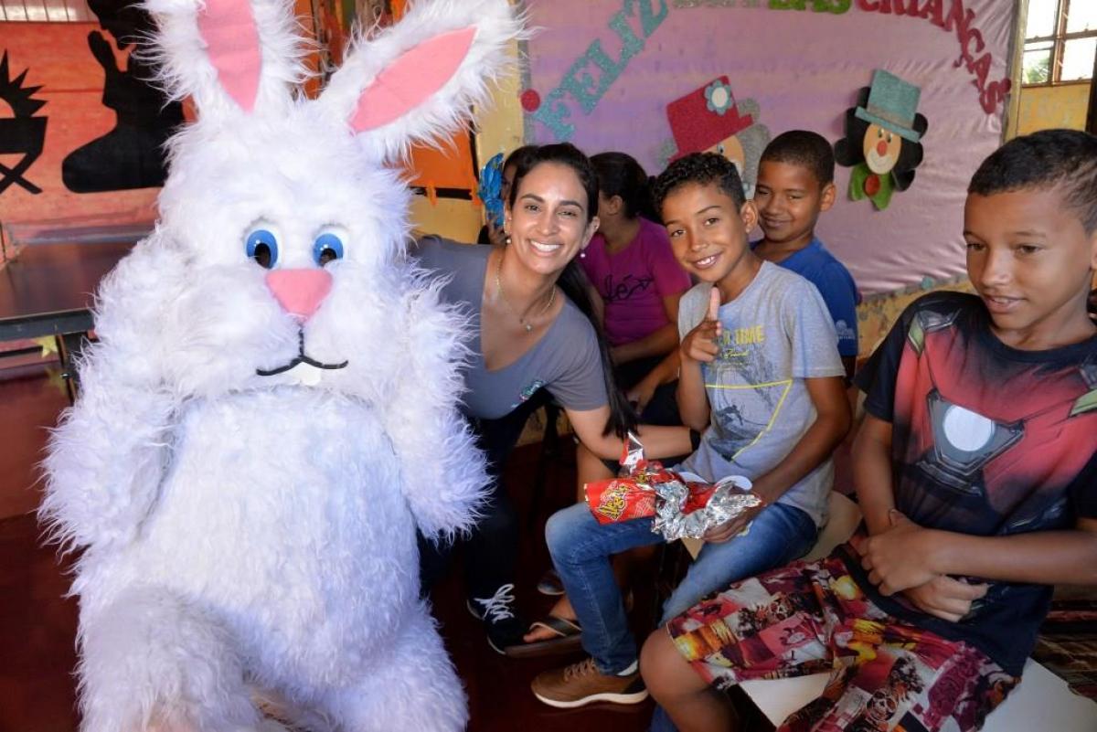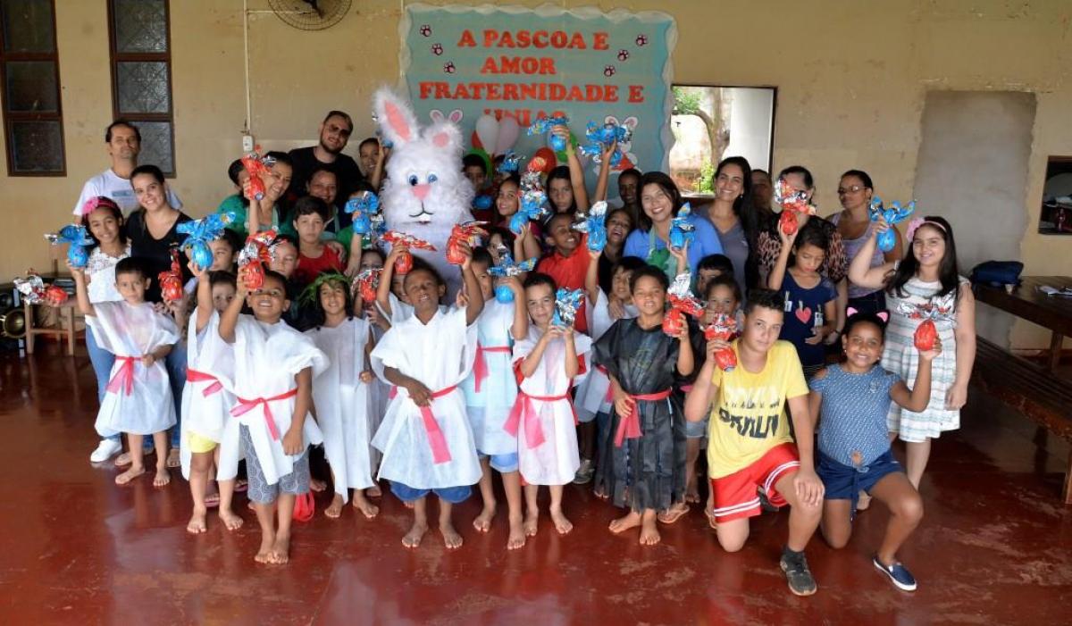 Estes projetos receberam o Coelho da Páscoa e foram contempladas com a doação de vários ovos de chocolate pela Prefeitura Municipal de Santa Helena de Goiás, por meio da Secretaria de Promoção Social.