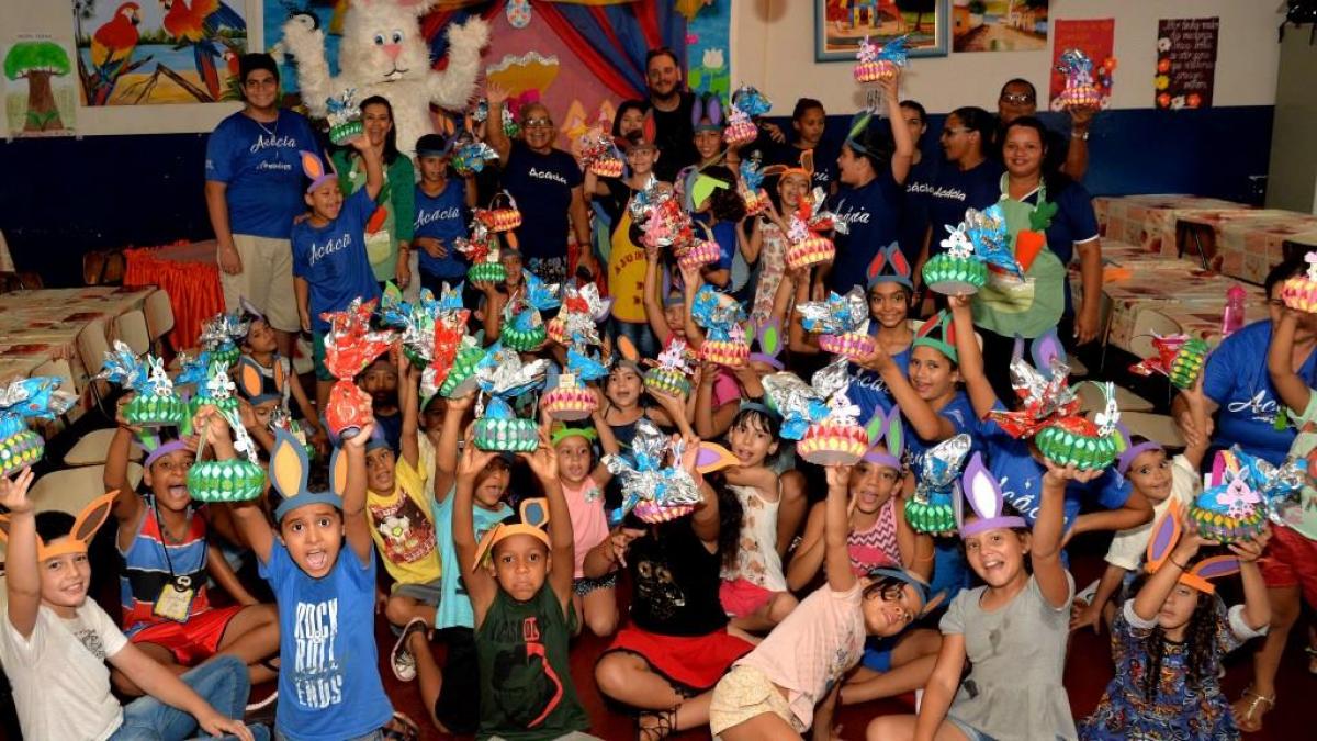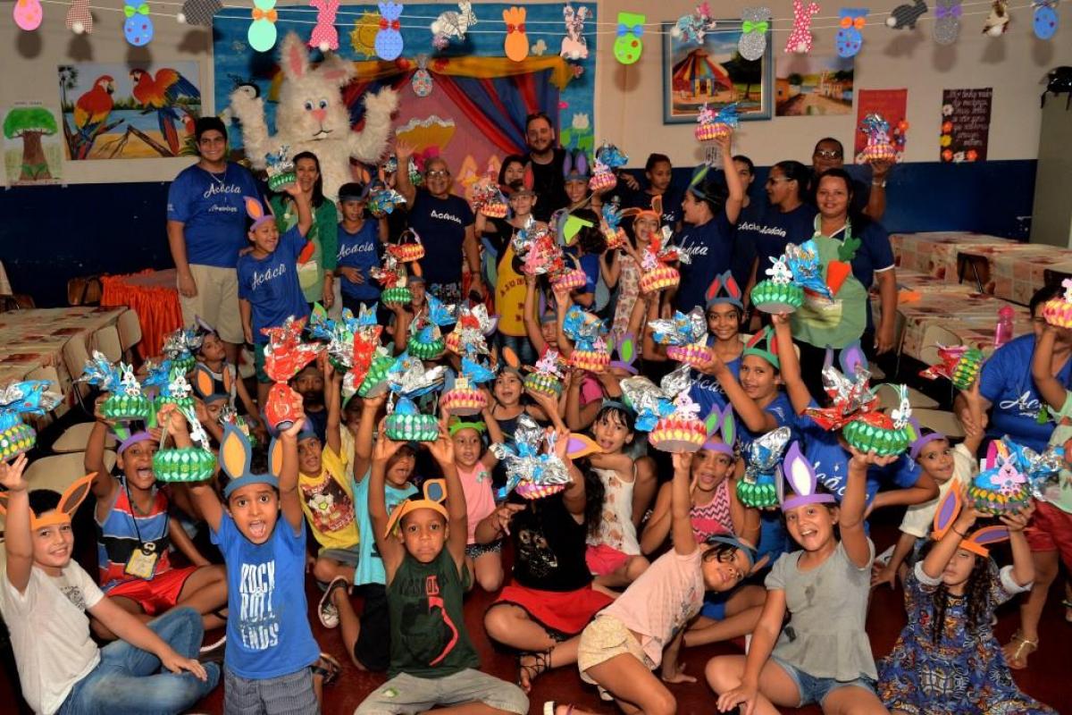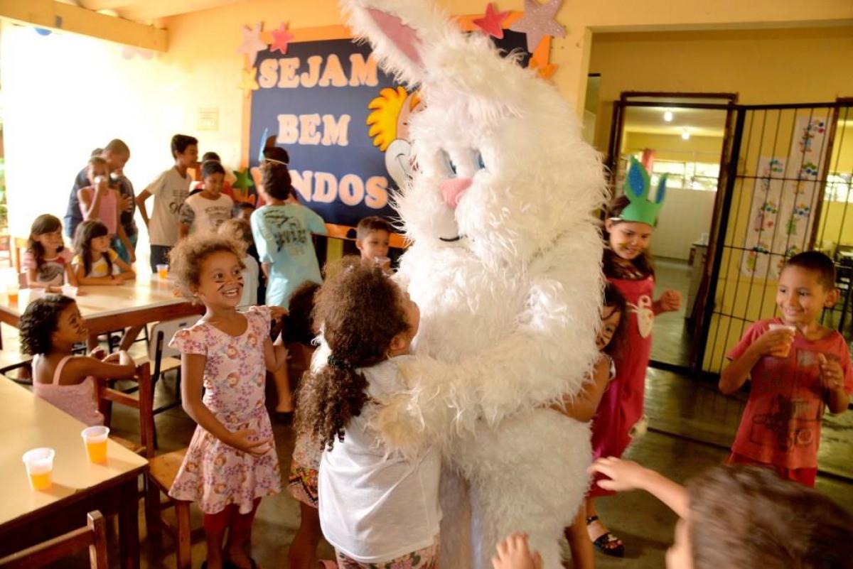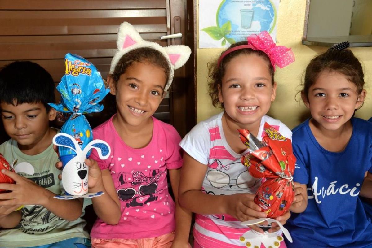 A distribuição dos ovos foi feita antes do Domingo de Páscoa, nos períodos matutino e vespertino em todos os projetos, trazendo grandes sorrisos aos rostos da meninada e a festa tomou conta dos ambientes.