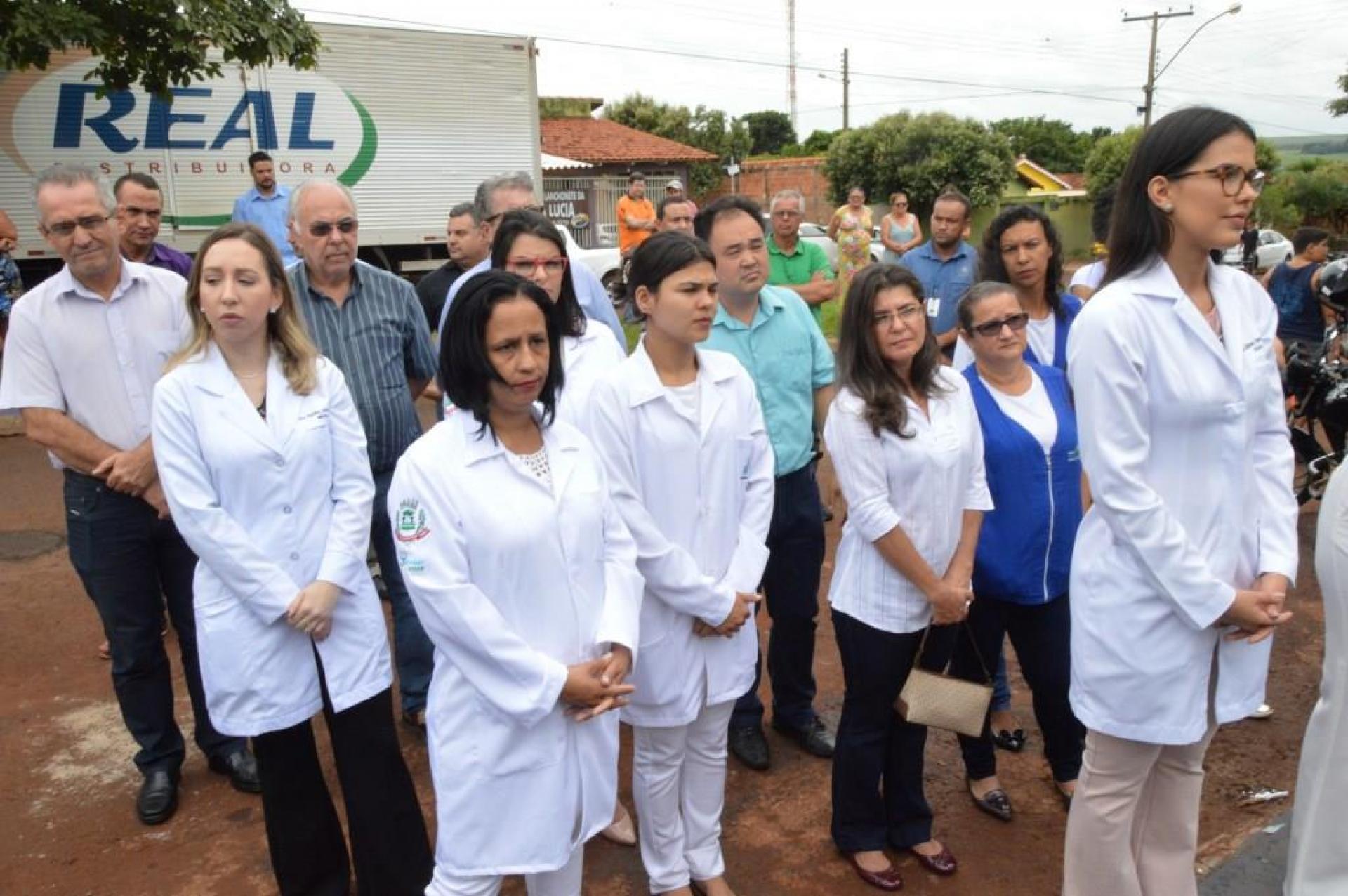 A Secretária de Saúde, Letícia Rosa, cumprimentou a todos os presentes, agradecendo a todos que se empenharam, se dedicaram e contribuíram, diuturnamente, para que deixasse a unidade pronta e funcionando e especificou os profissionais que ali atuarão: 2 equipes de saúde, 7 agentes comunitários de saúde, 2 médicas , 2 enfermeiras, 2 técnicas de enfermagem, 1 odontóloga, 1 auxiliar de saúde bucal , 1 recepcionista e 1 auxiliar de serviços gerais. Ela agradeceu, em especial, ao Prefeito João Alberto, que não mediu esforços para atender a todos na conclusão deste serviço e de tudo que é solicitado.