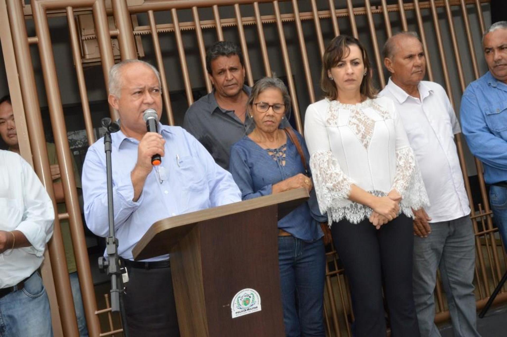 Ao lado do Prefeito Municipal, Dr. João Alberto Vieira Rodrigues, e da Primeira Dama e Secretária de Promoção Social, Drª Renata Araújo Asmar Rodrigues, estavam também o Presidente da Câmara, Gilmar Francisco de Sousa, demais Vereadores, Secretários, Assessores, Polícia Militar, demais autoridades religiosas, políticas, jurídicas, civis, militares, servidores da Prefeitura, Câmara, imprensa e comunidade geral.