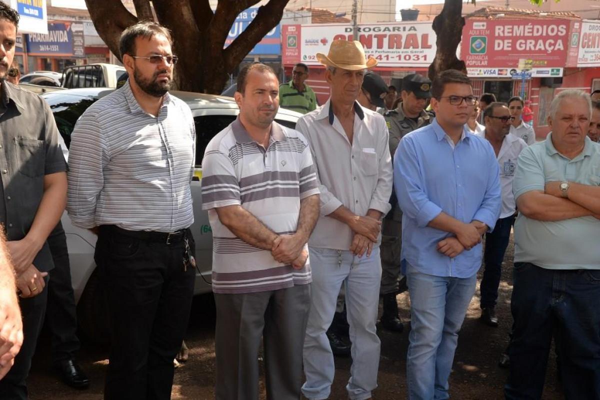 Já Dr. João Alberto iniciou sua fala cumprimentando o Senhor Sebastião, que representava naquele momento, não autoridades, mas a maior autoridade abaixo de Deus: o povo “E é esse povo de Santa Helena que recebe o benefício que vem com a segurança pública, que traz a dignidade e paz para as famílias, comerciantes. Hoje ficamos muito felizes, nesse momento especial, em parceria com a policia militar, entregar essa viatura à nossa população. Mais esse beneficio, que é uma viatura 0 Km , que vem para atender as demandas da PM, que socorre e faz toda a segurança do nosso município. De uma forma muito especial cumprimento o povo, porque é para e por eles que trabalhamos. Fazendo a diferença e trazendo benefícios. É importante nos lembrarmos, o quanto a segurança pública avançou no nosso município, graças ao esforço conjunto de ações entre PM, Prefeitura. Já que a segurança não é obrigação da prefeitura, e sim do Estado. Porém temos sido muito parceiros das policias militares e civil e tudo aquilo que é necessário para resguardar a segurança pública do nosso município. Essa nova viatura trará mais rapidez, agilidade, segurança para a população e para os bairros. Porque é isso que o cidadão do bem espera. Poder caminhar tranquilo nas ruas e saber que não existem perigos e problemas. Ficamos imensamente em apresentar estes benefícios para Santa Helena. Cada vez mais uma cidade melhor. Uma cidade que sob todos os aspectos, vem avançando e melhorando. Trabalhamos para o bom desenvolvimento da nossa cidade e para uma boa qualidade de vida para a população. Aproveito para relembrar que tudo isso foi graças ao grande empenho do Ten. Cel. Jeovaldo, que era o nosso comandante da CIPM e agora é o subcomandante regional e também agradeço à comandante Coronel Silvana. Uma união de esforços desses três pilares da segurança pública da nossa região. Todos trabalhando com muito êxito, presteza e de forma realizadora. Admiro também o trabalho de todos. Agradeço também o empenho, que fecha o tripé da nossa segurança pública, o nosso novo comandante, Major Arraes, quem traz pra nossa cidade, um perfil diferente, que vem coroar todos esses êxitos e relações entre PM, Administração Pública e população. Ficamos muito felizes em já começarmos com bons resultados e apresentando isto a população. Ficamos mais felizes na constância em que apresentamos coisas novas, obras e novidades, num ritmo frenético de administração e de bons resultados”, encerrou o Prefeito.