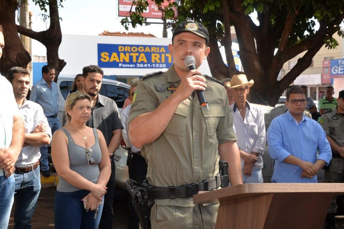 Major Arraes, cumprimentou a todos e disse em suas palavras que “Chegou recentemente na cidade e que temos uma grande responsabilidade em manter o excelente serviço que vinha sendo feito. Quiçá melhorar, continuando com a ajuda do Ten. Cel. Jeovaldo. E os senhores podem ter certeza, que da minha parte, vamos empenhar ao máximo. Temos uma experiência operacional boa. Já chegamos recebendo uma viatura nova. E agradeço ao empenho de todos nisso, que faz uma grande diferença no trabalho, assim como no efetivo. Agradeço as boas vindas, fui muito bem recebido por todos, o que nos motiva a trabalhar mais e mais”, declarou o oficial