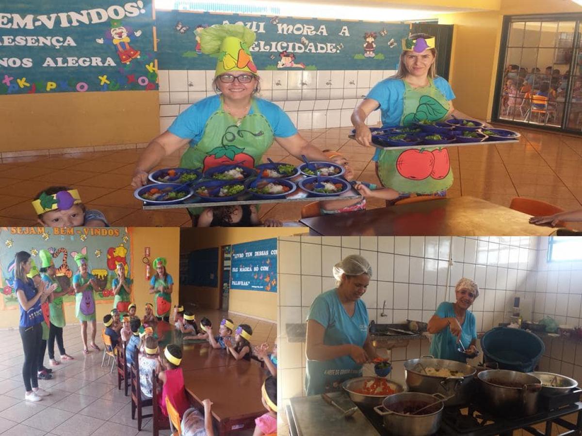 As unidades escolares utilizam as verduras/legumes entregues em diferentes preparações: sopas, saladas, omelete e outros. Demonstrando que as crianças podem consumir todos os nutrientes necessários e com variedade.