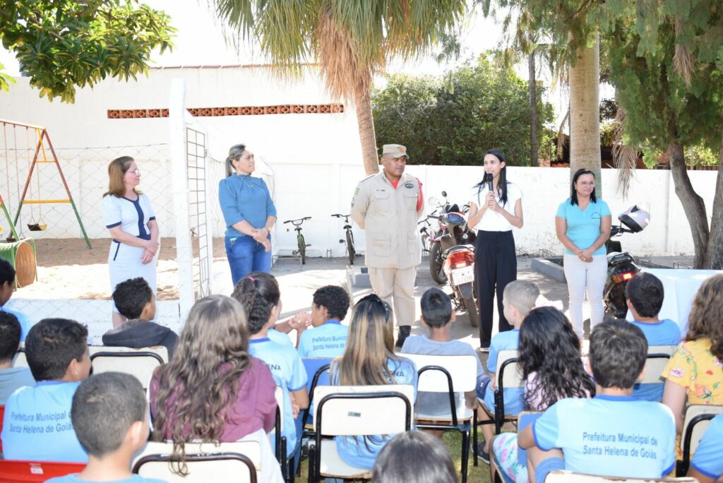 Nesta quinta-feira (22), a Prefeitura Municipal de Santa Helena de Goiás, através da Secretaria da Educação e da Secretaria do Meio Ambiente, em parceria com o Corpo de Bombeiros e o Ministério Público, levaram o Programa Fumaça Zero às escolas da nossa cidade.