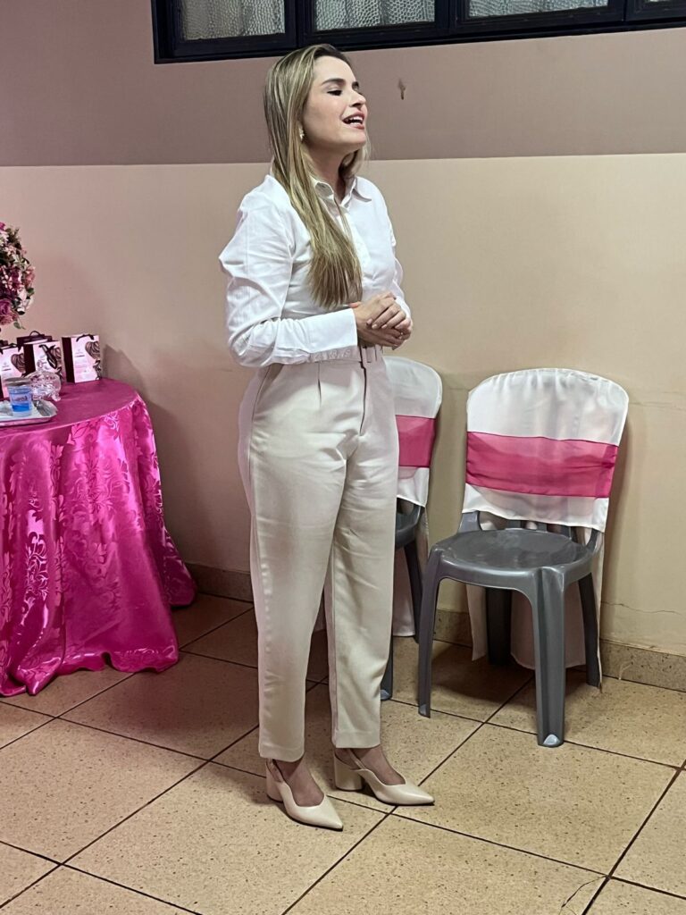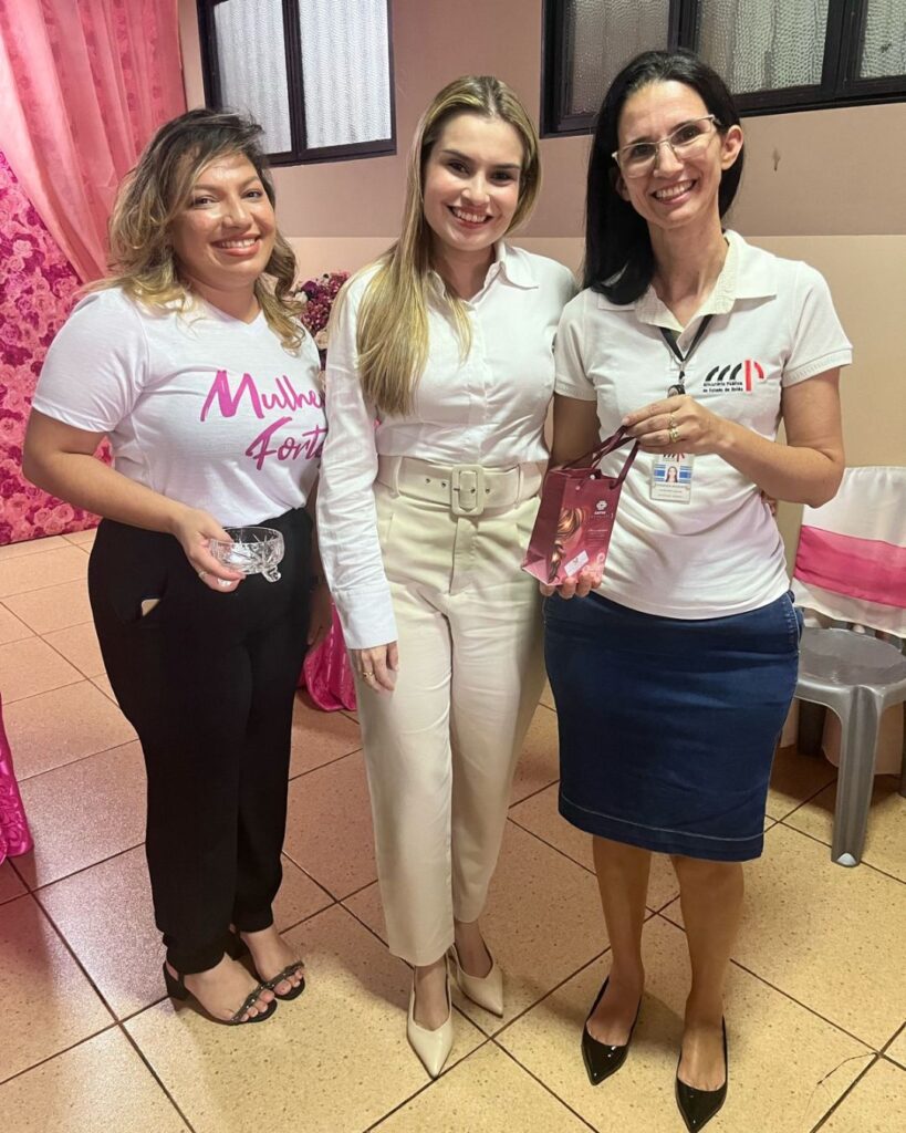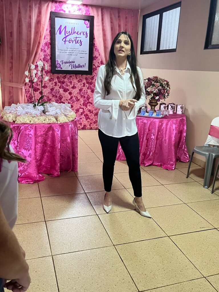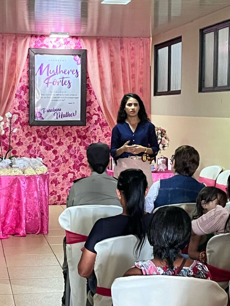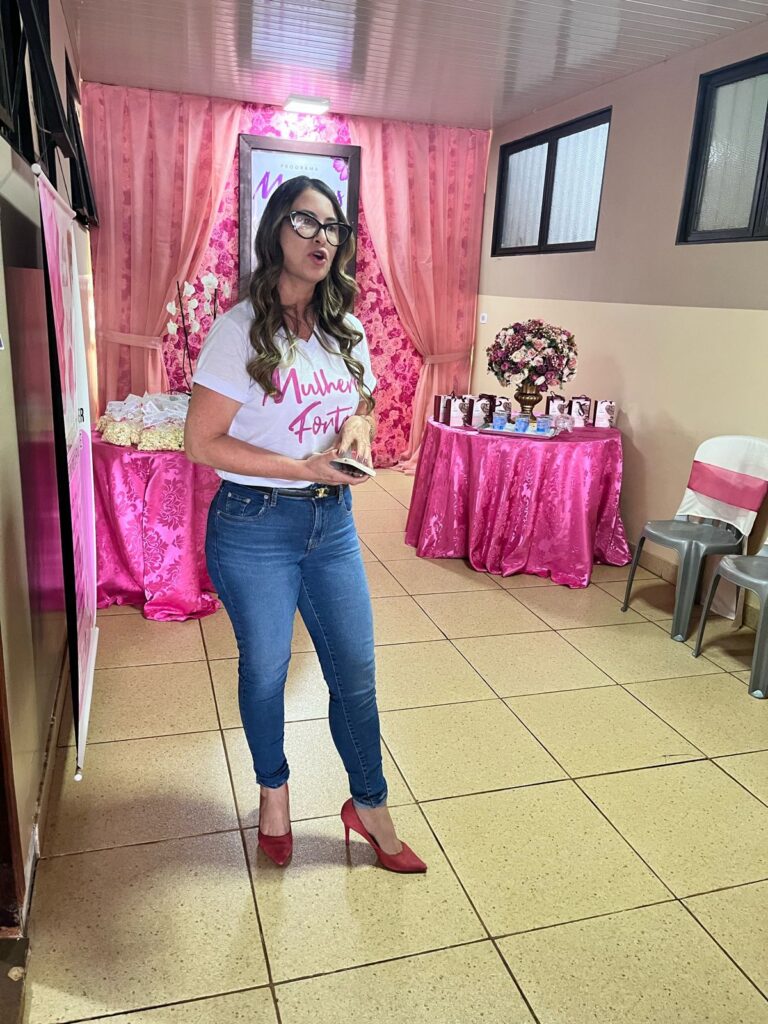 A Secretaria de Promoção Social, Dra. Renata Asmar Rodrigues, destacou o trabalho da rede de proteção e acolhimento que o Programa Mulheres Fortes oferece com assistência jurídica, psicológica e social às mulheres santelenenses.