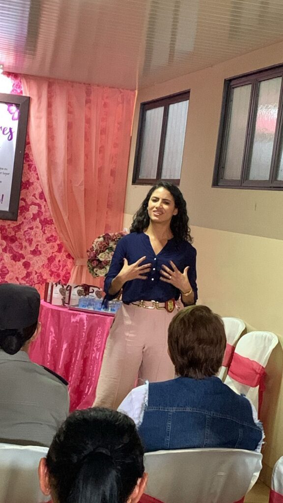 O evento contou com a participação da Delegada da Delegacia Especializada em Atendimento à Mulher, Dra. Luciana Rafaela Fonseca, e a Comandante da 1ª Companhia da Polícia Militar de Santa Helena, Major Jane Lúcia Sousa, que falaram sobre a violência doméstica e a importância da denúncia as autoridades, mesmo não sendo a vítima.