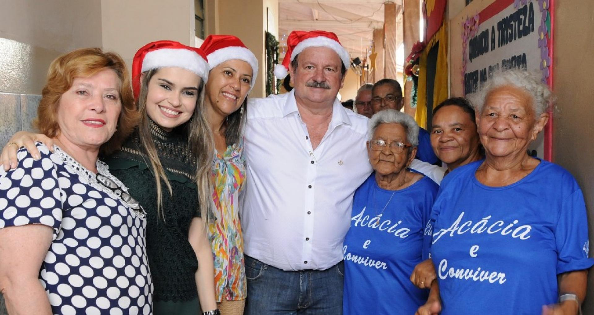 A ação marcou o fim das atividades do ano letivo e comemorou as festas de fim de ano. Foi servido um delicioso lanche ao som de músicas bem animadas e enquanto acontecia a distribuição, os idosos bailavam pelo salão. Estiveram presentes na entrega das cestas, a Primeira Dama e Secretária de Promoção Social, Drª Renata Asmar Araújo Rodrigues, o Vice-Prefeito, Agenor Bezerra de Queiroz, e sua esposa Nara Lúcia Martins, outros Secretários e Superintendentes e demais membros da Secretaria. Drª Renata disse em suas palavras que “É uma alegria imensa estar aqui hoje com vocês comemorando a festa do Natal. Queremos desejar um Feliz Natal e um 2018 abençoado pra todos nós e pra cada família. Que Deus abençoe e que no próximo ano possamos estar aqui novamente. É maravilhoso conviver, confraternizar e compartilhar cada momento com vocês. Um beijo no coração de cada um de vocês”, salientou a Primeira Dama. Dr. Agenor disse que todos estavam ali pelo carinho, pela festividade do Natal, consideração, agradeceu a contribuição dos que ali estavam para história do município e encerrou desejando um Feliz Natal e um Próspero Ano Novo. Ascom PMSH Natalia Martins JP 2180 DRT/GO Imagens de Manoel Paiva