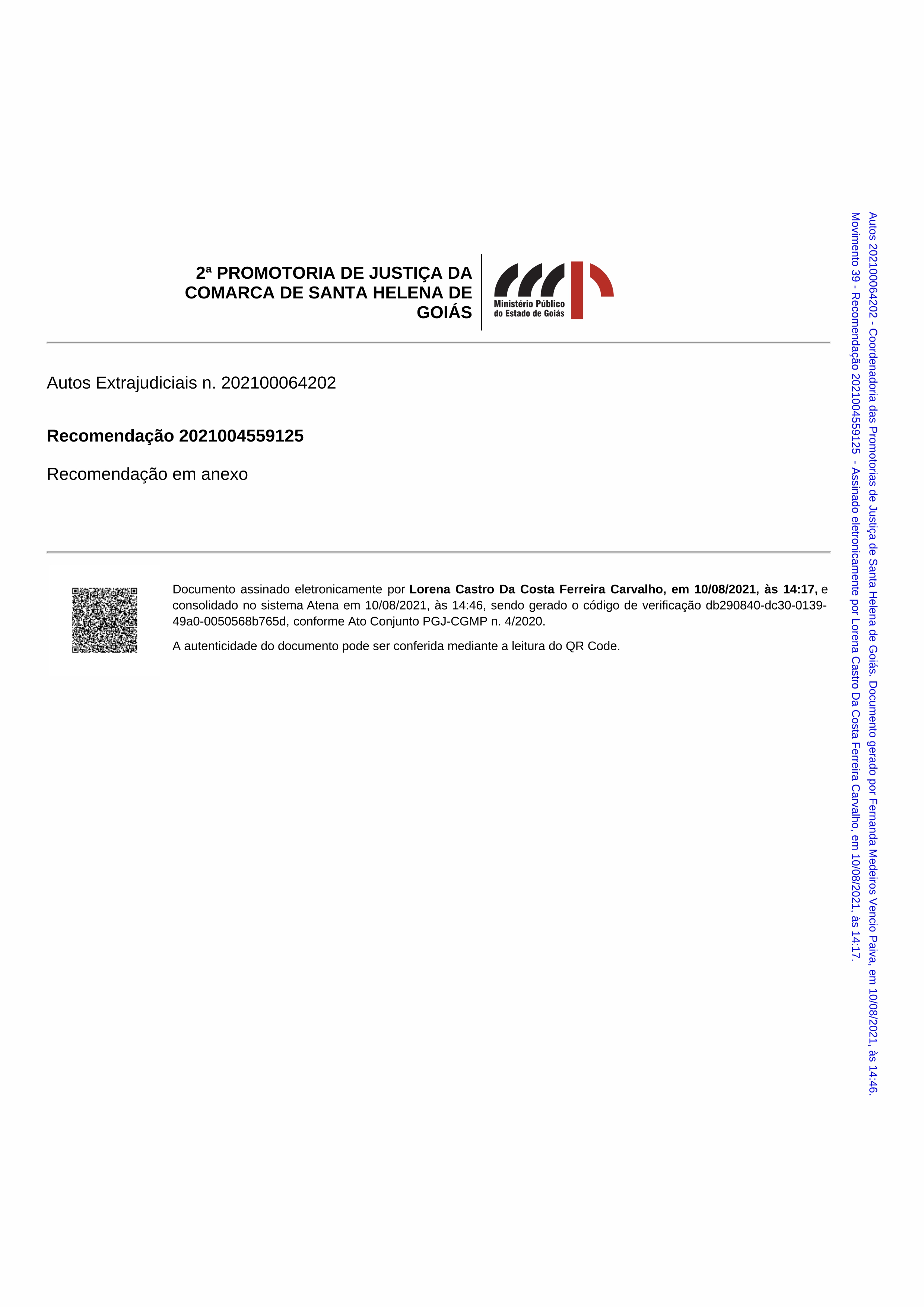 A Secretaria Municipal da Cidade, atendendo a 2º Promotoria de Justiça do Ministério Público do Estado de Goiás, torna pública a seguinte Recomendação que trata da necessidade dos proprietários/possuidores de imóveis com áreas não edificadas, subutilizadas e não utilizadas de fazerem a conservação, em perfeito estado de higiene, limpeza e manutenção, de tais imóveis, principalmente se tratarem de terreiro baldios, sob pena de autuação.